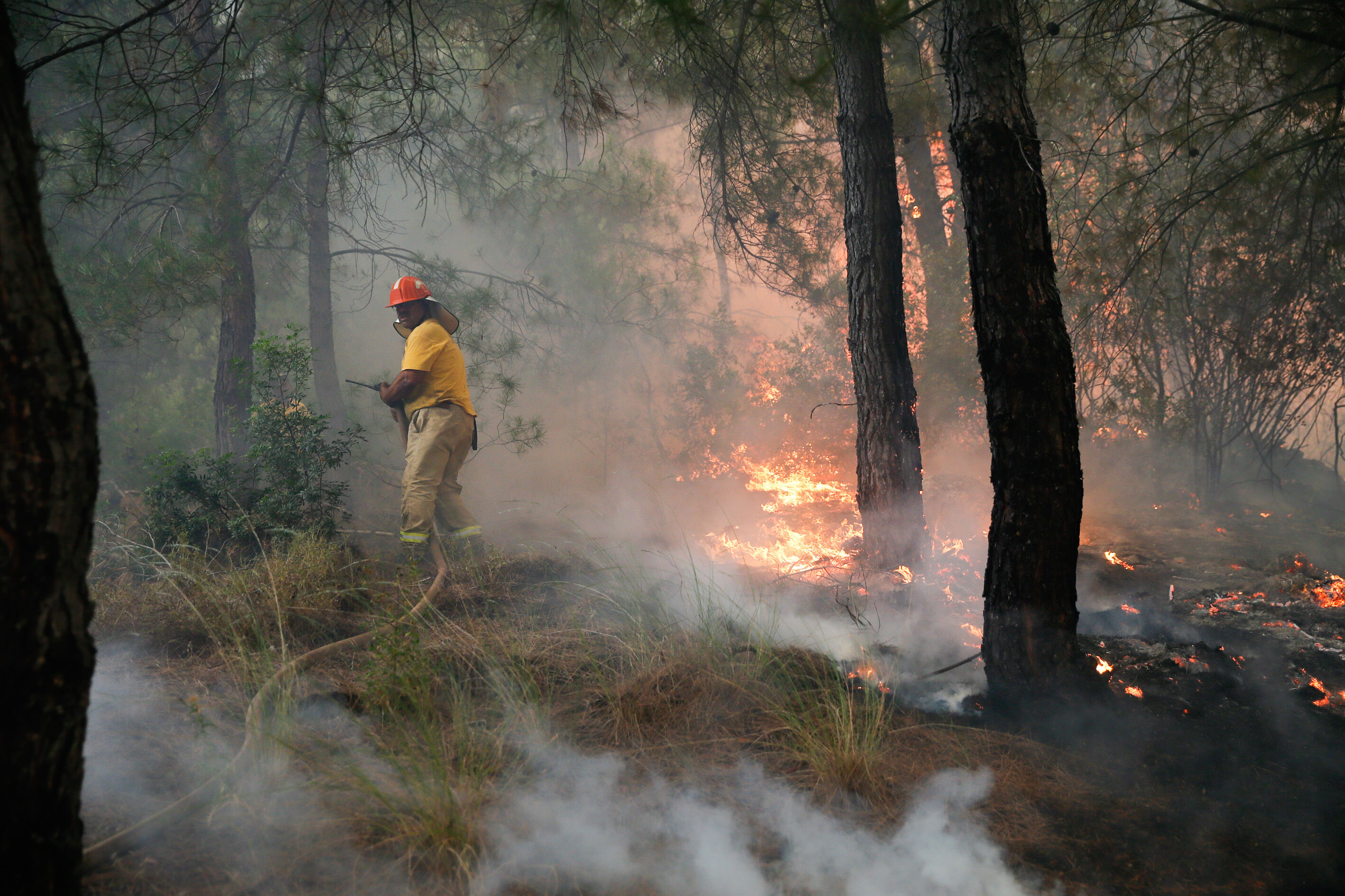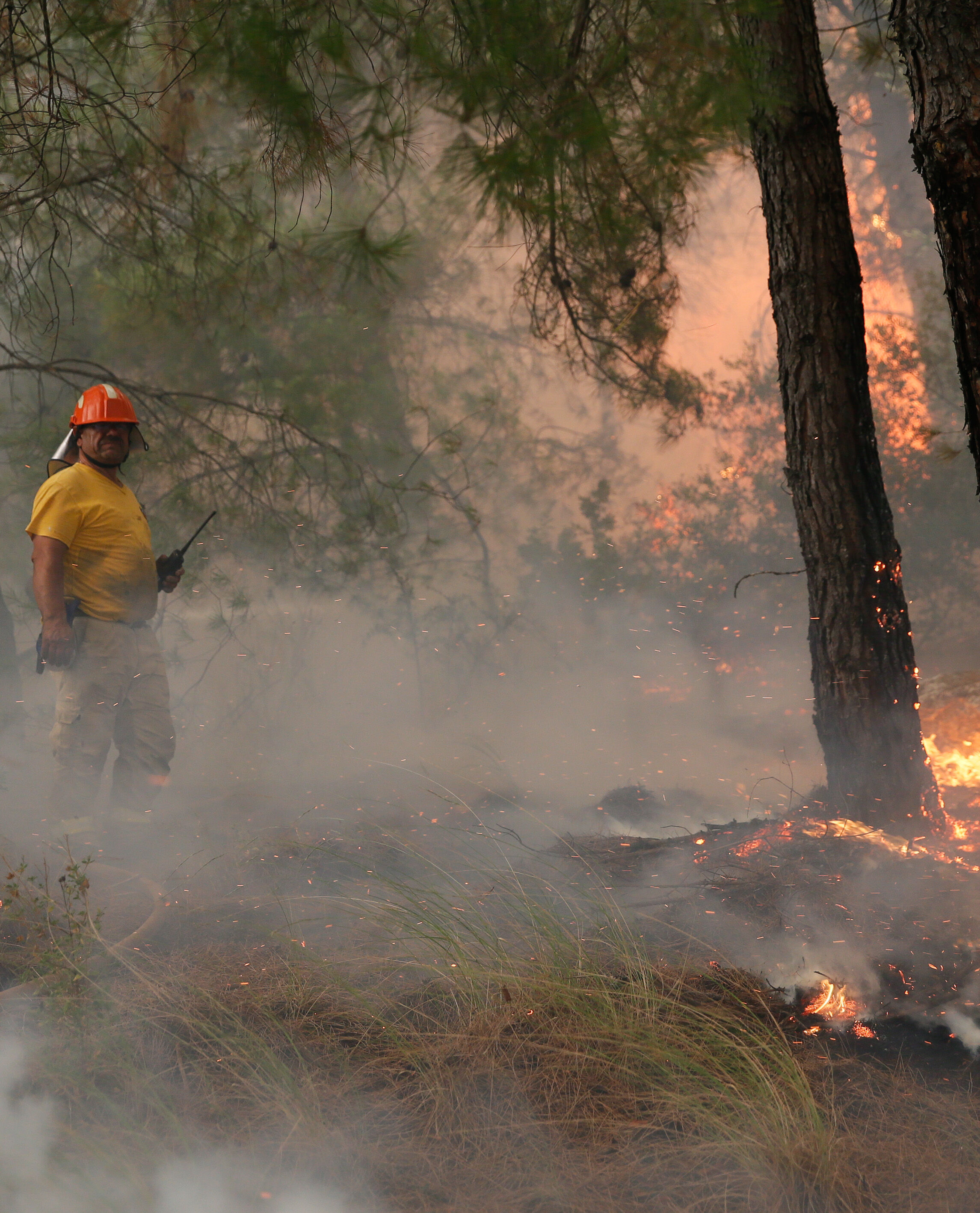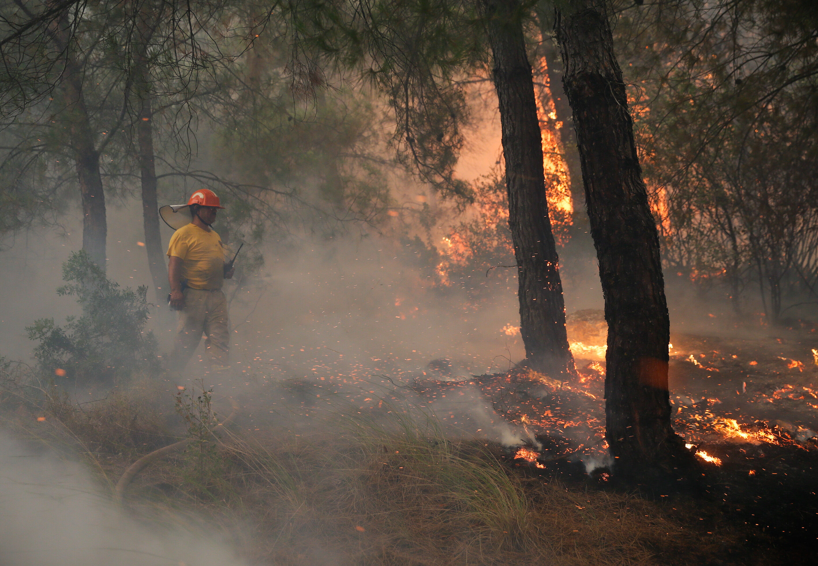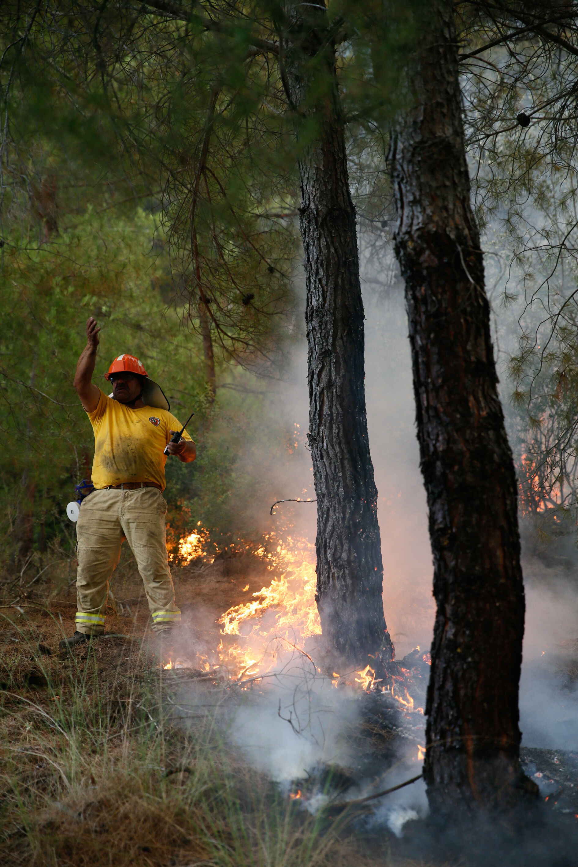 Alevlere 50 arazöz, 300 orman işçisi, 3 helikopter ve 2 uçak ile müdahale edilmeye başlandı. Yaklaşık 50 hektarlık bozuk orman ve ormanlık alanda etkili olduğu belirtilen yangını söndürme çalışmaları havadan ve karadan sürüyor.