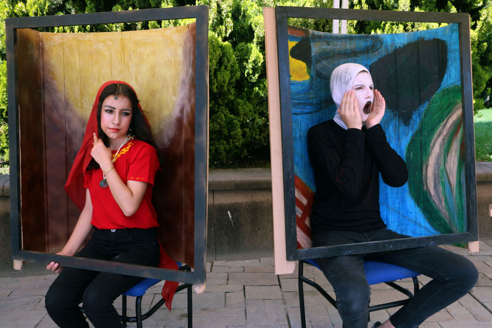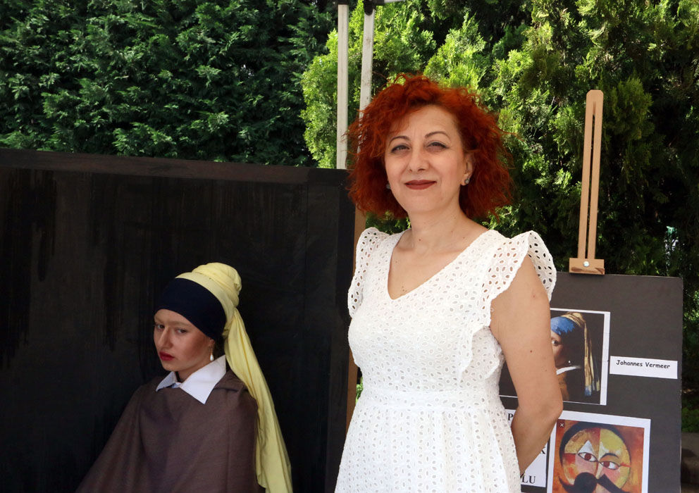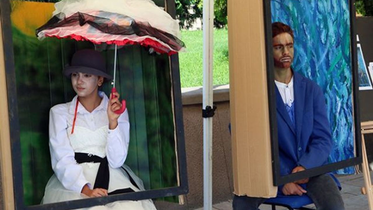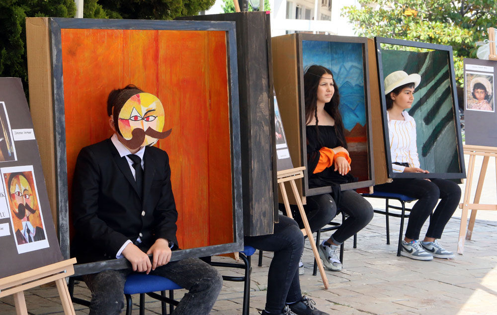 Şehit Polis Mehmet Çelik Ortaokulu 8'inci sınıf öğrencileri, Konak Meydanı'nda düzenlenen etkinlikte, ünlü ressamlara ait 33 eseri canlandırdı.