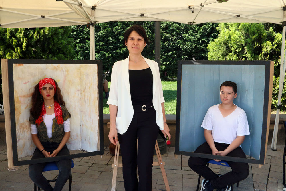 İzmir'de öğrenciler tarafından "canlı portreler" sergisi açıldı.
