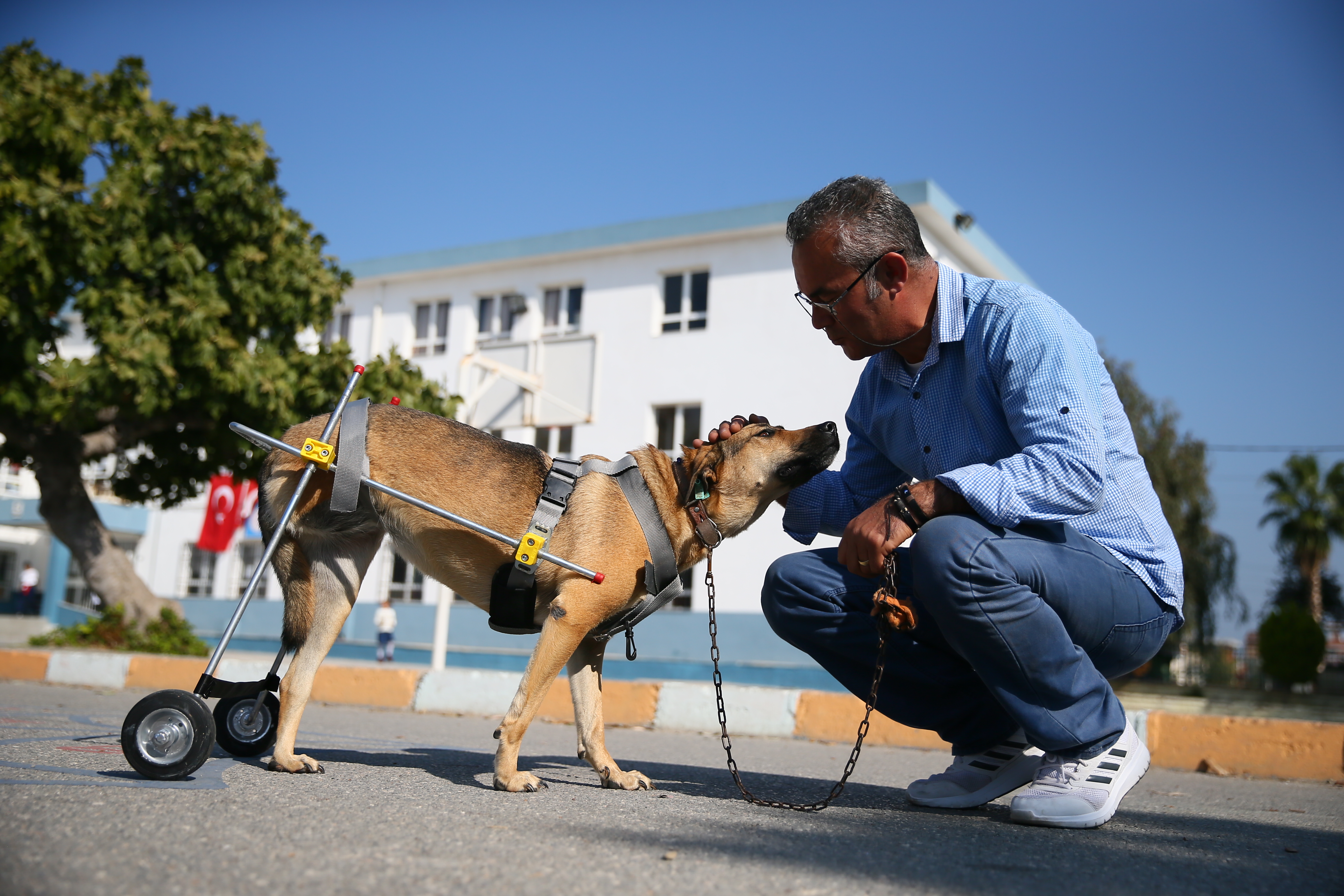 Kaza veya hastalık gibi nedenlerle sakat kalan köpekler için protez yürüteç yapan İzmirli öğretmen Mehmet Tanrıverdi, bu örnek davranışıyla hayvanların yaşama tutunmasını sağlıyor