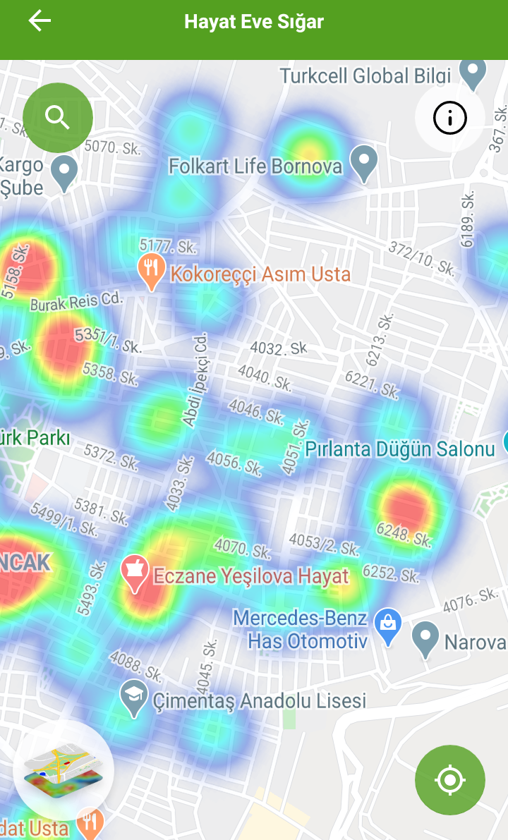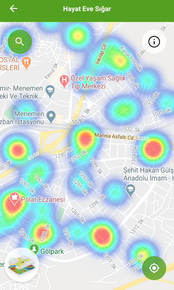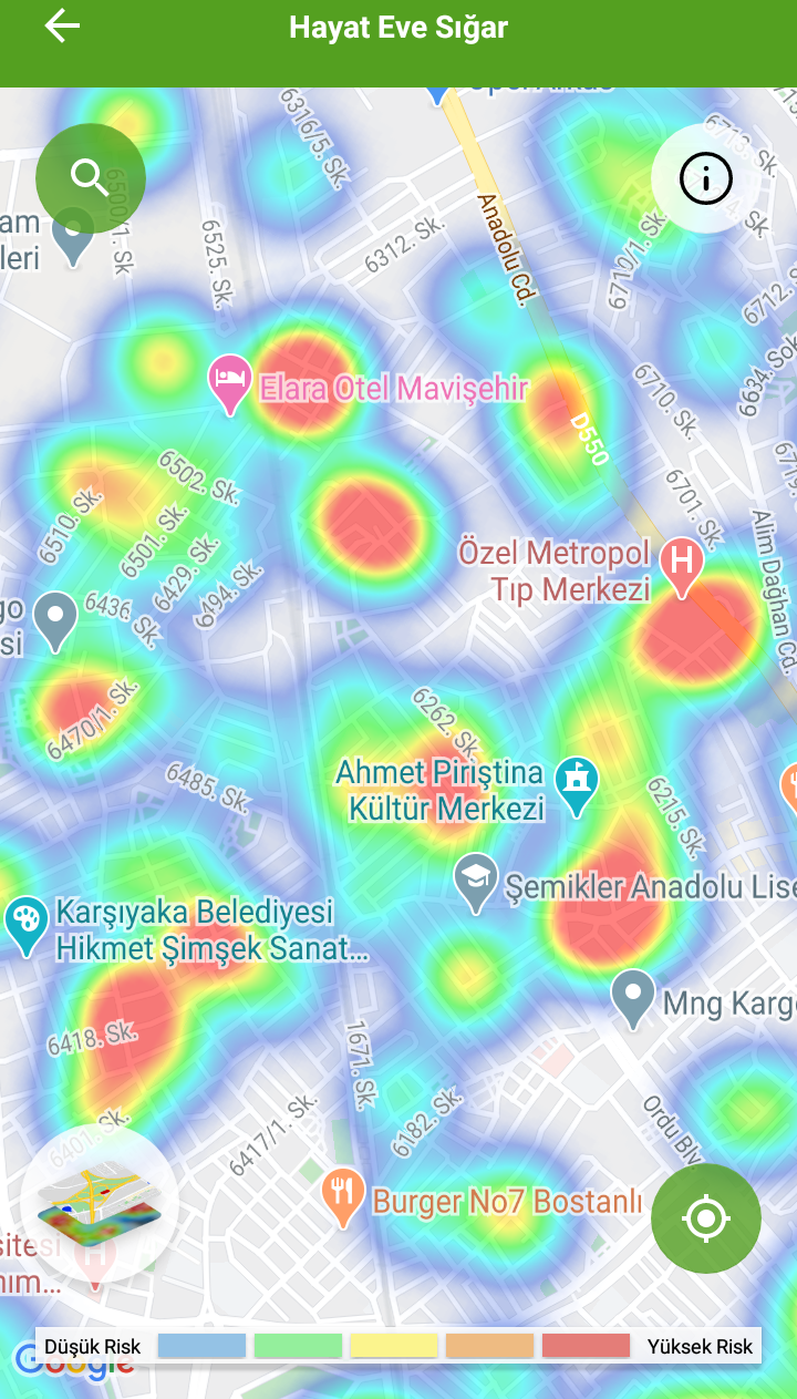 Sağlık Bakanlığı tarafından hazırlanan Hayat Eve Sığar uygulaması bir süreden bu yana vatandaşlar tarafından kullanılıyor. Uygulama ile korona virüs yoğunlukları bölge bölge görülebiliyor.