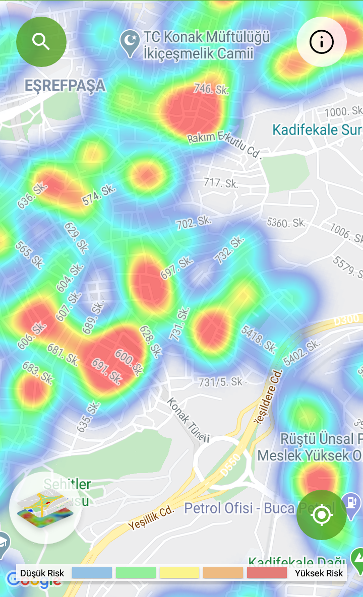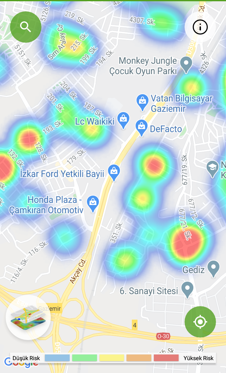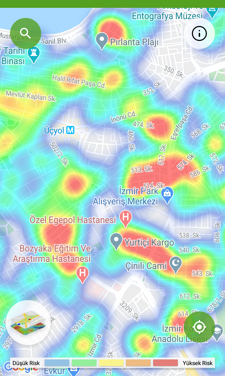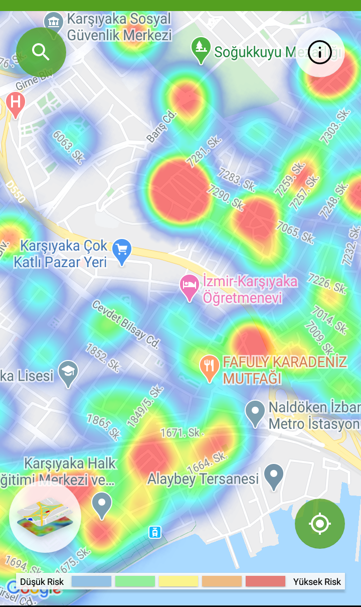 İzmir’de ise riskli olan bölgeler ile güvenli olan bölgeler güncellendi. Tabloda İzmir’in merkez ilçelerinde (Konak, Buca, Karabağlar, Karşıyaka, Narlıdere, Bornova, Çiğli, Menemen) virüs için riskli bölgeler olarak görülürken en az riskli ilçeler kentin kırsal ilçeleri oldu.
