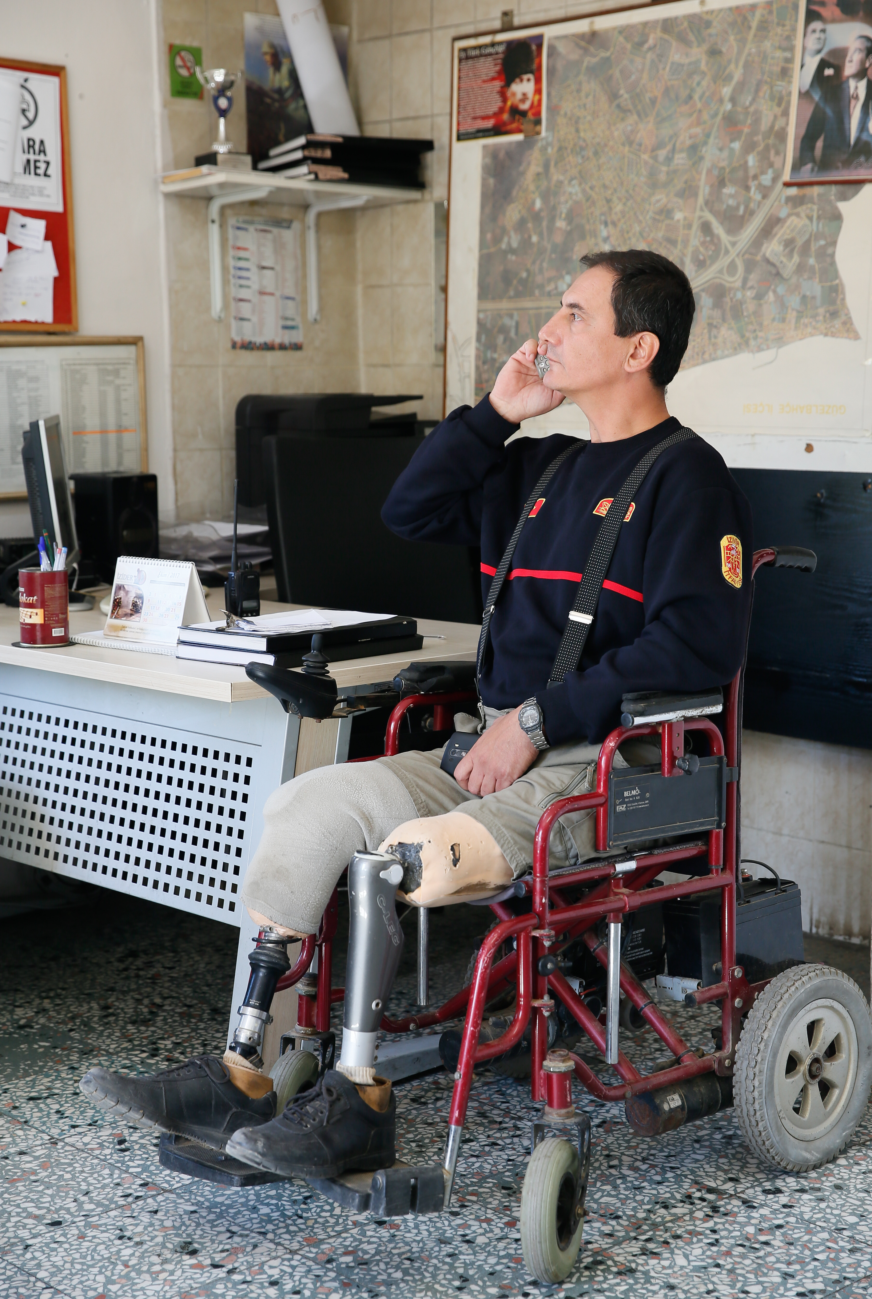 İzmir'de 10 yıl önce yangın söndürme tüpü eğitimi sırasında meydana gelen patlamada iki bacağını kaybeden itfaiye eri Mümtaz Zarplı, çok sevdiği mesleğini elektronik protezle sürdürüyor.