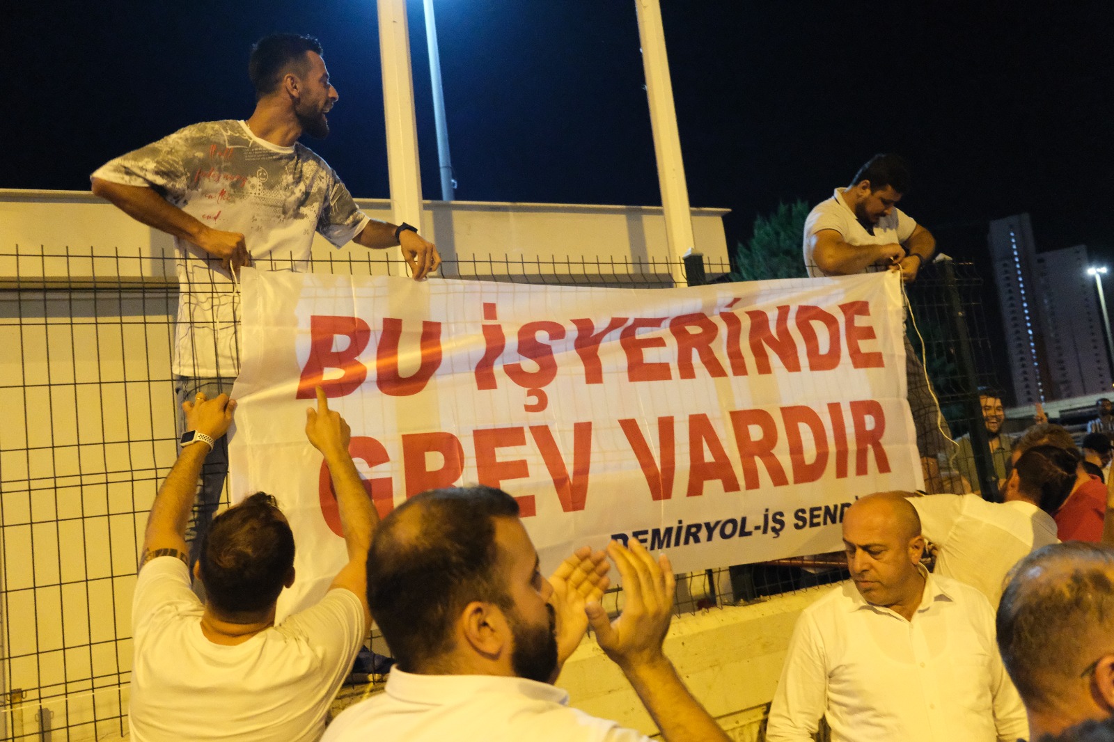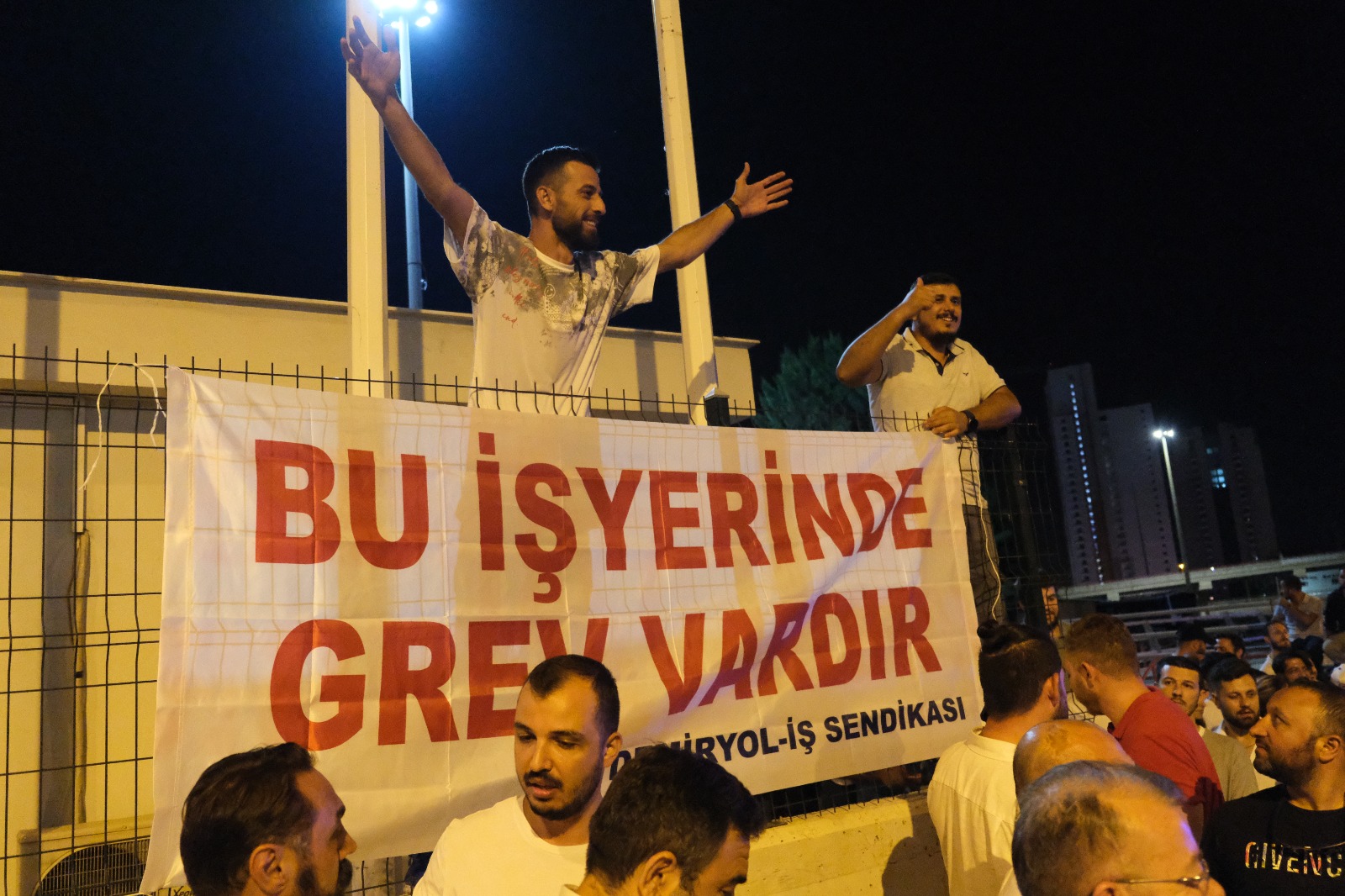 Metro ve tramvay işçileri "Bu İşyerinde Grev Vardır" pankartlarını saat 05:00'ı gösterdiğinde astı.