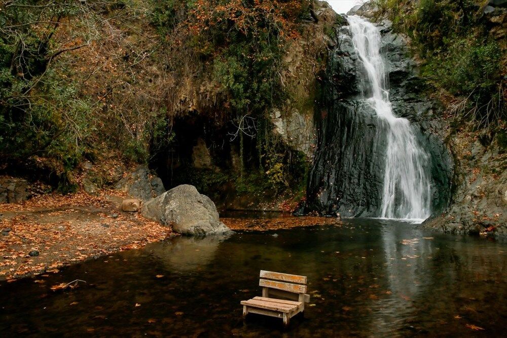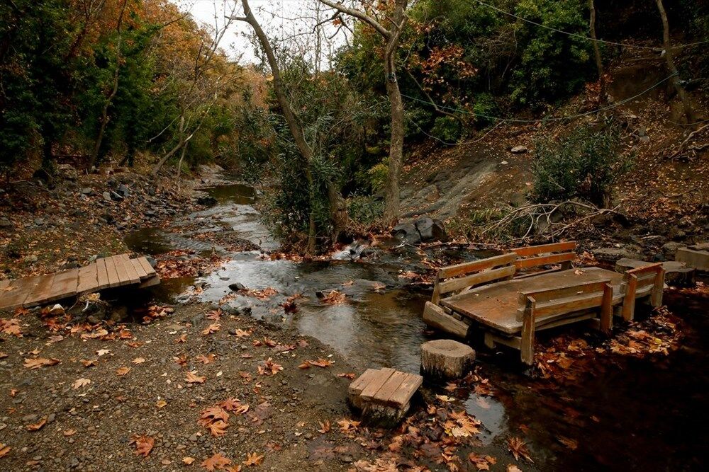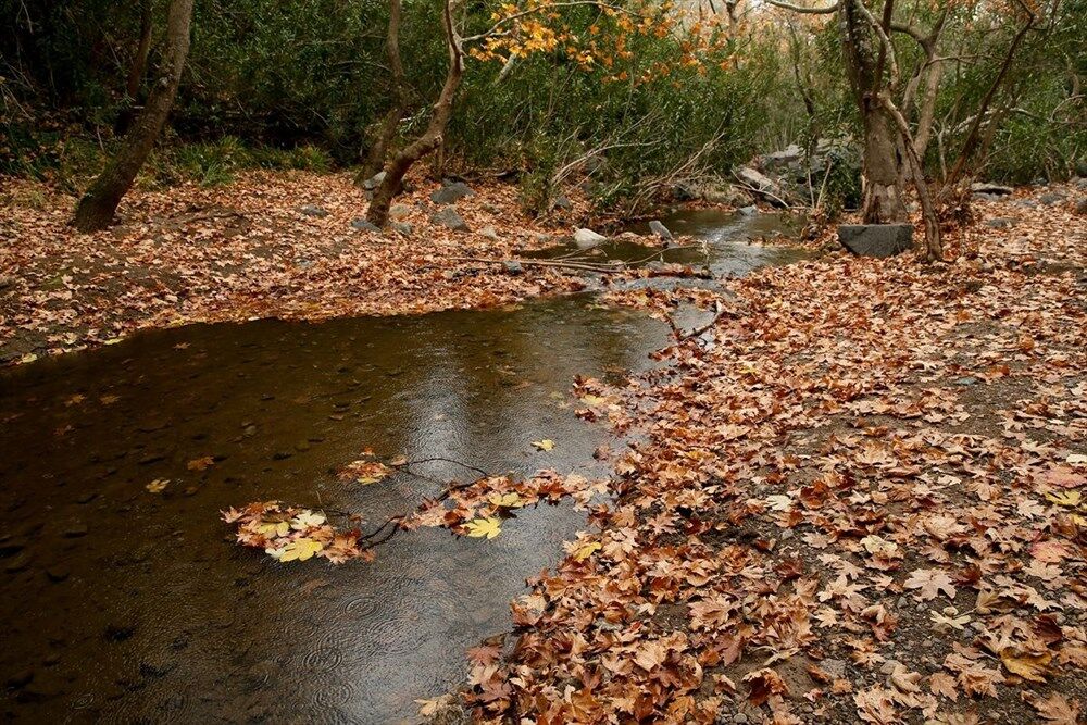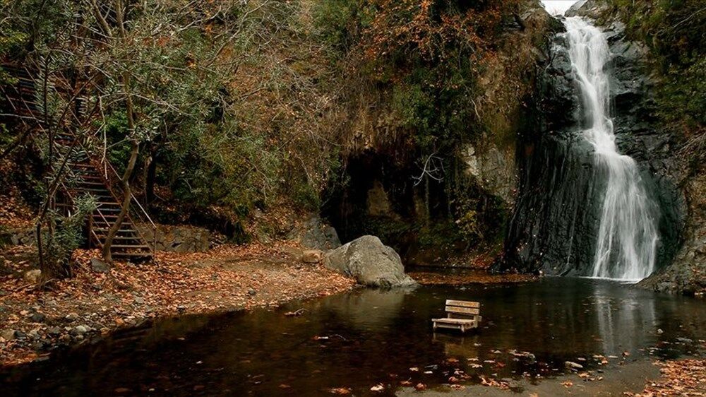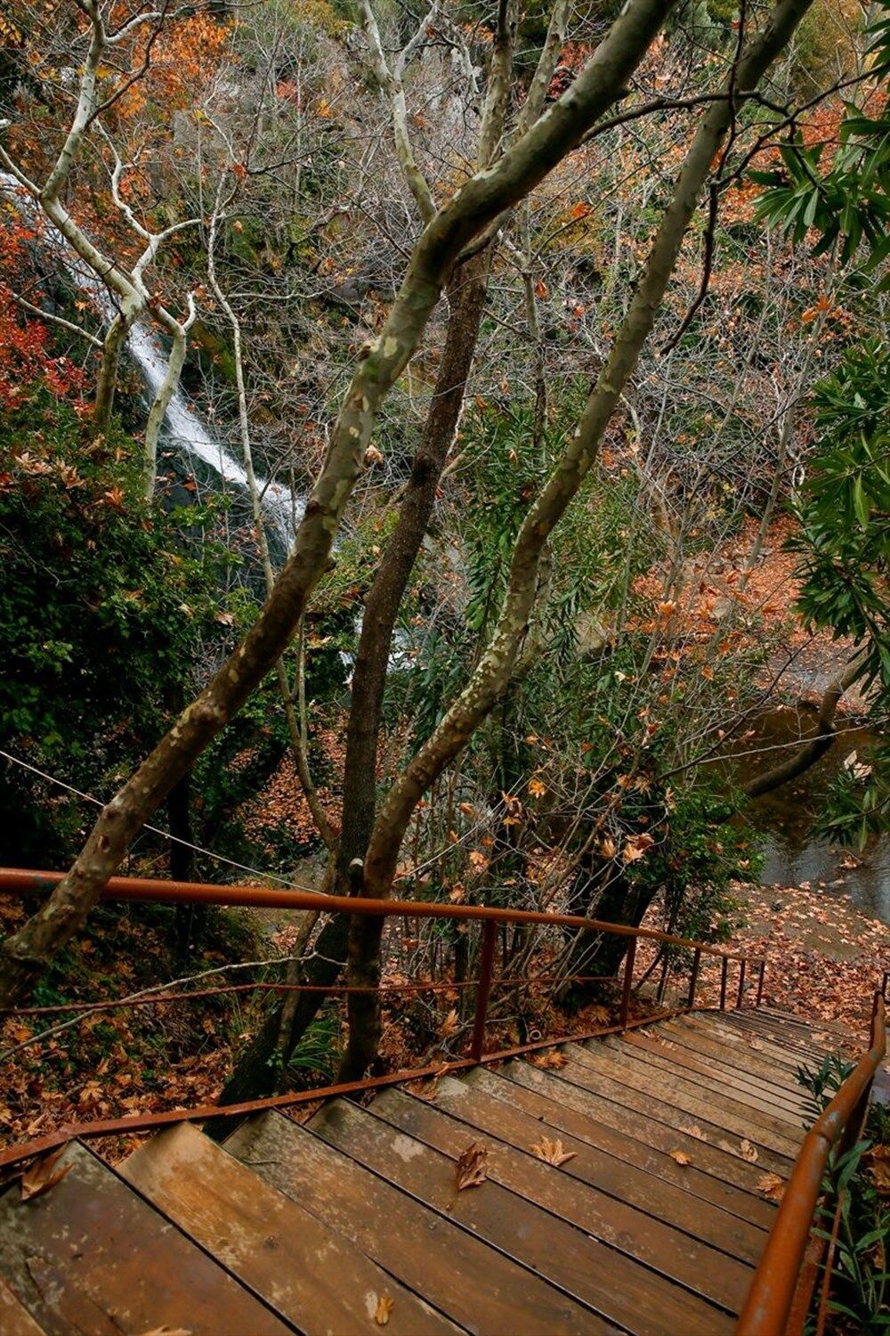 İzmir'in Dikili ilçesindeki Aşıklar Şelalesi'nde, yeşilden kızıla dönen ağaçlar, eşsiz manzaralar oluşturuyor.