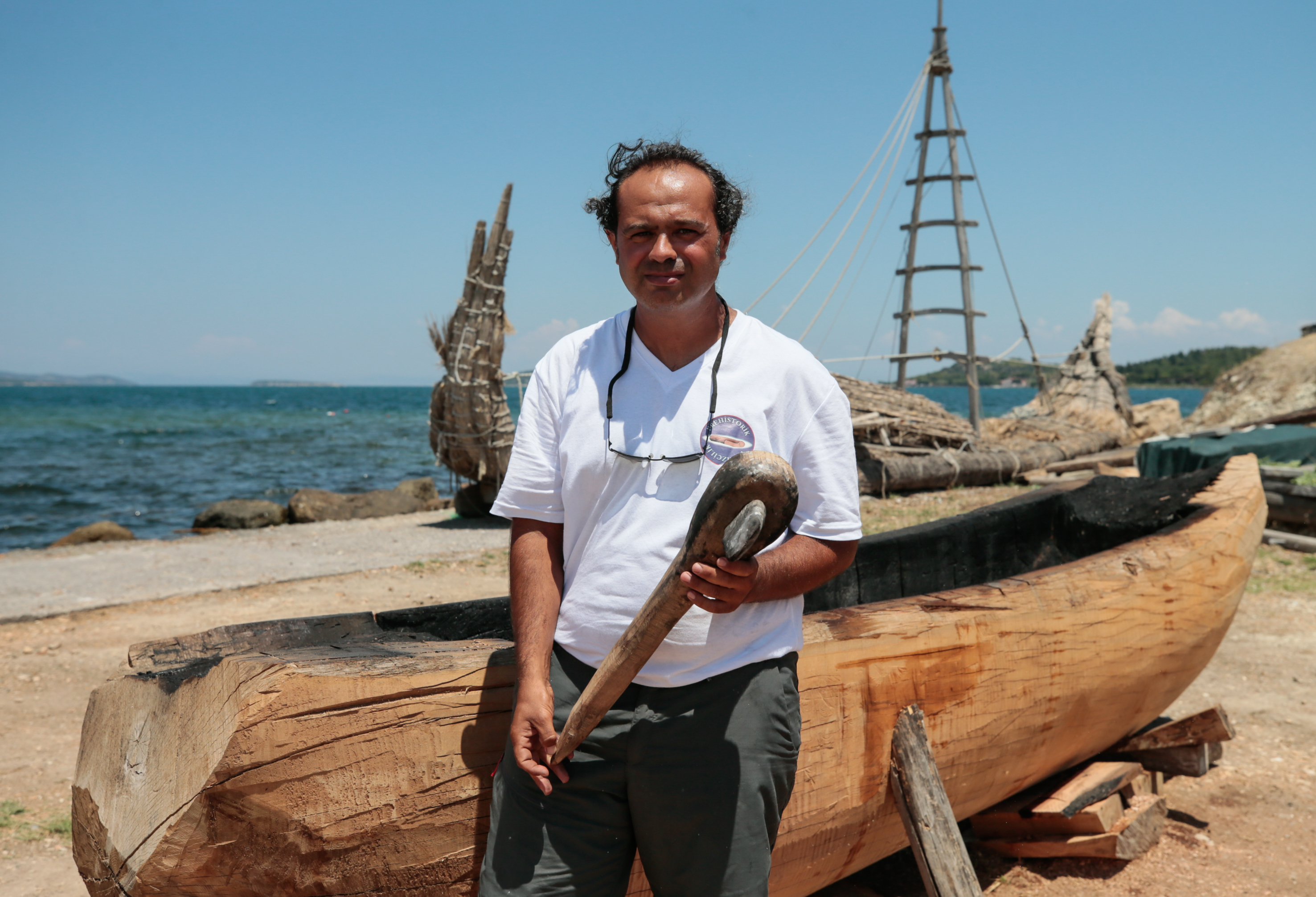 Pamukkale Üniversitesi Arkeoloji Bölümü Öğretim Görevlisi Koray Alper'in "Milattan Önce 7 ve 6 binli yıllarda Anadolu Denizcilik Faaliyetleri" konulu doktora tezi kapsamında üniversitenin desteğiyle 360 Derece Tarih Araştırmaları Derneğinin Urla'daki deneysel arkeoloji merkezinde başlatılan proje ile binlerce yıl öncesine ait teknikle "ilkel tekne" yapılıyor.