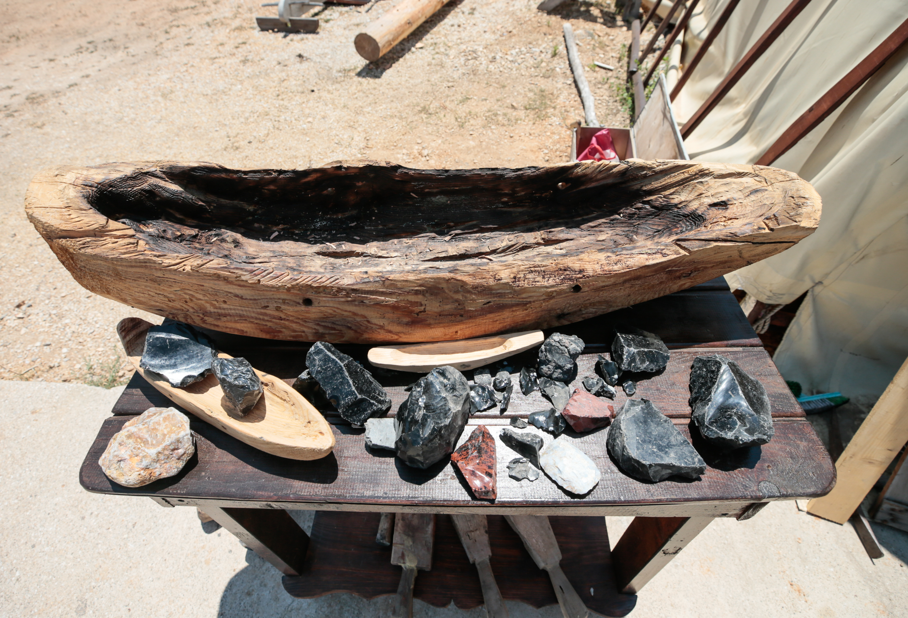 İnsanlığın ilk olarak sazlıklardan deniz aracı yaptığını, sonraki dönemlerde dalgalara ve rüzgara dayanıklı, kargo taşımaya imkan veren tekneleri geliştirdiğini anlatan Alper, "İnsanların kütüklerin üzerinde yolculuk ettiğine ilişkin fikirler vardı. Bunun doğru olmadığını ilk denememizde gördük. Önce ham tomruğu suya attık, üzerinde kürek çekmek mümkün değildi. O dönemde obsidyen veya çakmaktaşı dışında tekne yapımında kullanılacak malzeme yoktu. Taş aletlerle kütüğü işlemek için yakma tekniğini uygulamaya başladık." bilgisini verdi.