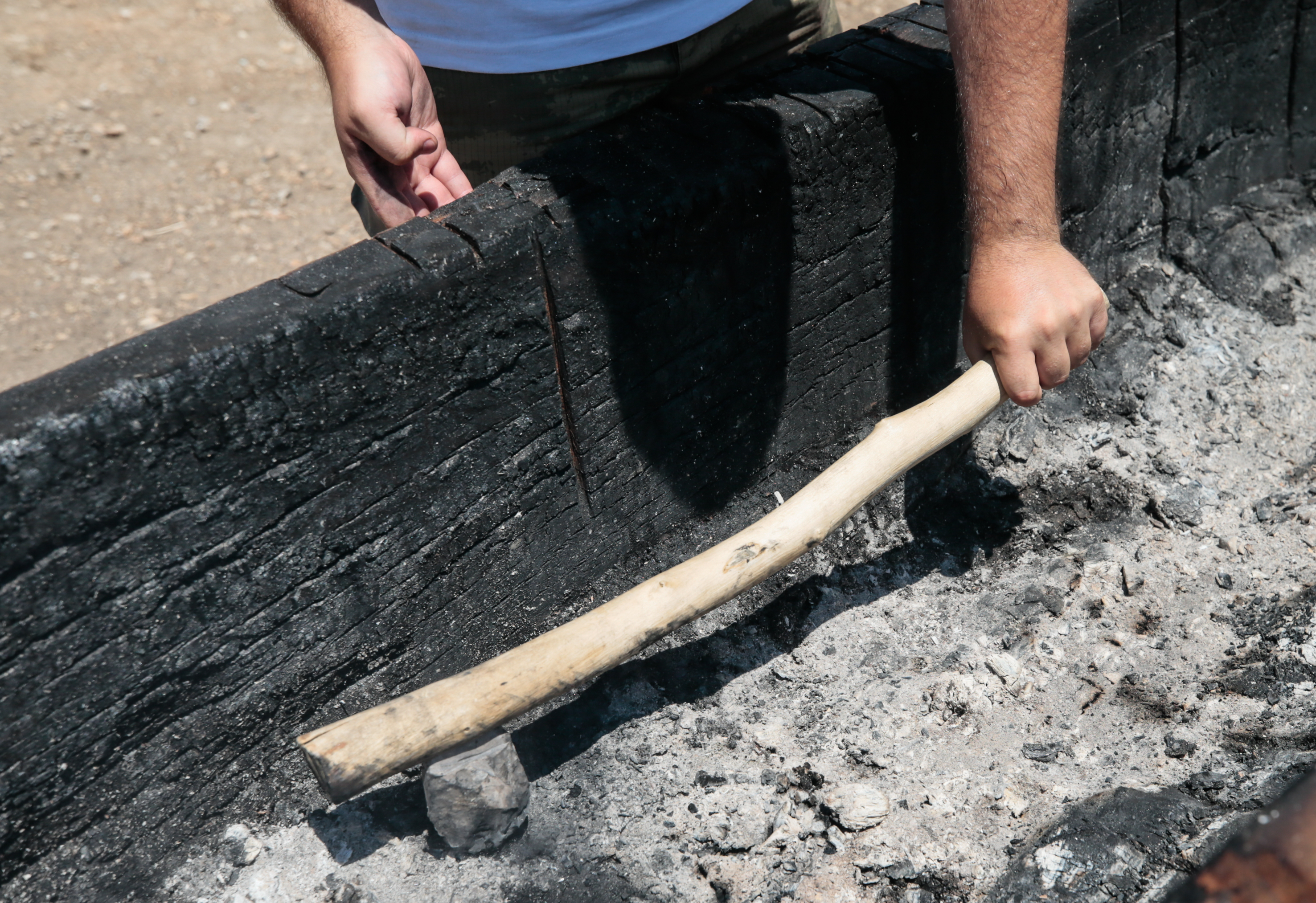 Kayın ağacı kütüğünün içinde kontrollü ateş yaktıklarını, köz sönmeden ucuna keskin taşlar bağlanan baltalarla oyma işlemine geçtiklerini belirten Alper, ateşi orta kısımda yakıp kenarlara aktardıklarını, fazla yandığını düşündükleri yerleri kazıyarak ya da suyla soğutarak kontrol ettiklerini kaydetti.