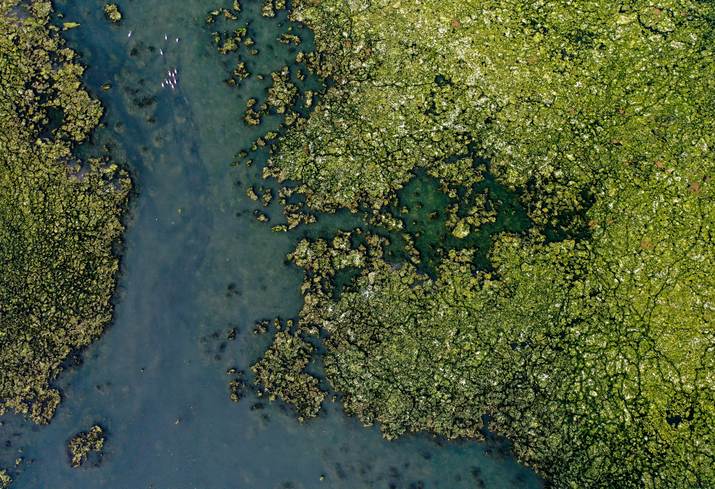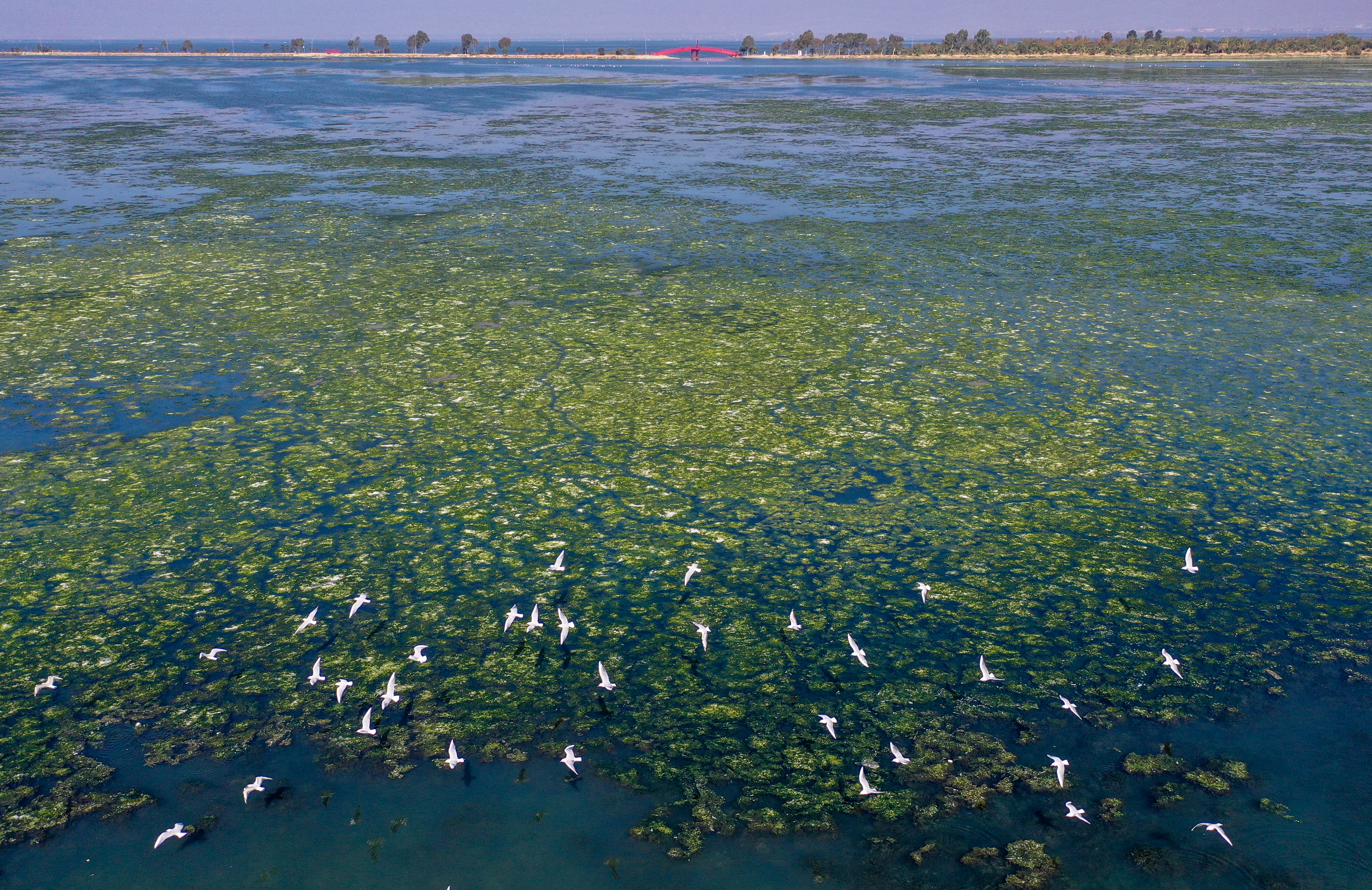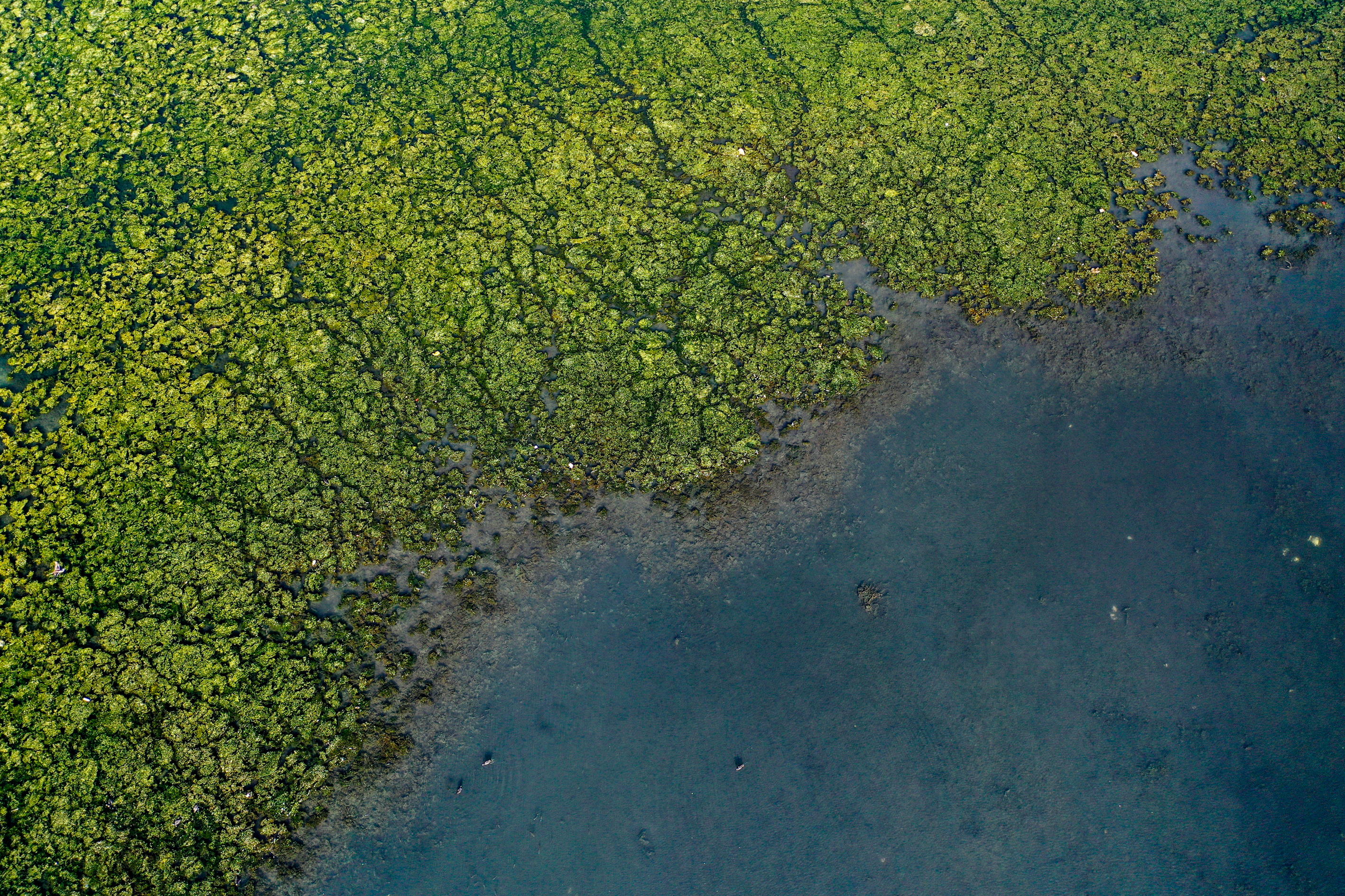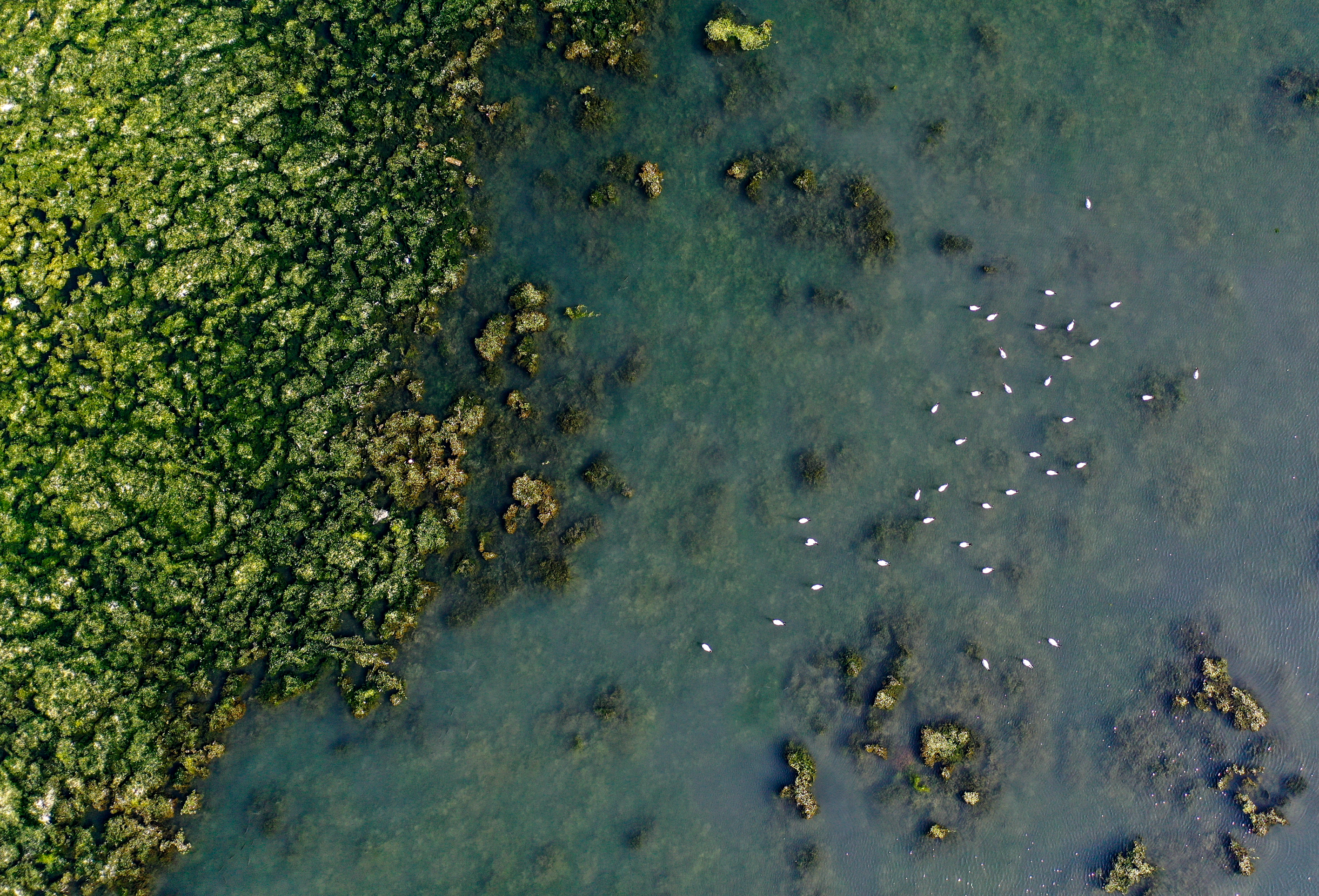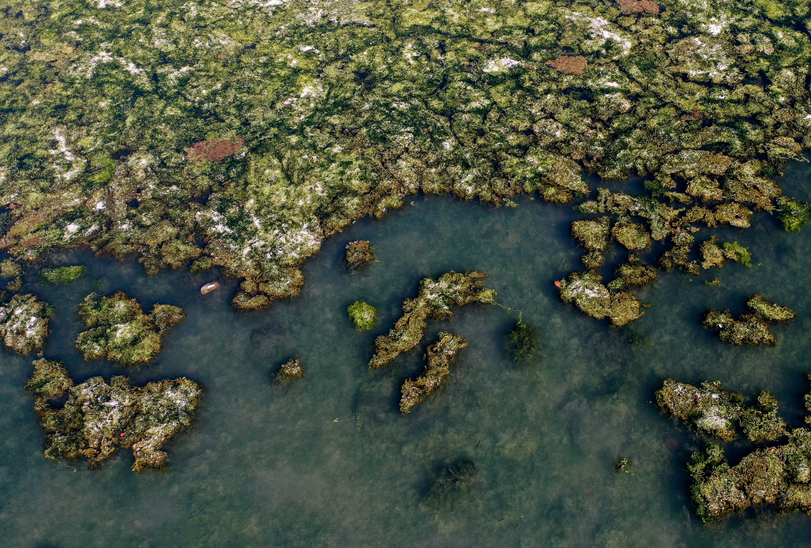 İzmir Körfezinde sudaki kirliliğe bağlı azot ve fosfor miktarının artmasıyla aşırı çoğalan deniz marulları, körfezin kuzey kıyısının yanı sıra güneyde de çok sayıda kuşa ev sahipliği yapan lagünü yeşile bürüdü.
