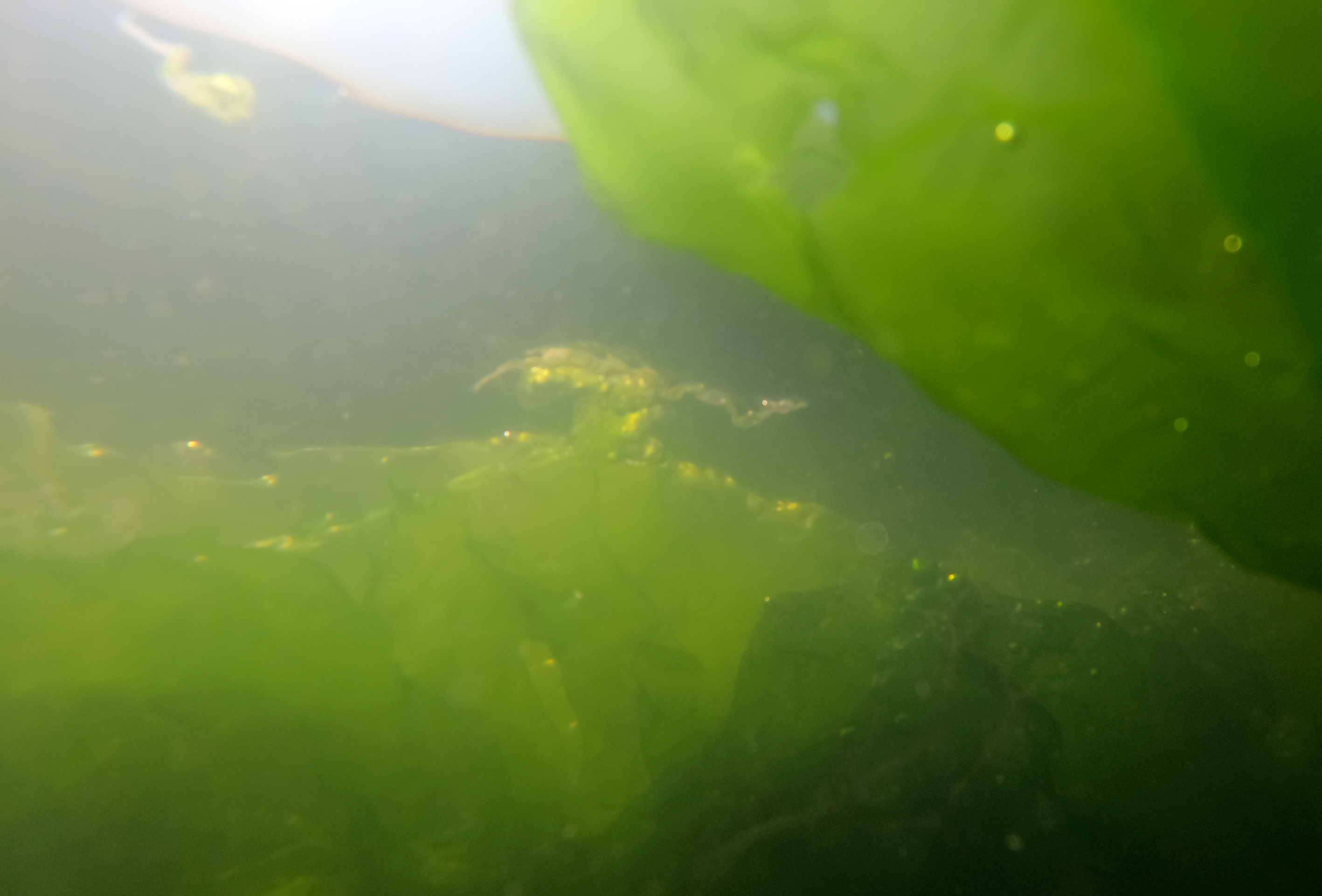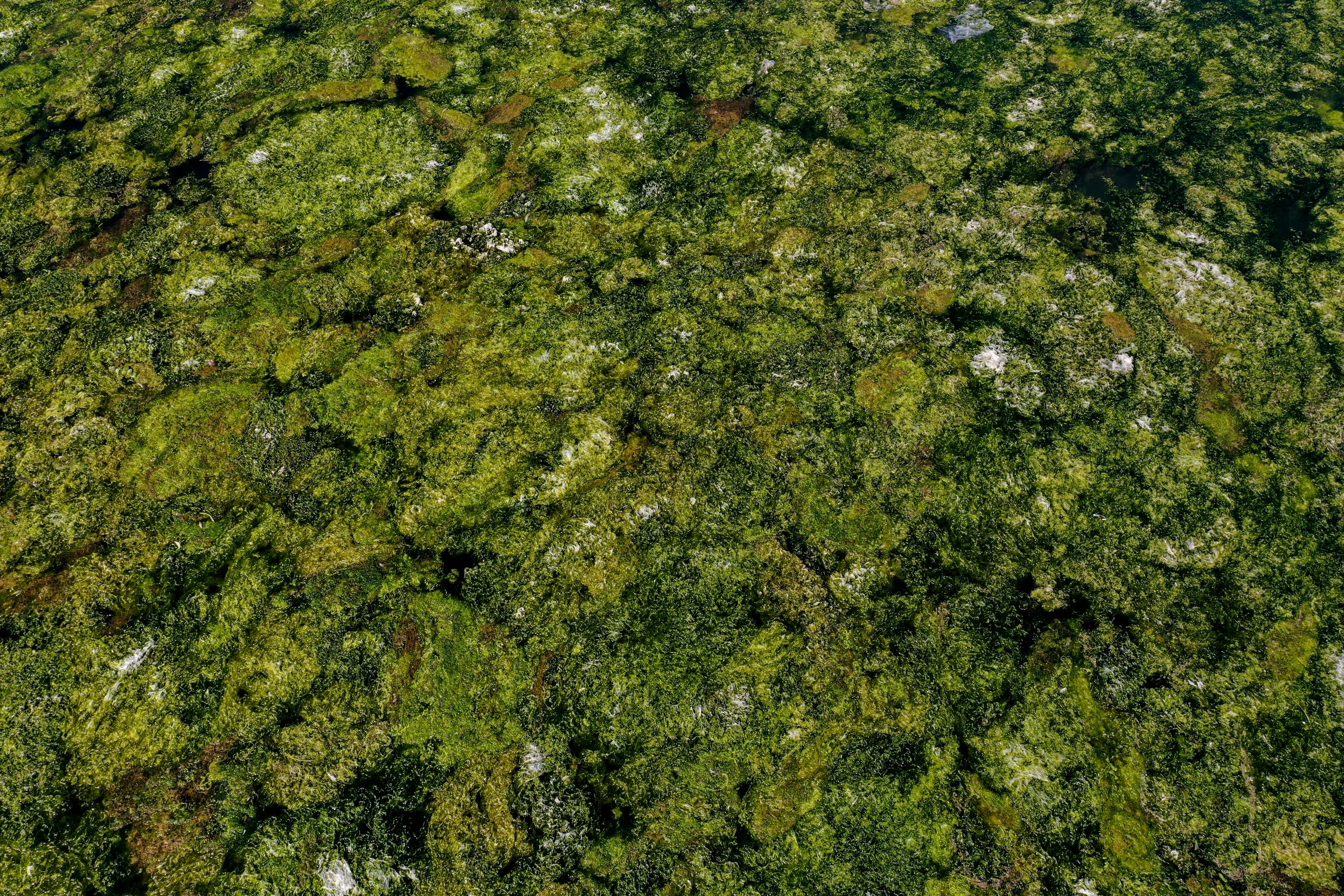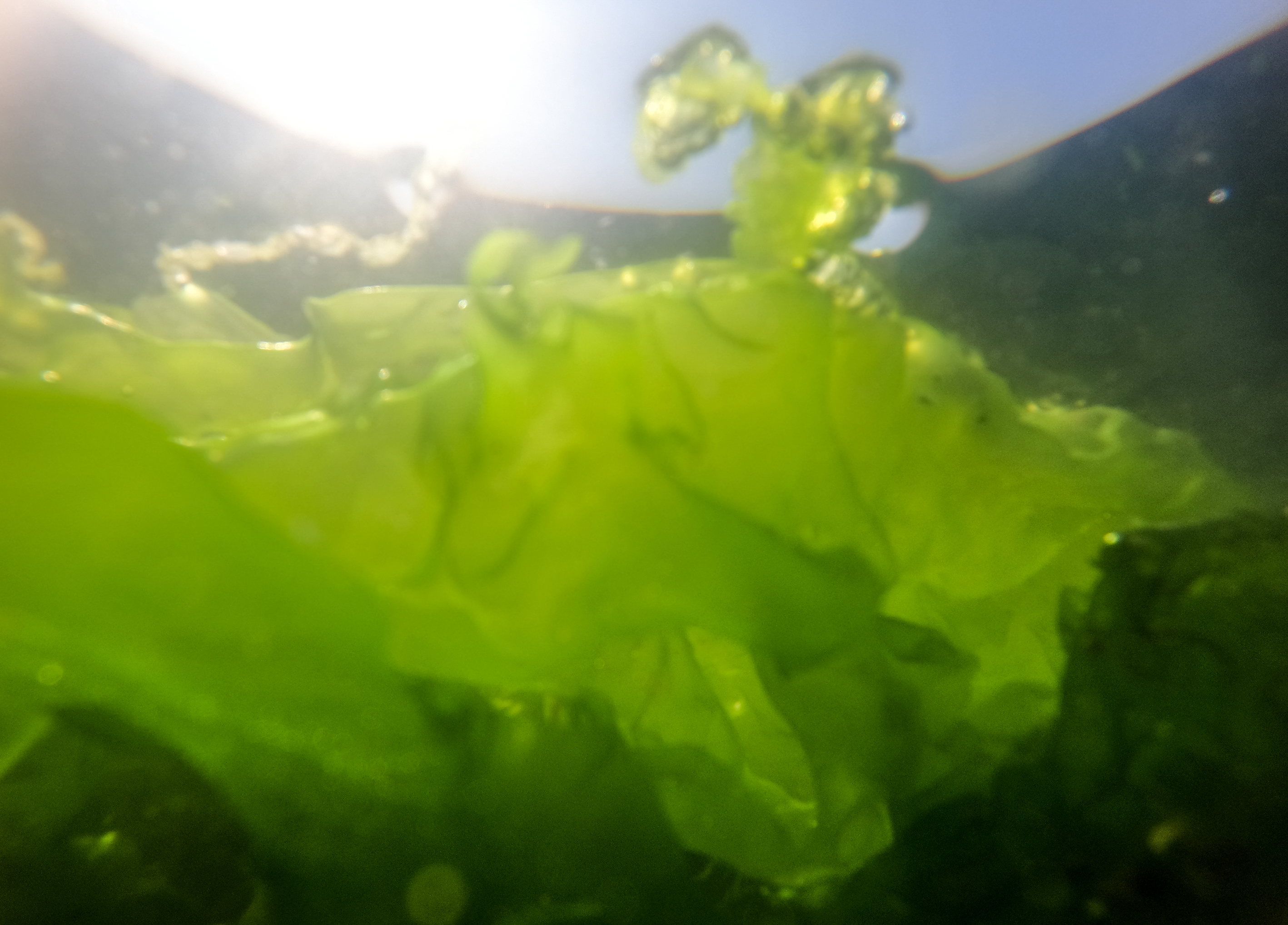 Karşıyaka ilçesindeki Bostanlı sahilinde kıyıya yakın noktalar, "deniz marulu" adı verilen yeşil renkli deniz yosunlarıyla kaplandı.