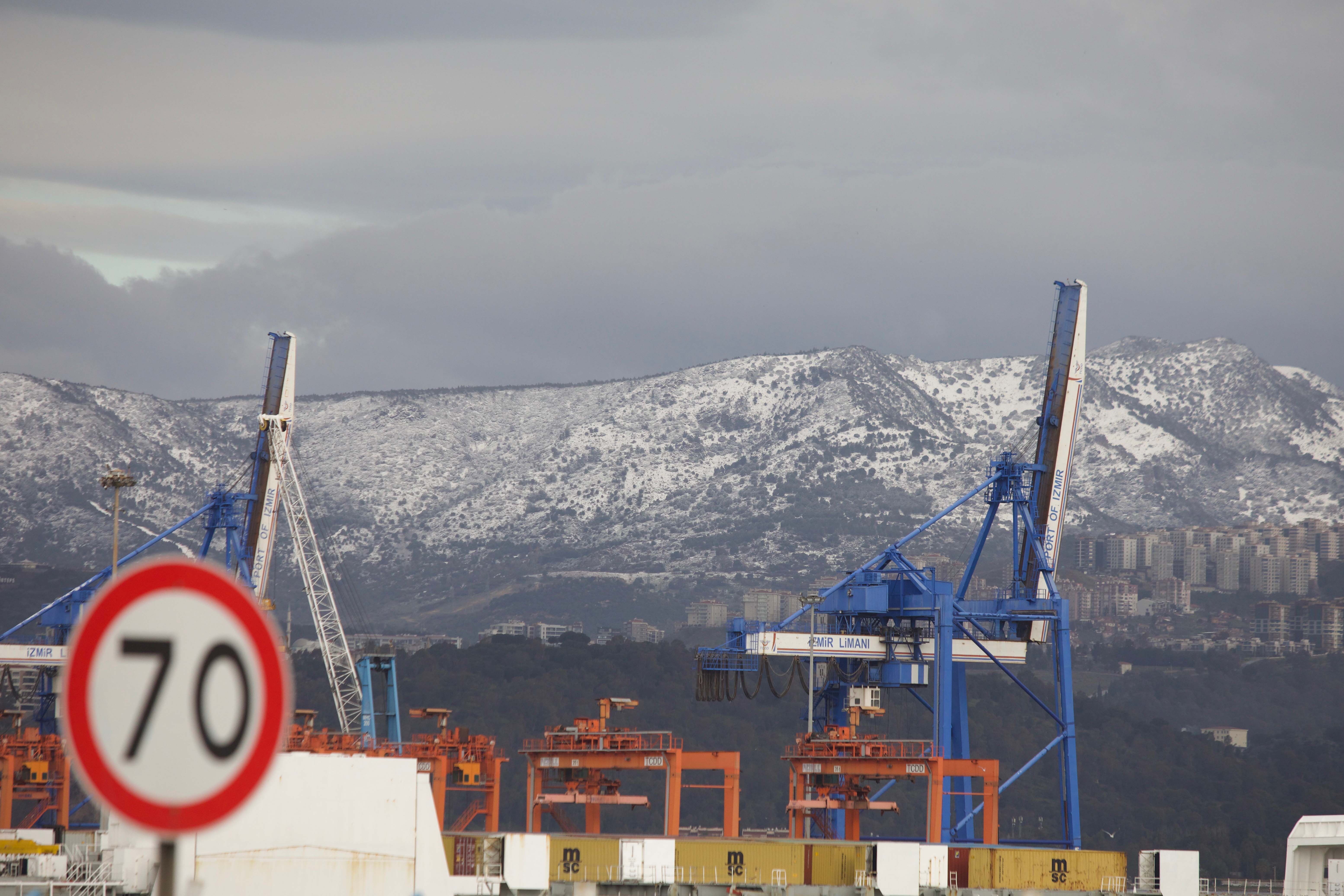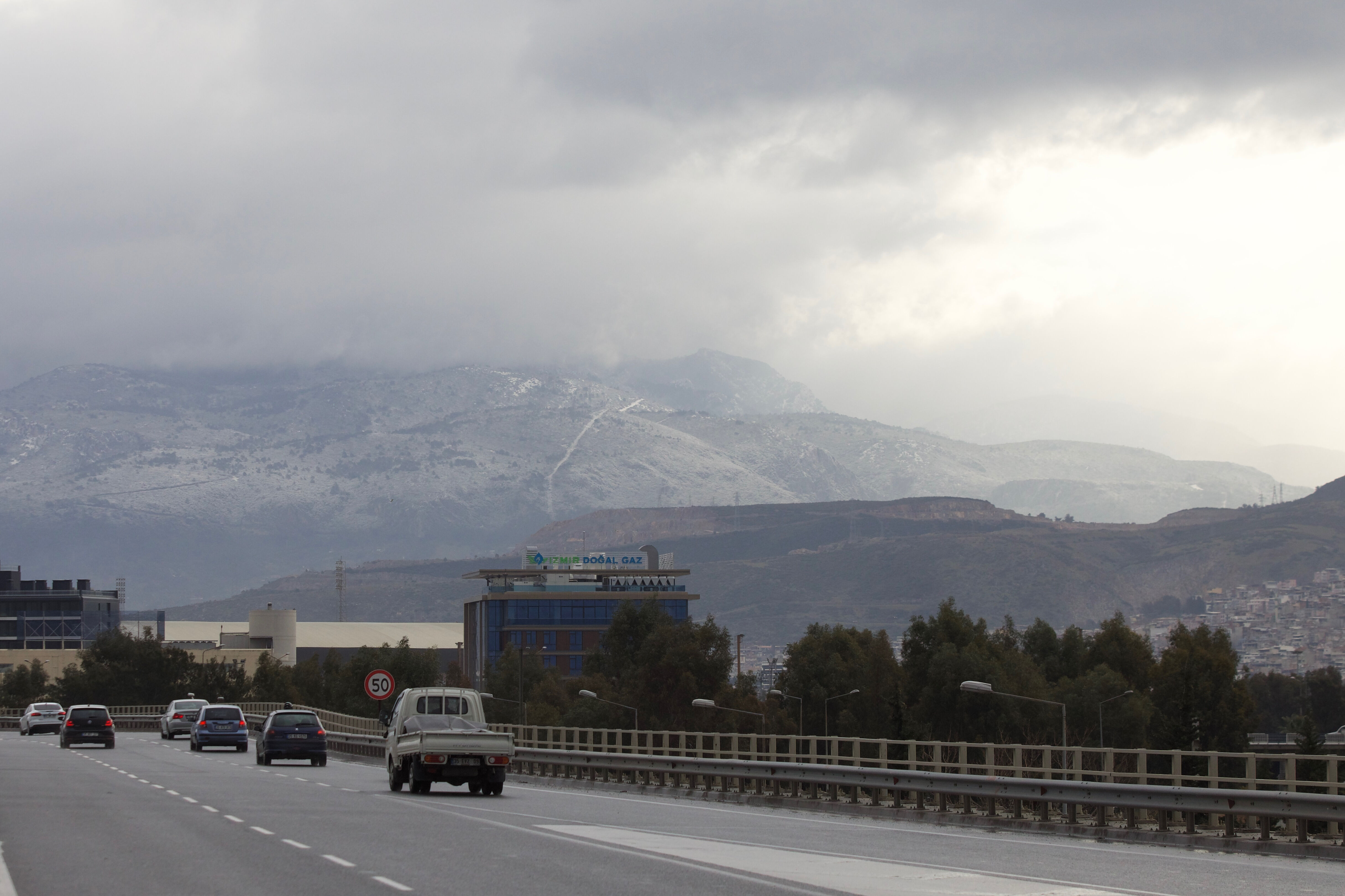 İzmir-Manisa kara yolunda kar yağışı etkili oldu.
