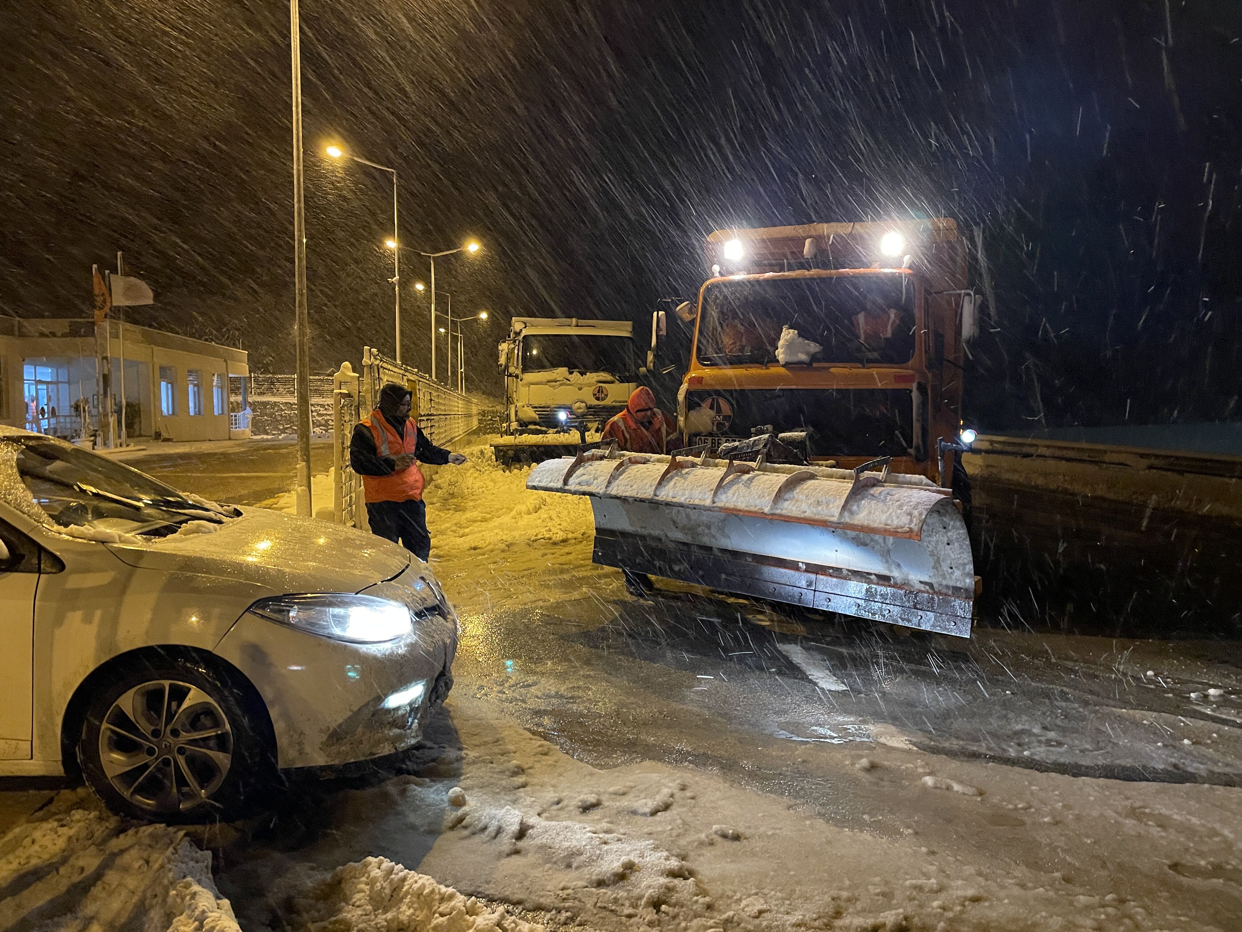 Karayolları ekipleri de kar küreme araçları ile çalışma yaparak, tuzlama işlemi gerçekleştirdi.