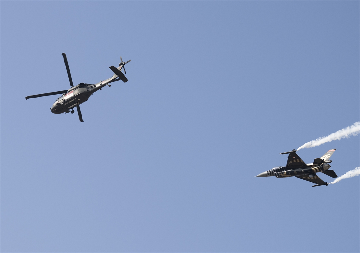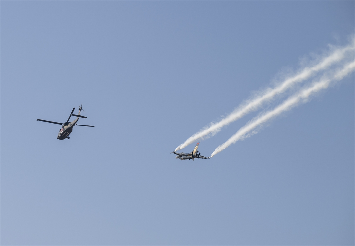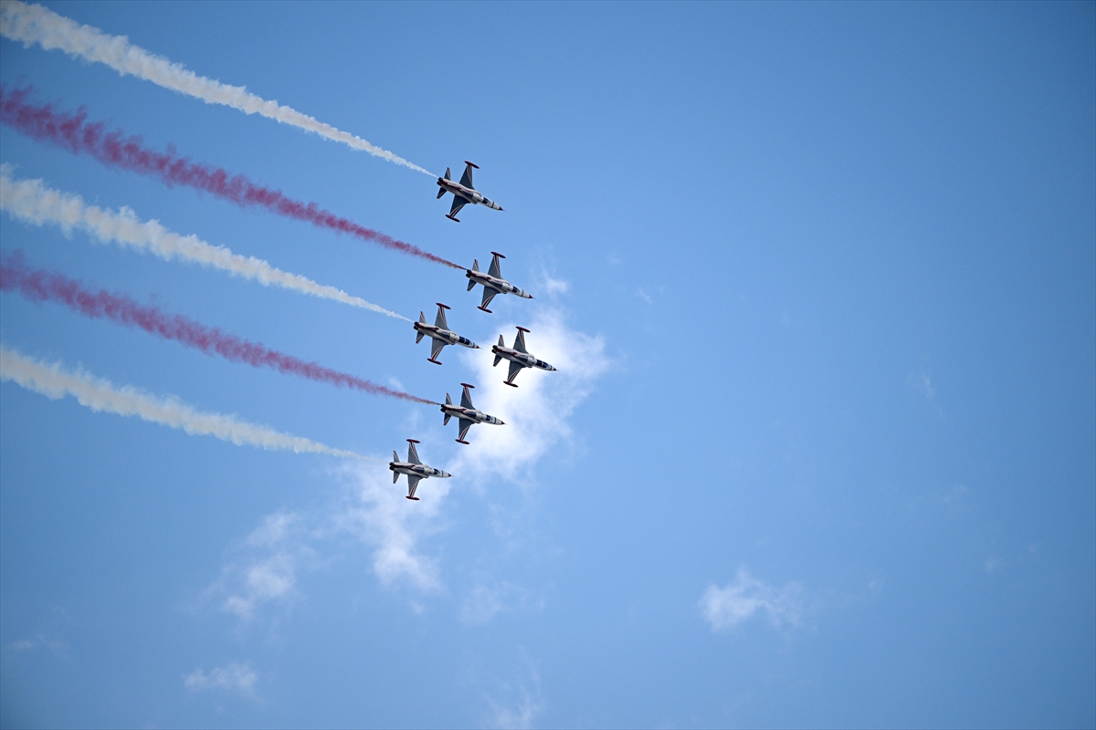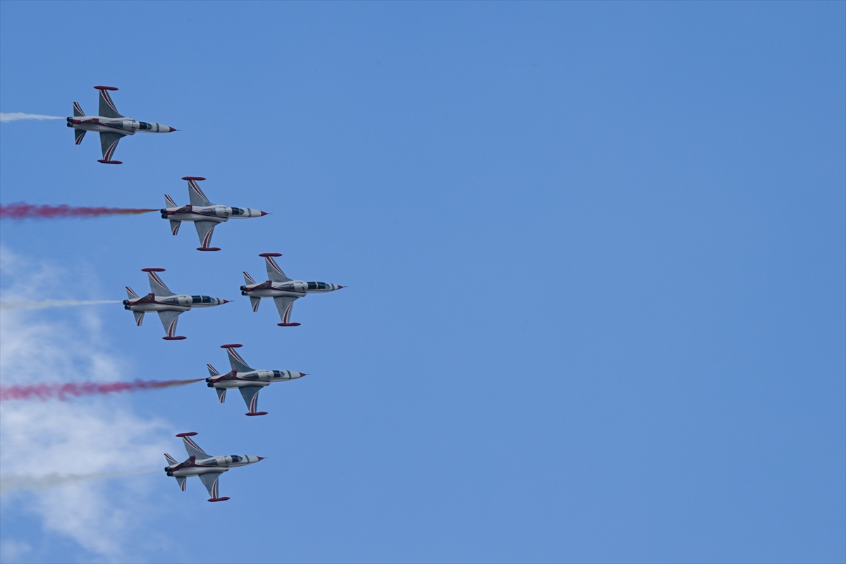 Çiğli Havaalanı'nda düzenlenen festivalin ilk gününde, Türk Hava Kuvvetleri akrobasi timi SOLOTÜRK gösteri uçuşu yaptı.