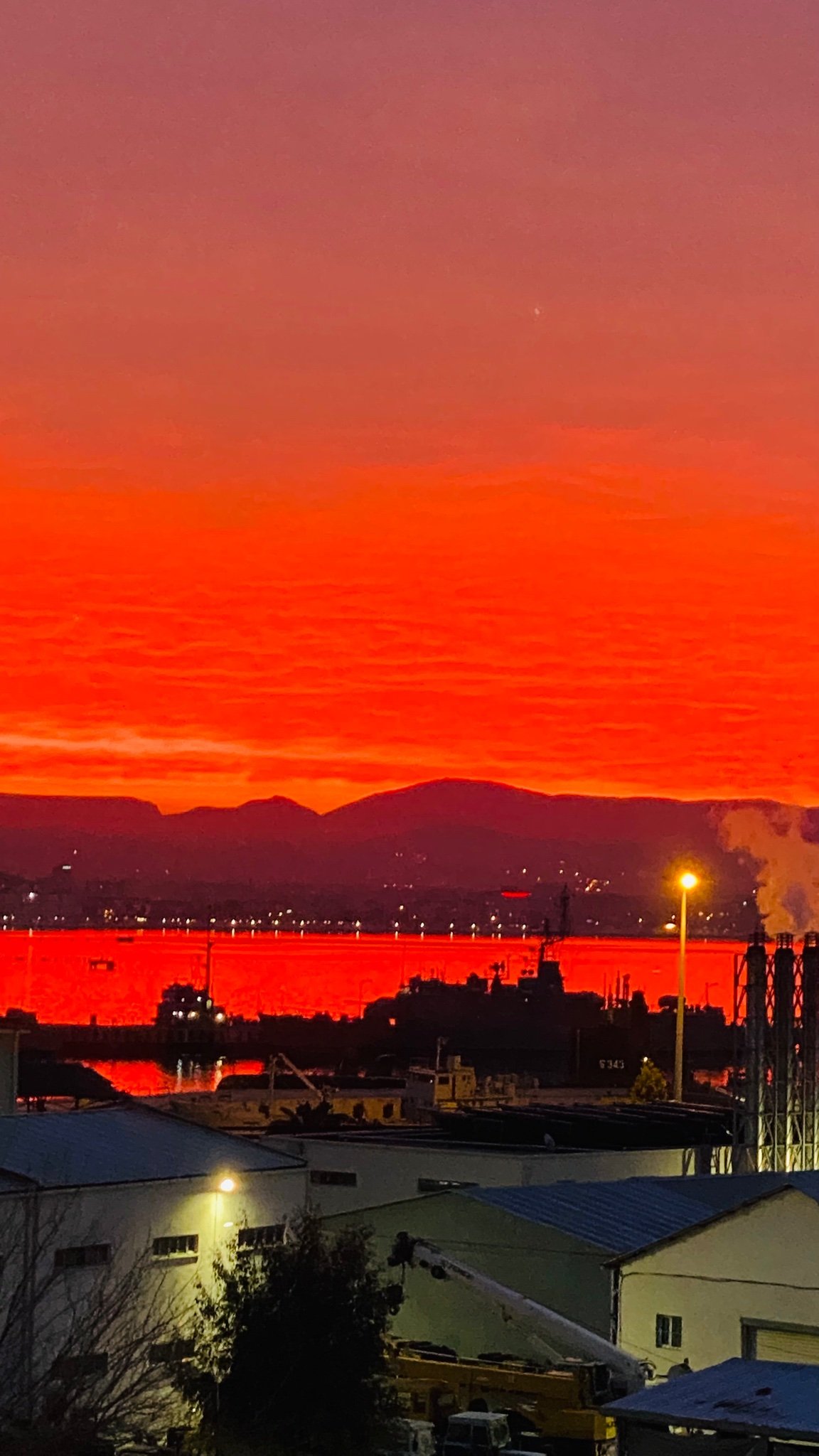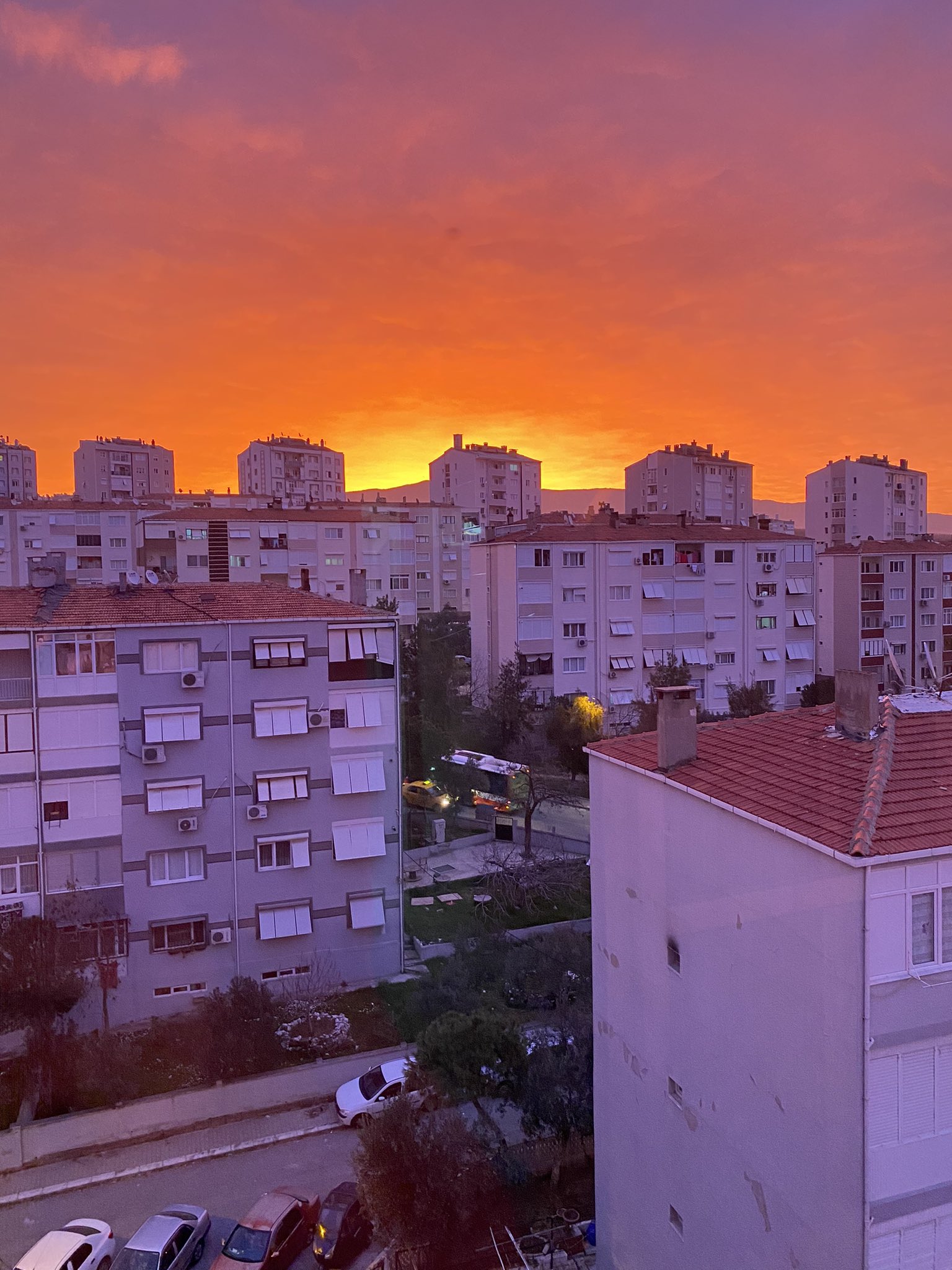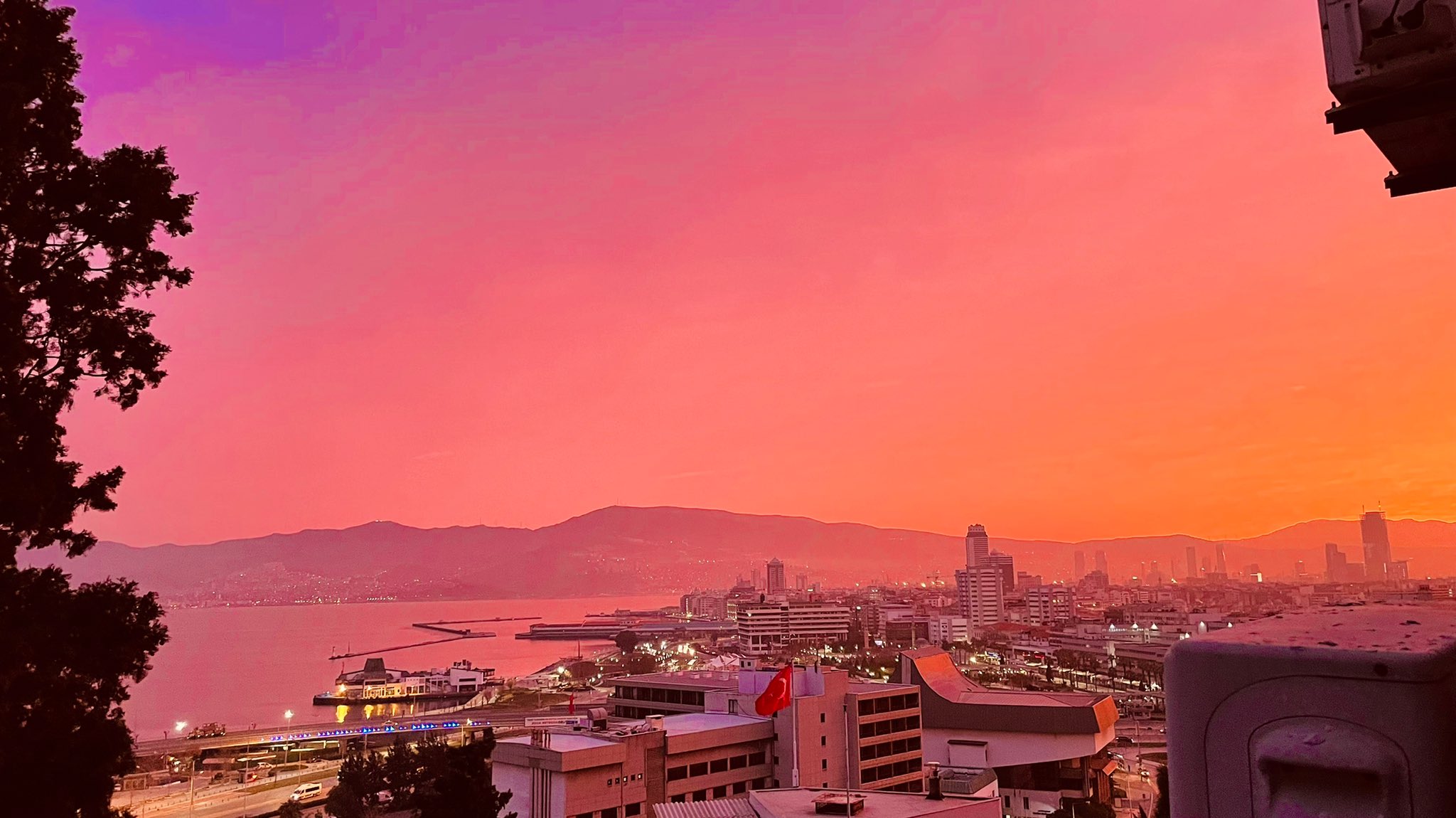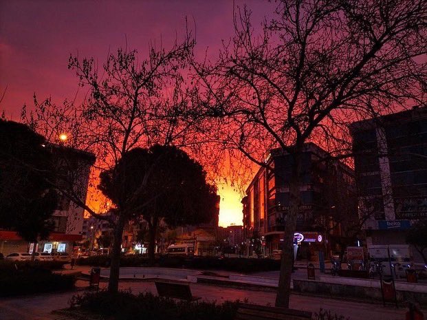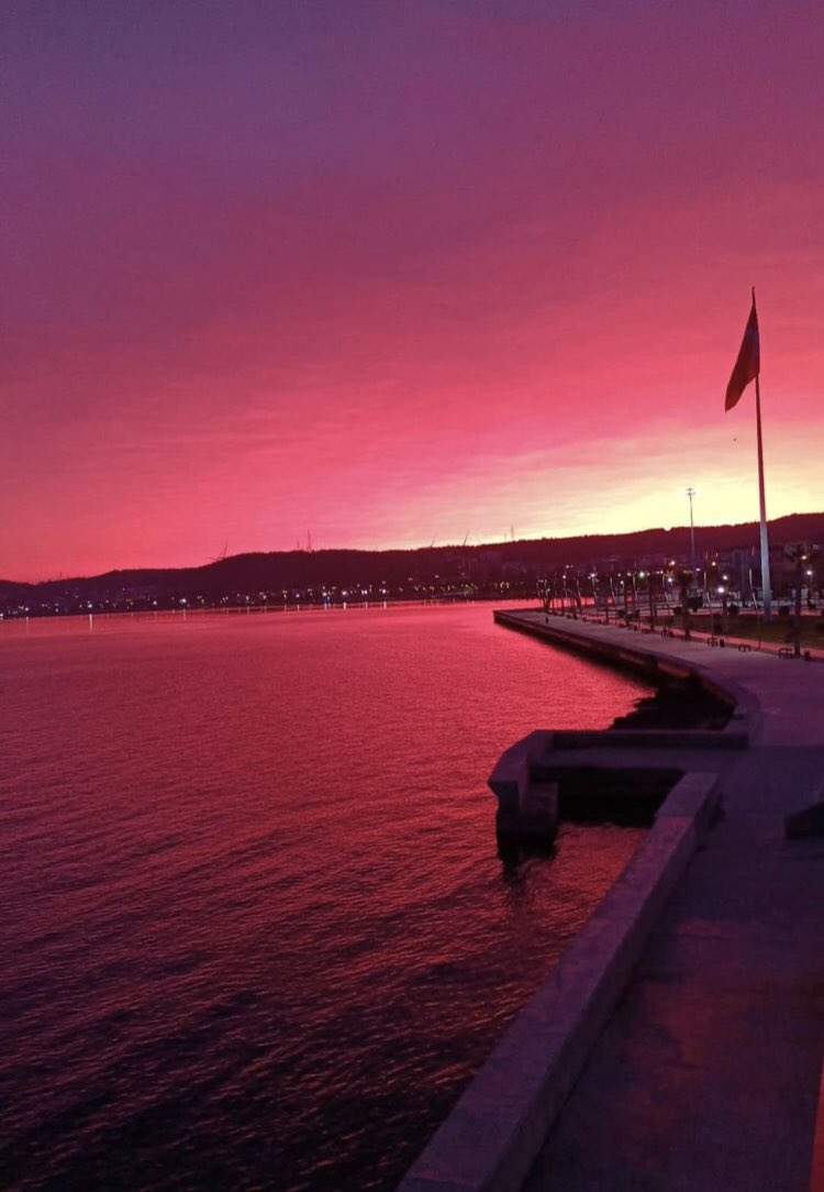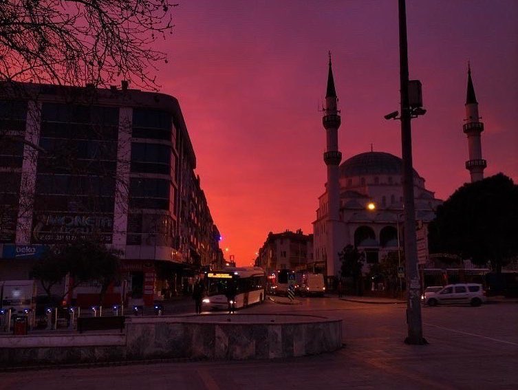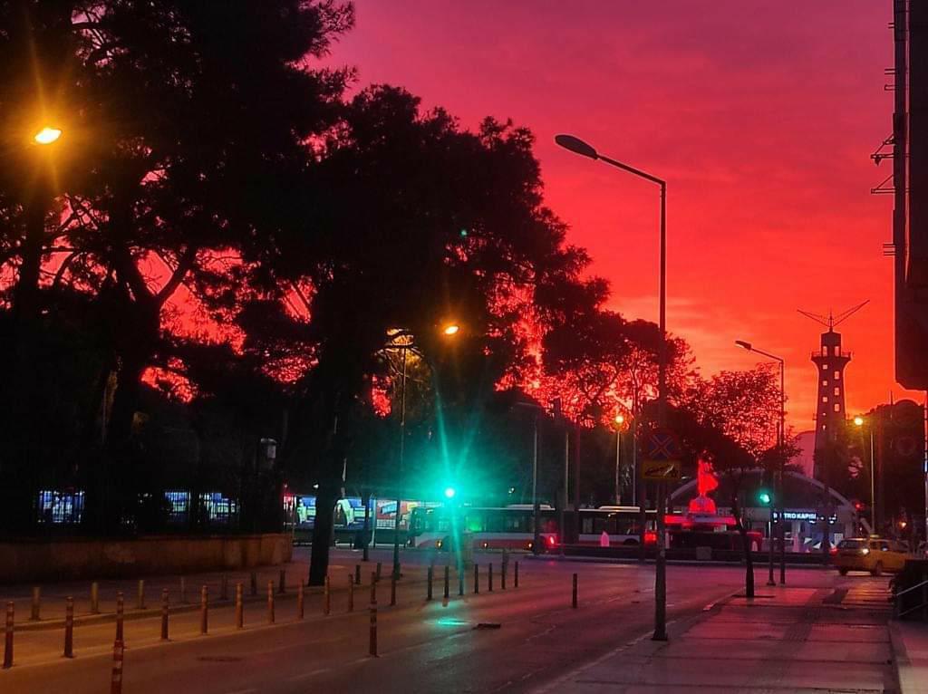Yeni güne uyanan İzmirliler kızıl gökyüzünün şaşkınlığını yaşadılar. Cep telefonları ile çektikleri fotoğrafları sosyal medya hesaplarından paylaştı.