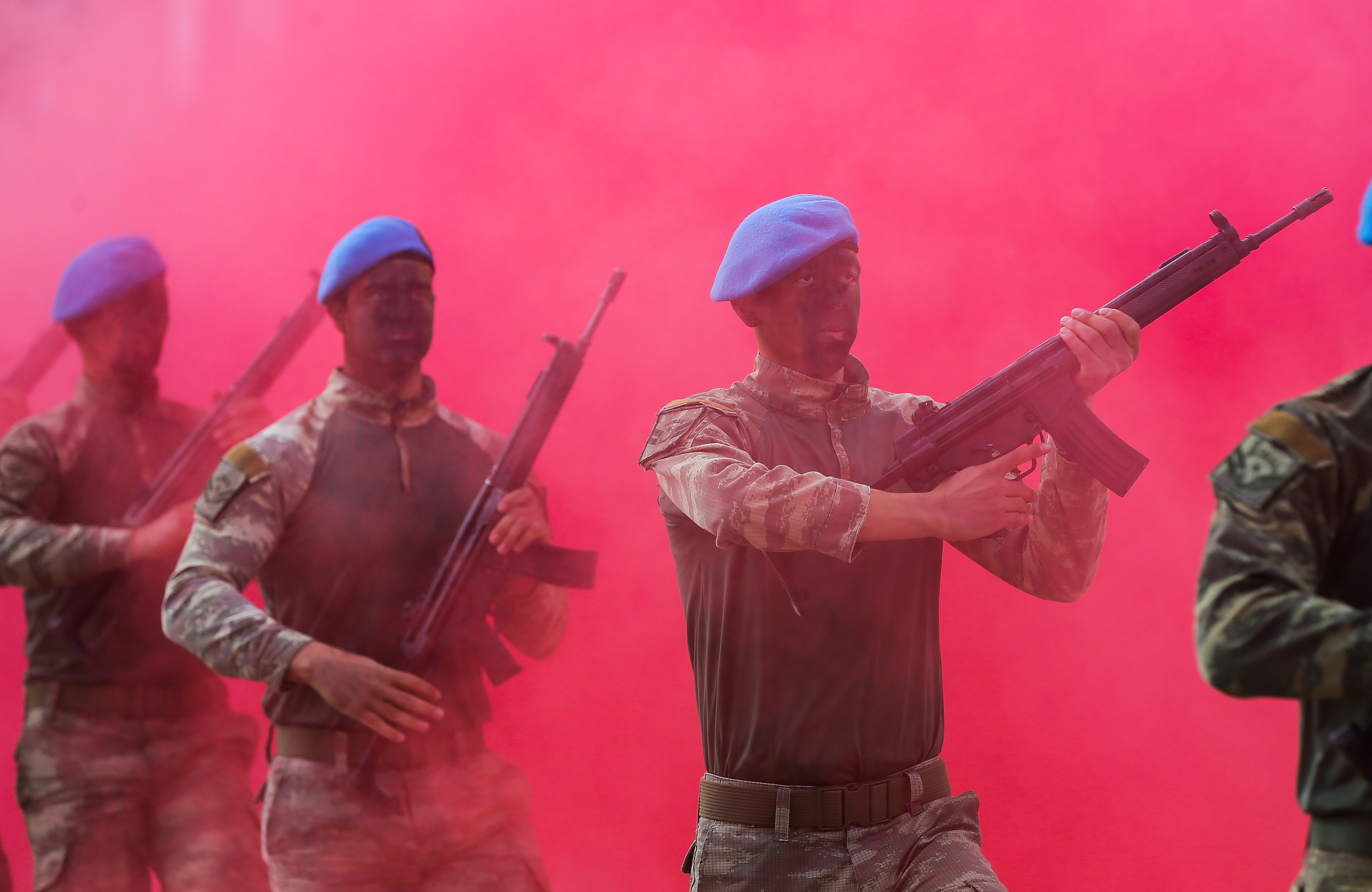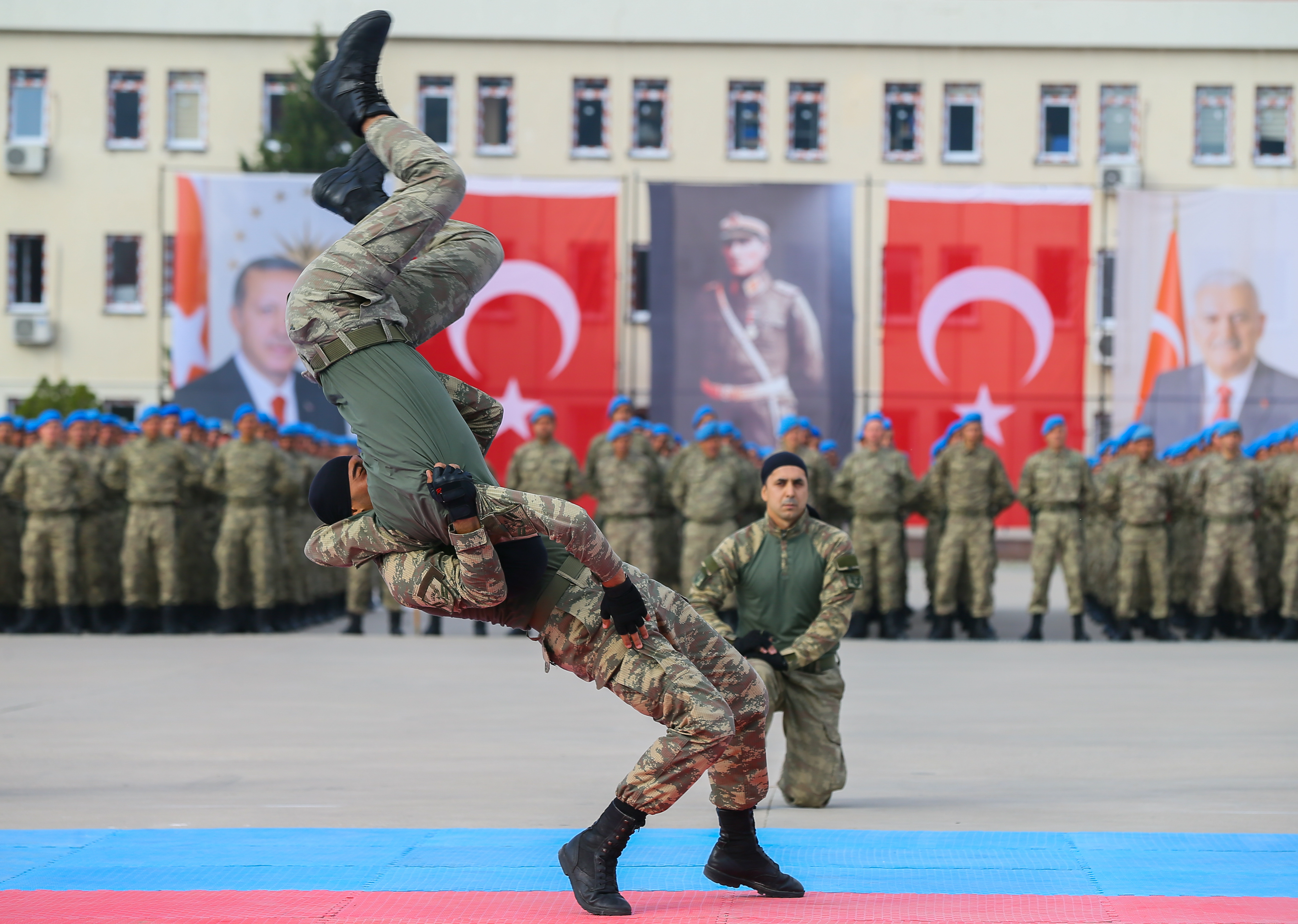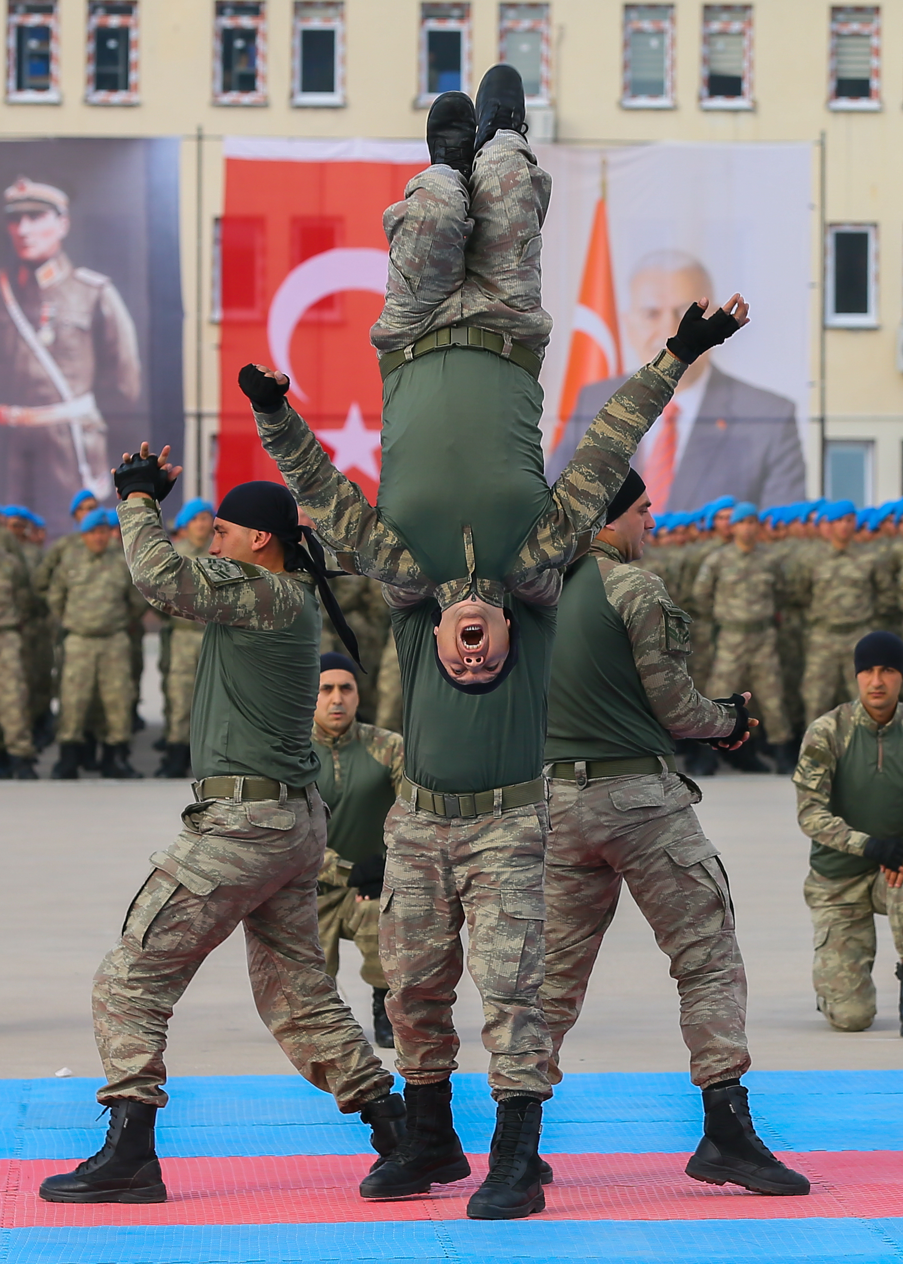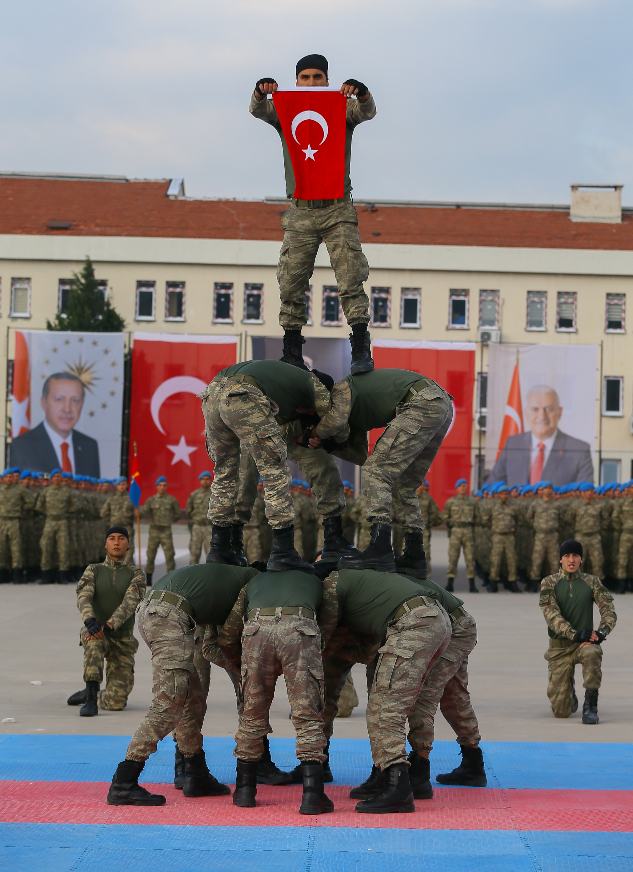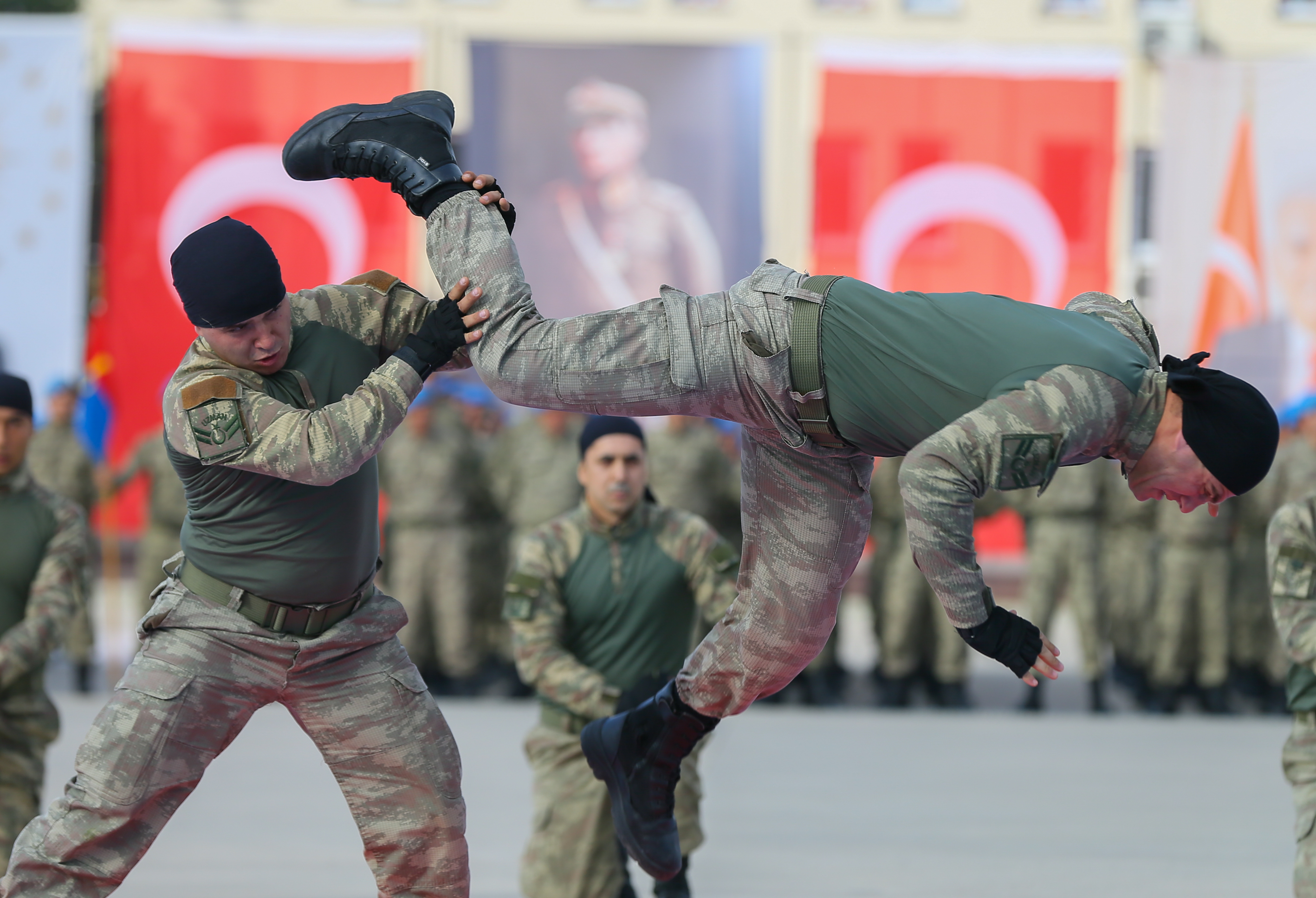 Çeşitli gösterilerin sunulduğu etkinlikte, tüfekli hareketler ve yakın dövüş gösterileri katılımcılardan büyük alkış aldı. Askerler, gösteriler sonunda Türk bayrağı açtı.