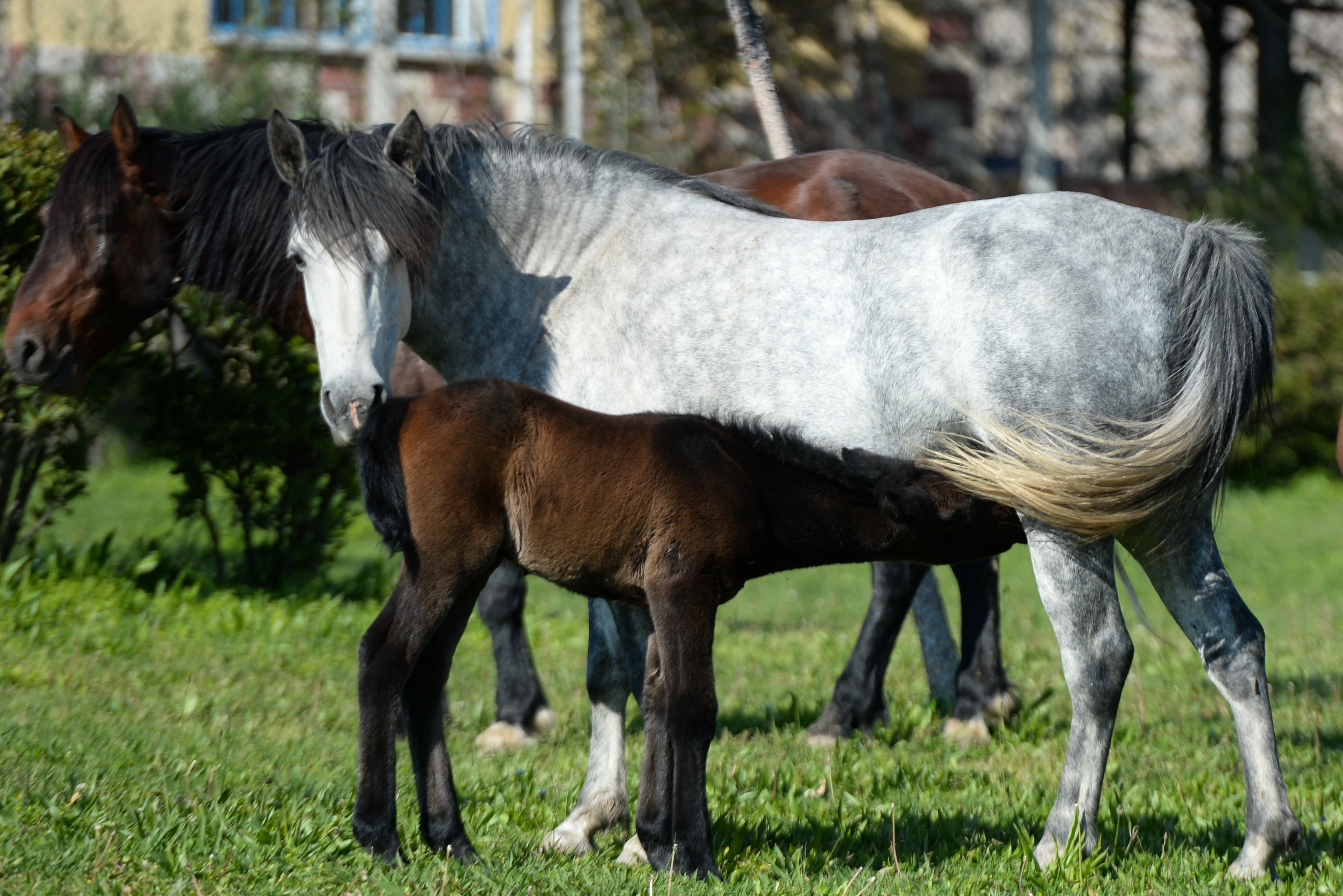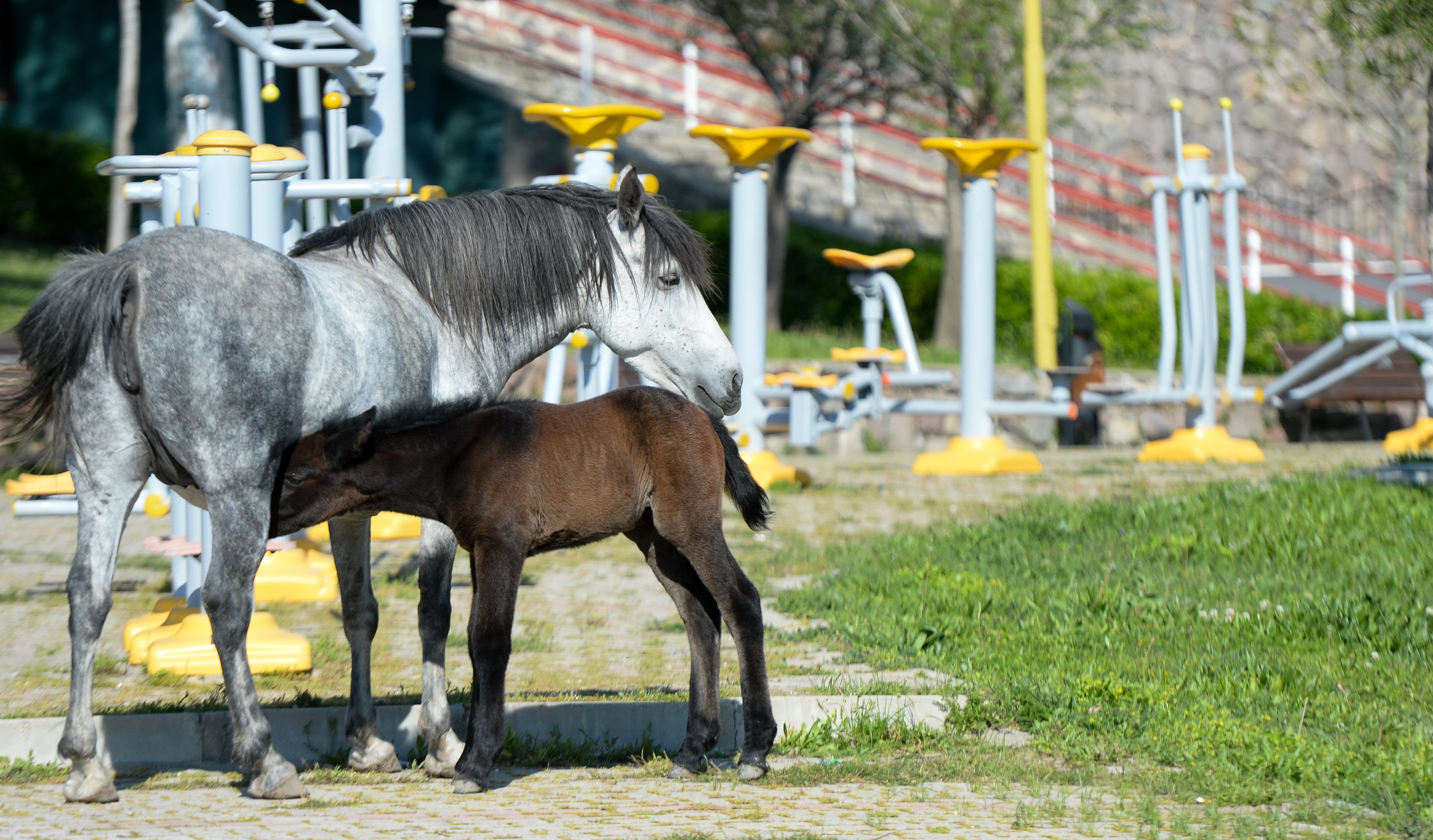 Bu sırada taylar da annelerini emerek kırsal manzaraları şehir meydanına taşıdı. (AA)