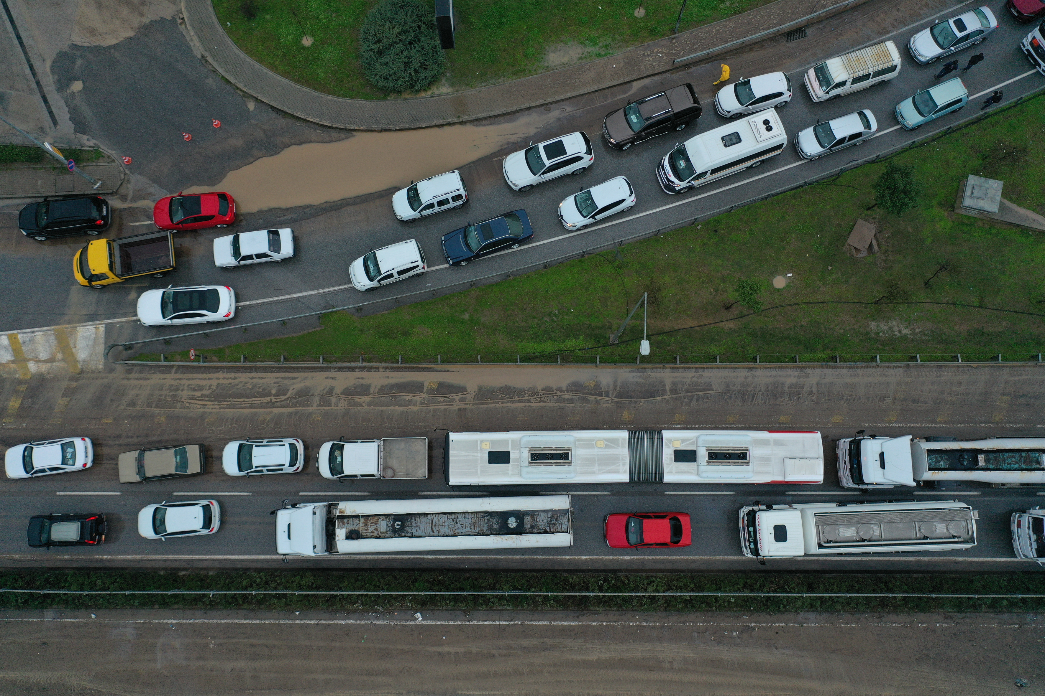 Birçok ilçede yollardaki su birikintileri sürücülere zor anlar yaşattı.