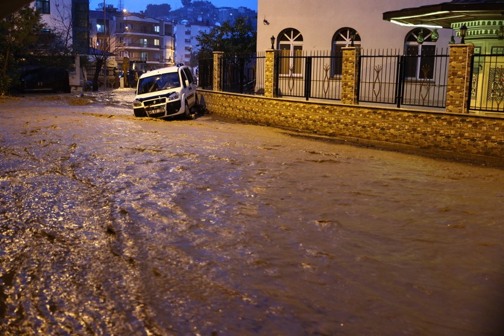 Kent genelinde gece saatlerinde etkisini artıran yağış nedeniyle ana cadde ve sokaklarda su birikintileri oluştu, dereler taştı.