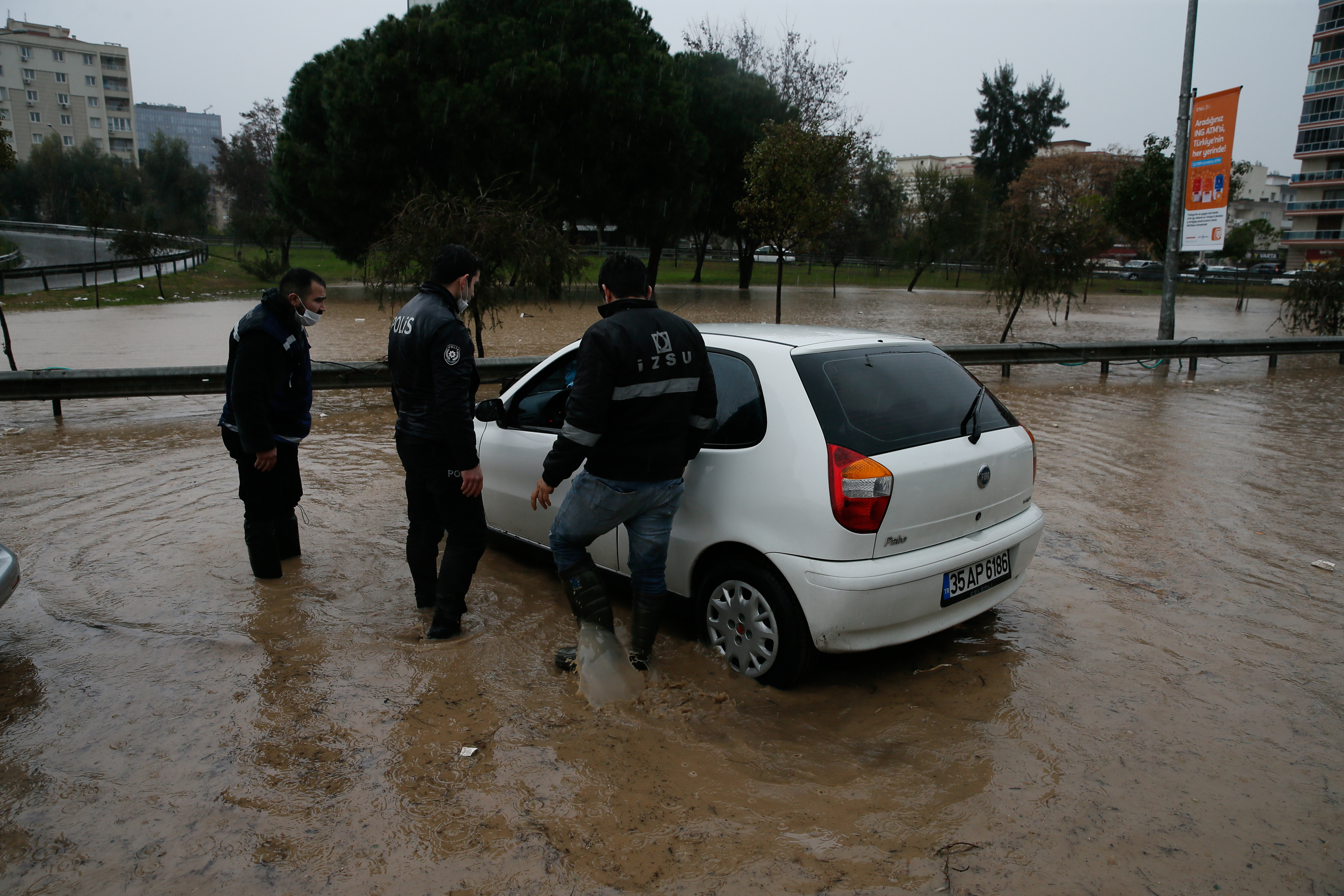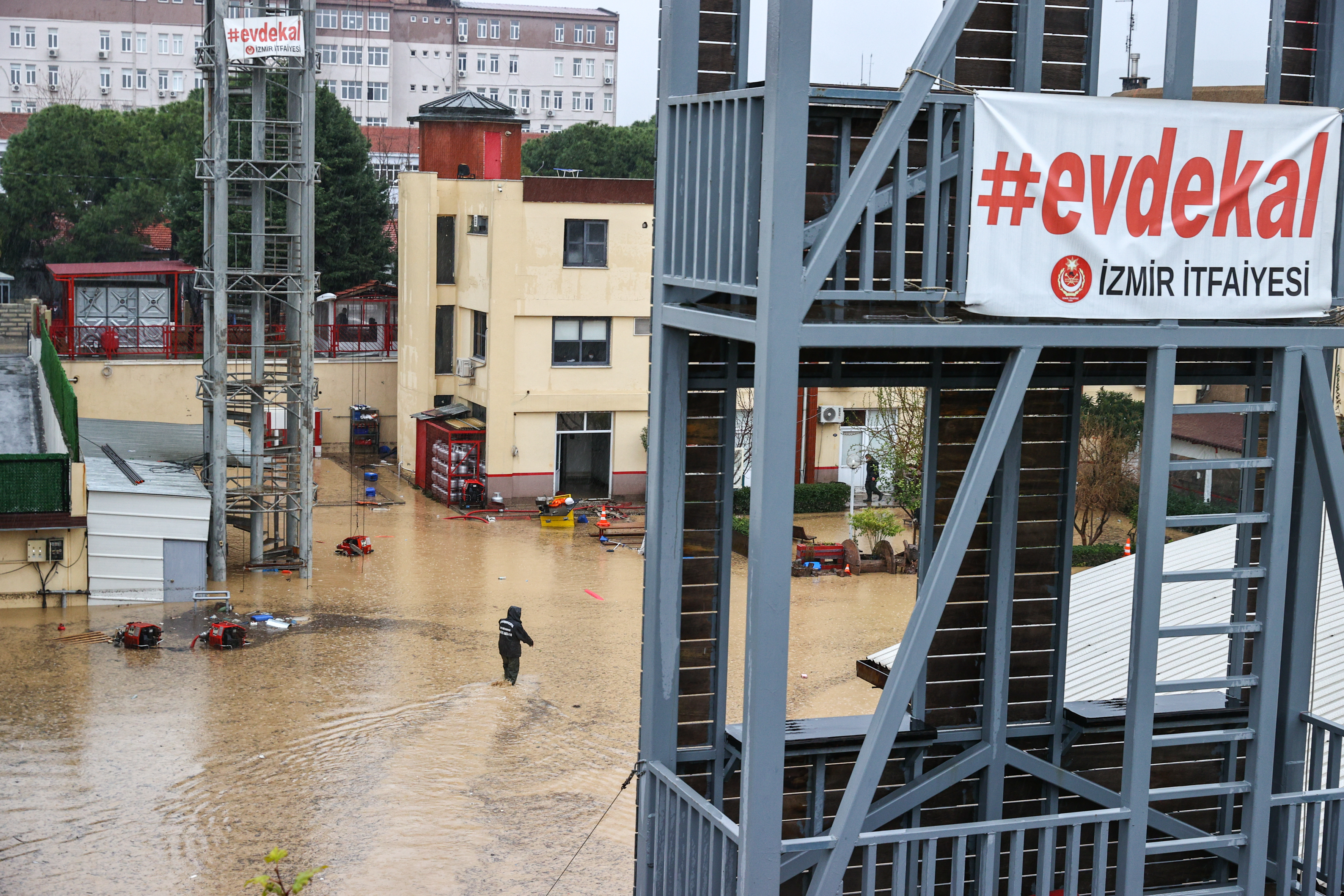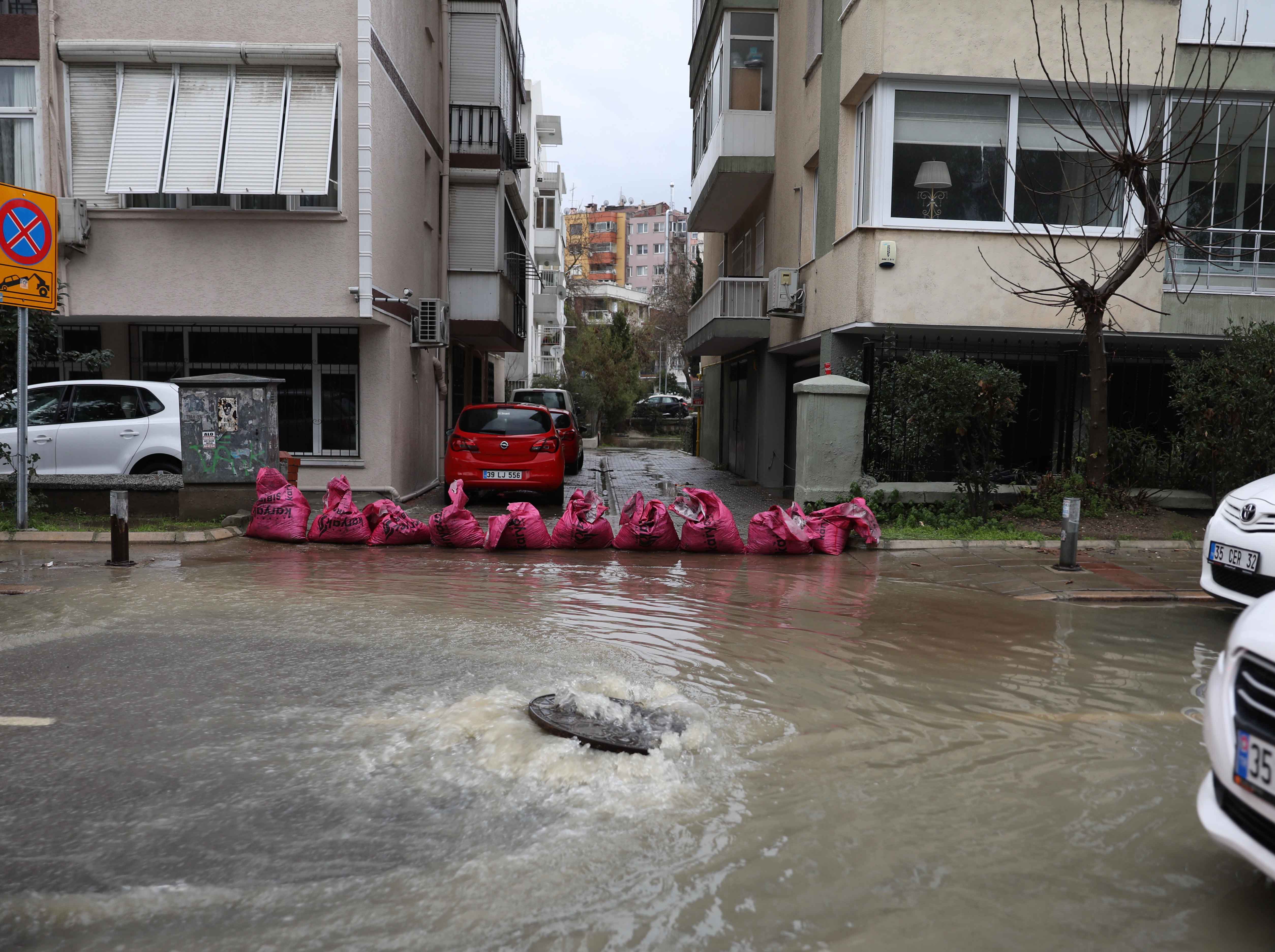 İzmir Büyükşehir Belediyesi ekipleri, suyu tahliye etmek için çalışma başlattı.