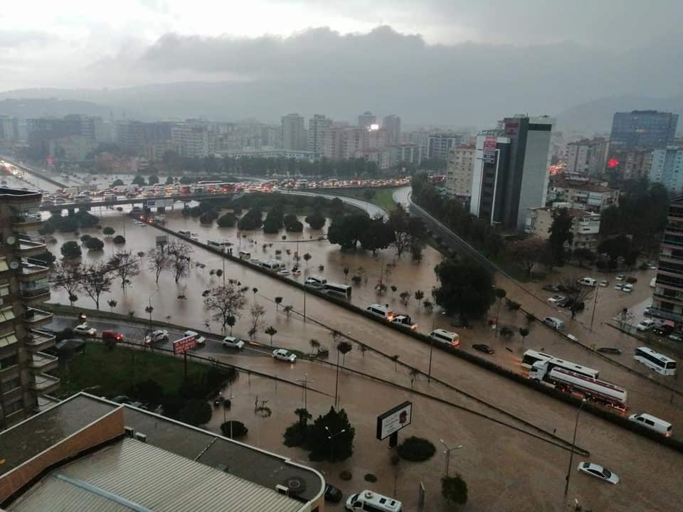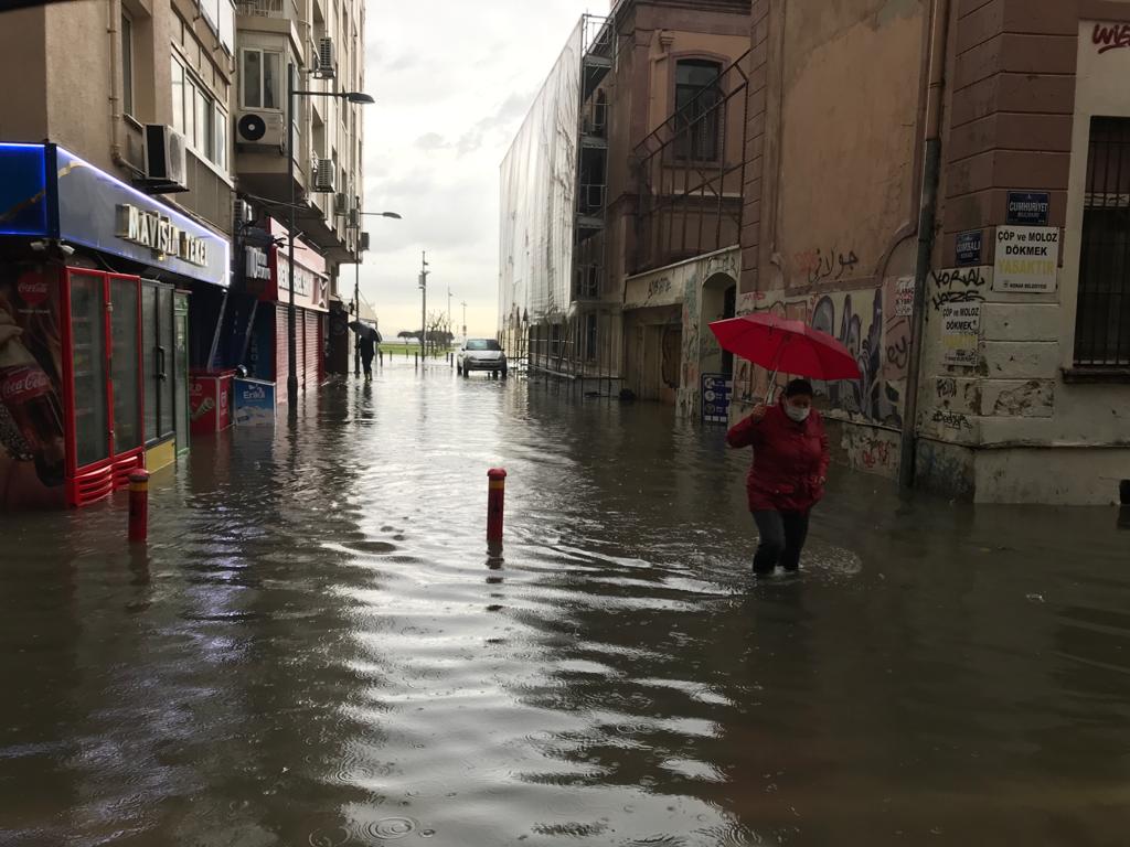 İzmir'de sağanak yaşamı olumsuz etkiledi.