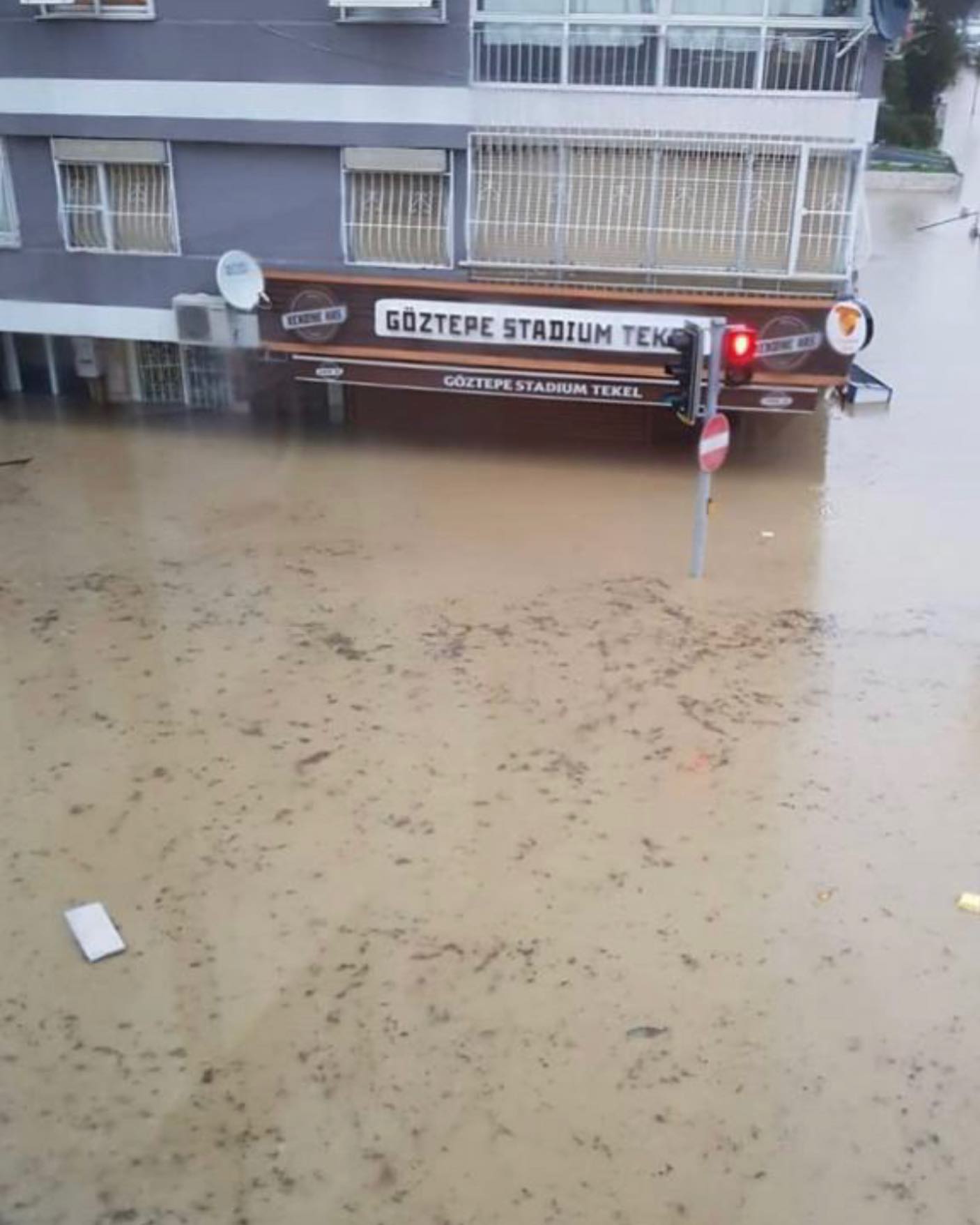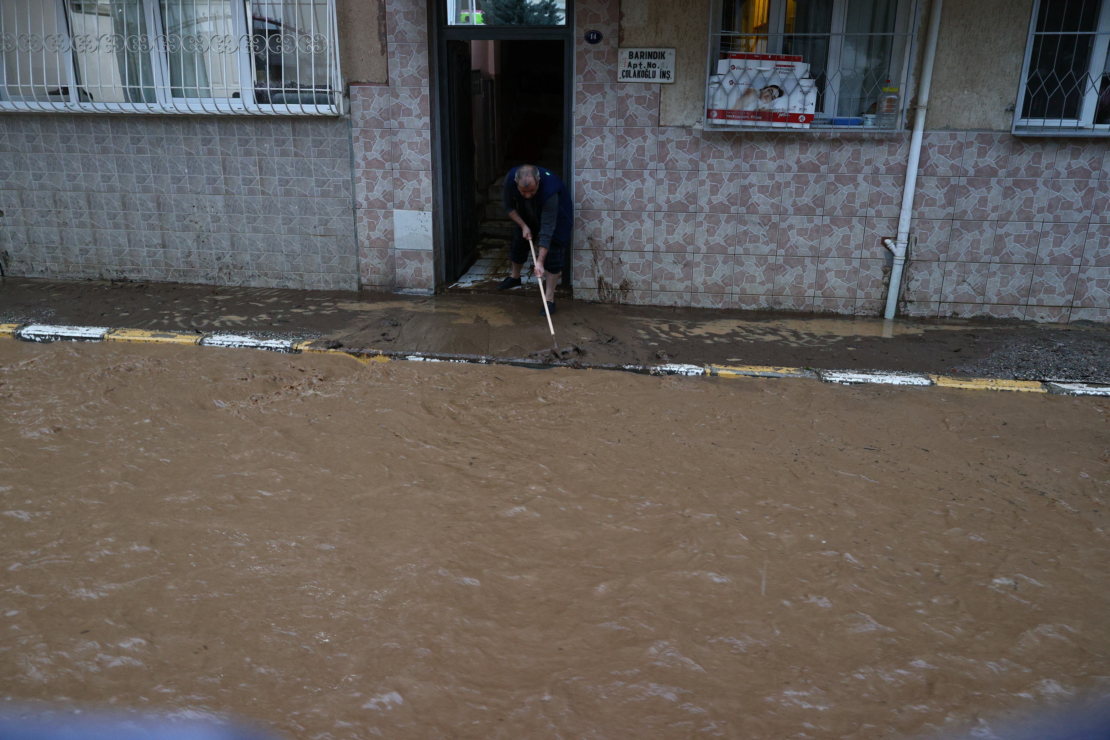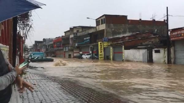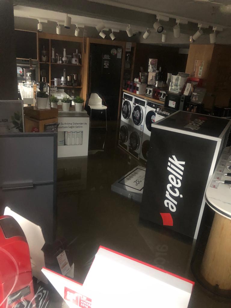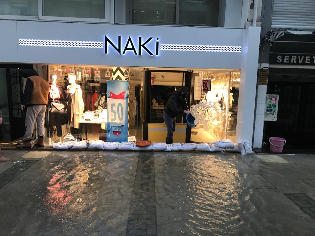 Kentin bazı noktalarında biriken su kaldırım seviyesini aştı.