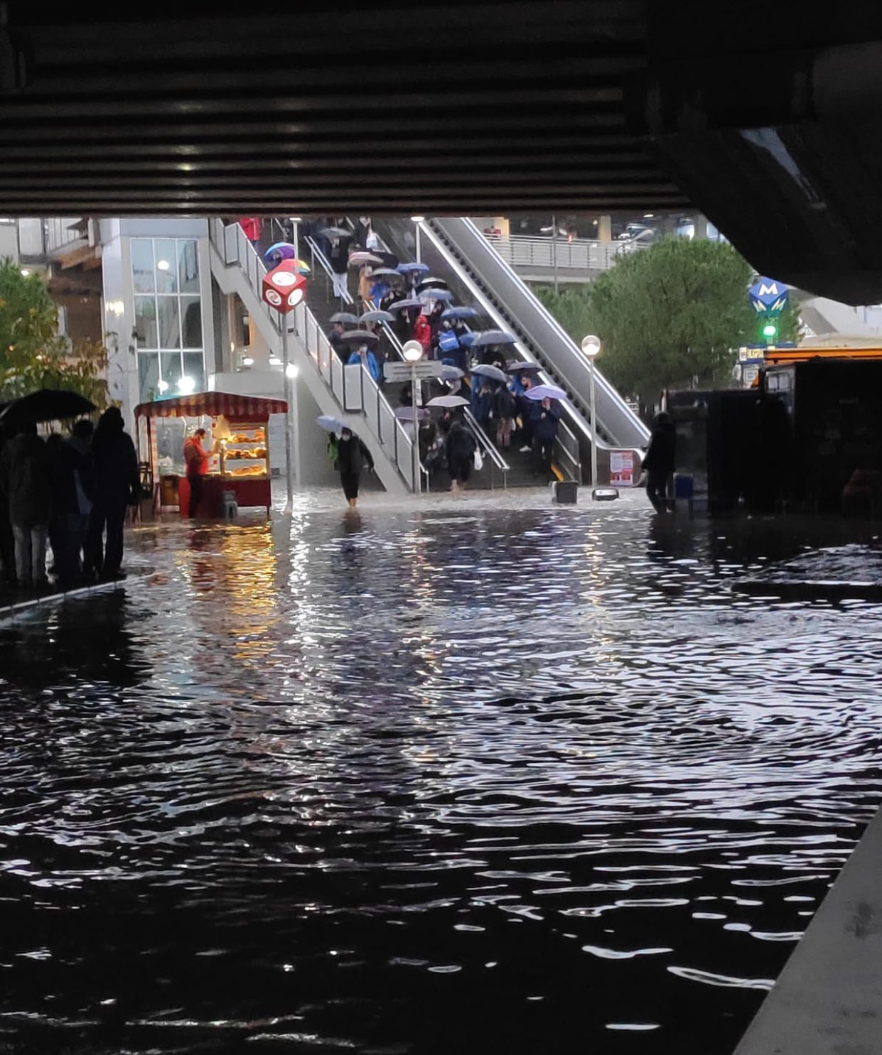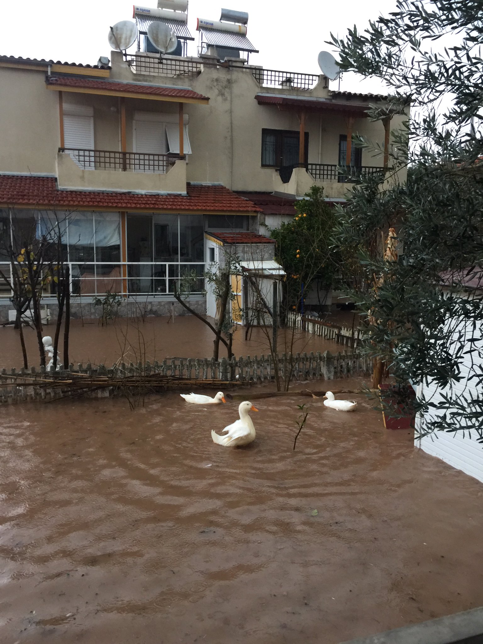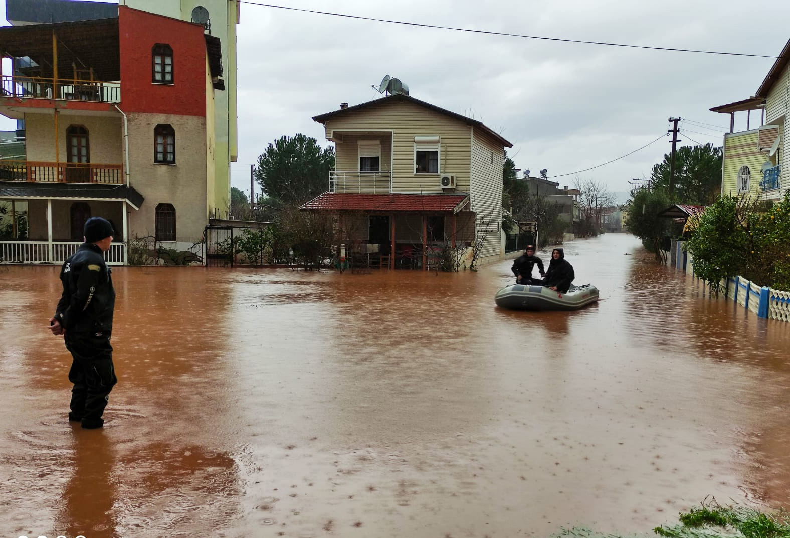 Kentin bazı noktalarında biriken su kaldırım seviyesini aştı.