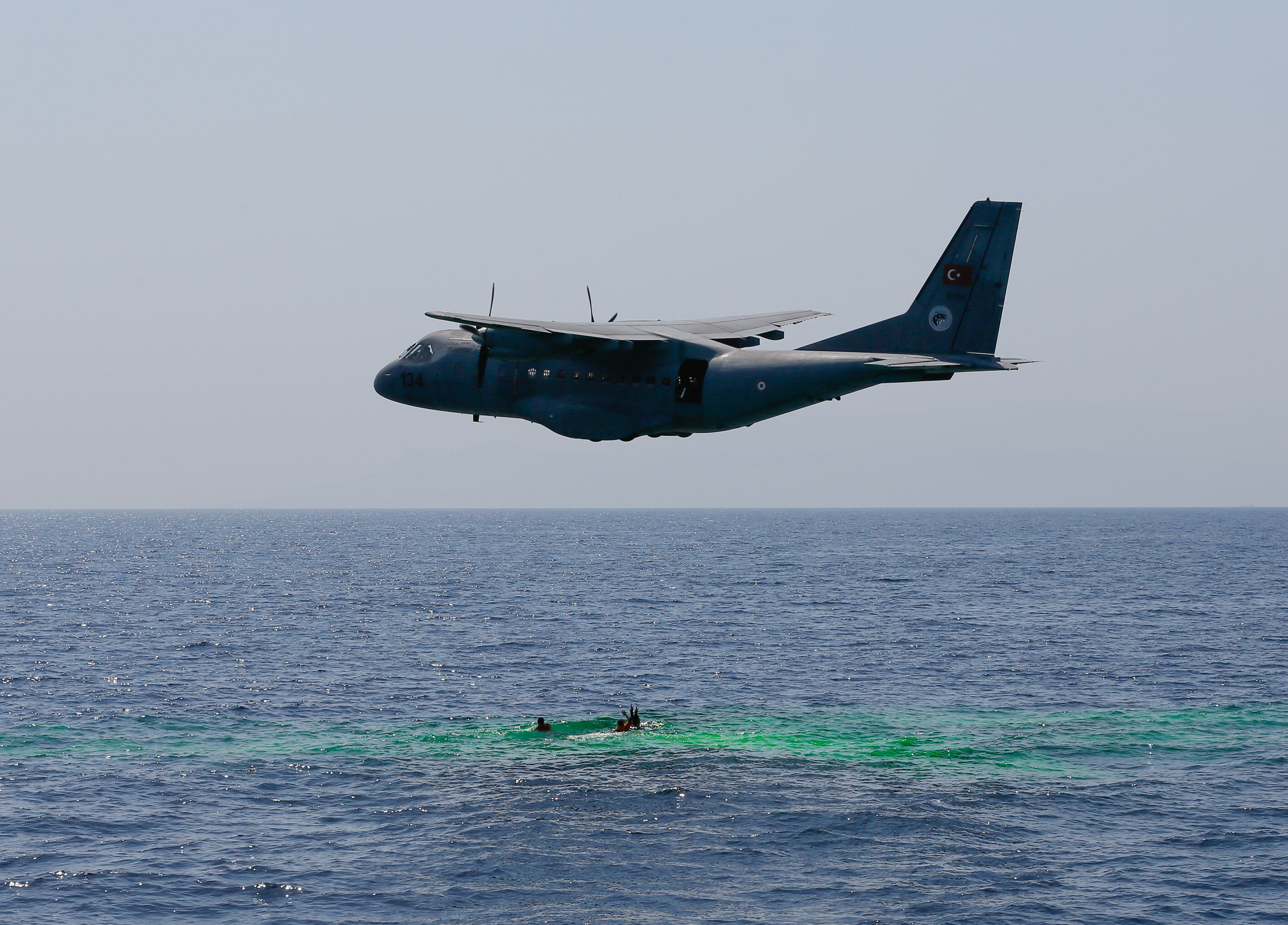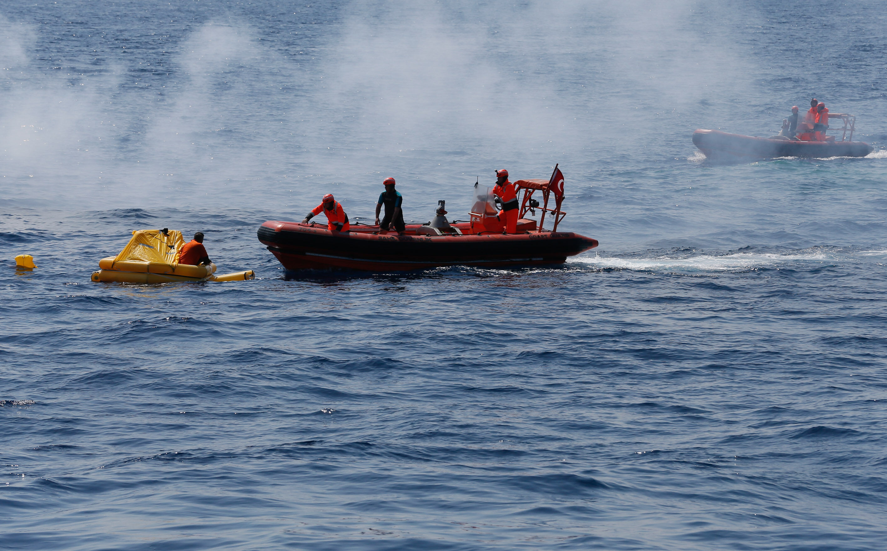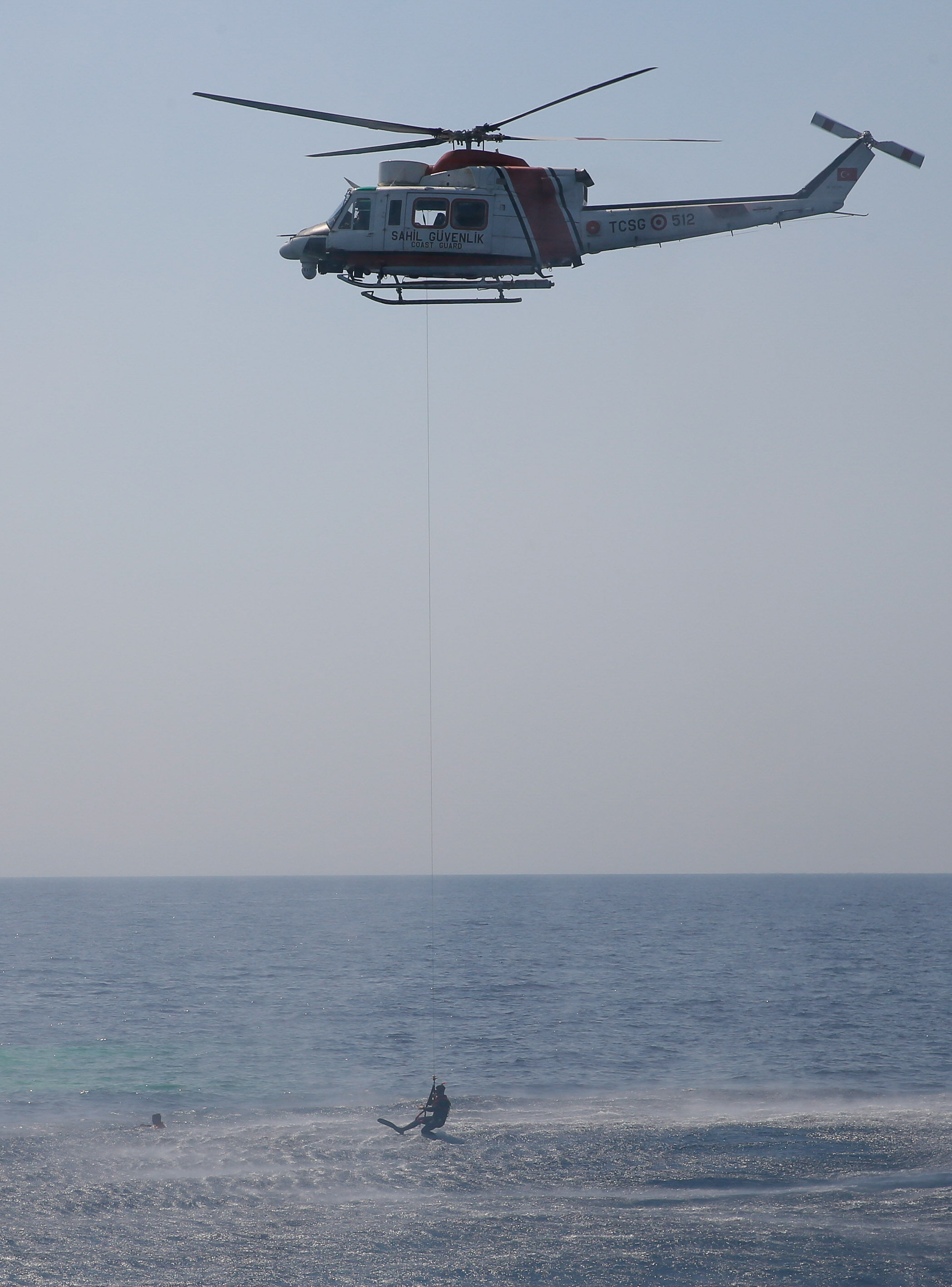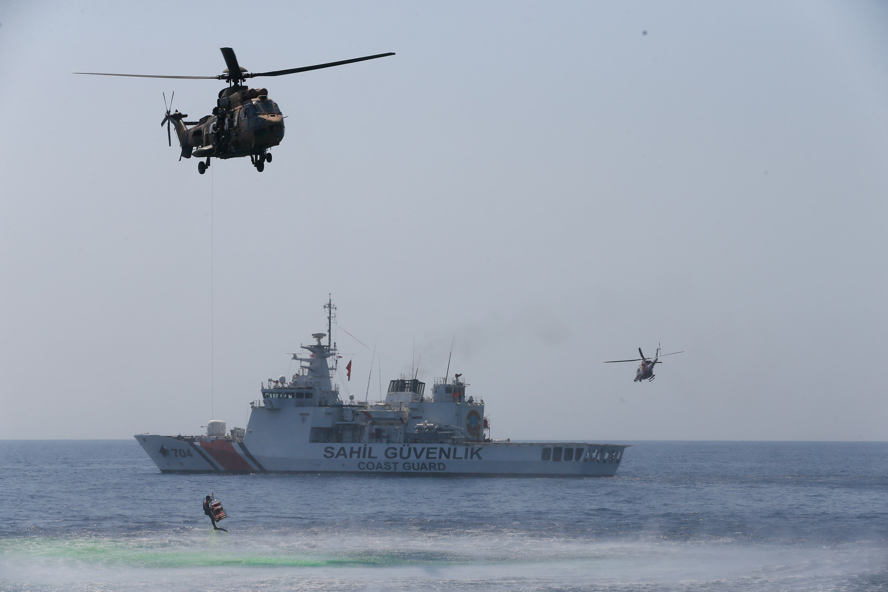 Sahil Güvenlik Komutanı Tuğamiral Bülent Olcay'ın da katılımıyla başlayan tatbikatın Sakız ve Midilli adaları arasında icra edilen safhasında, senaryo gereği batmakta ve yanmakta olan ticari gemideki kazazedeler kurtarıldı.