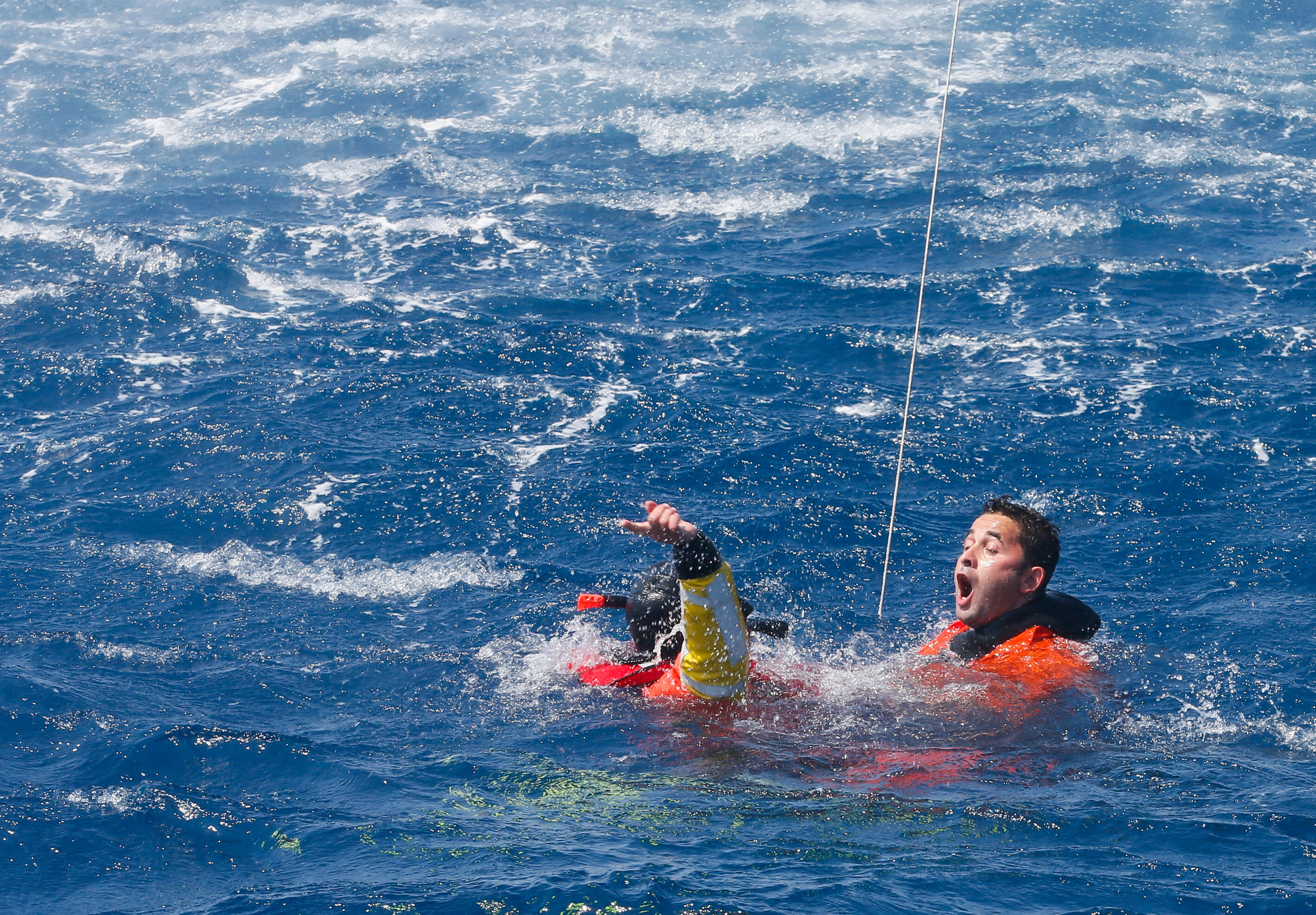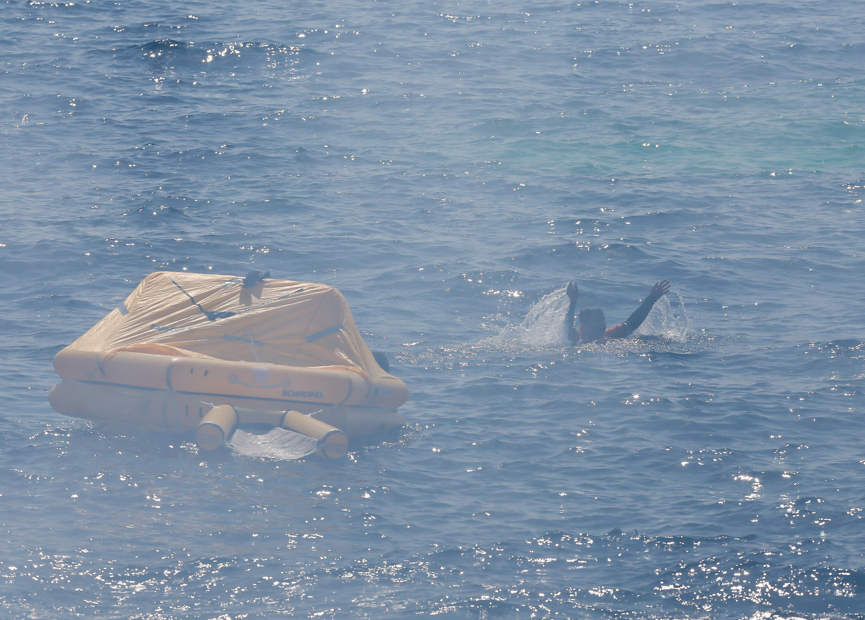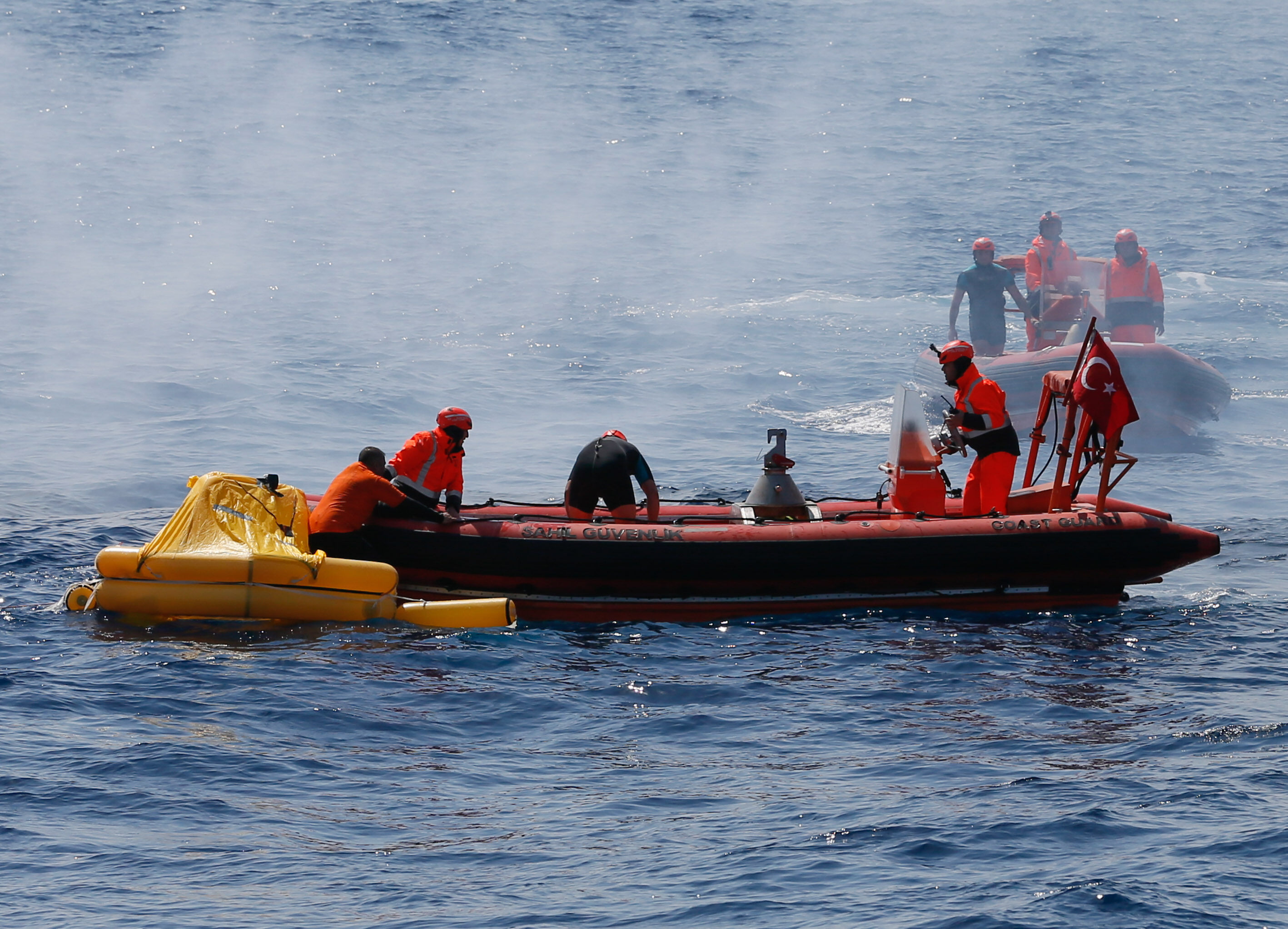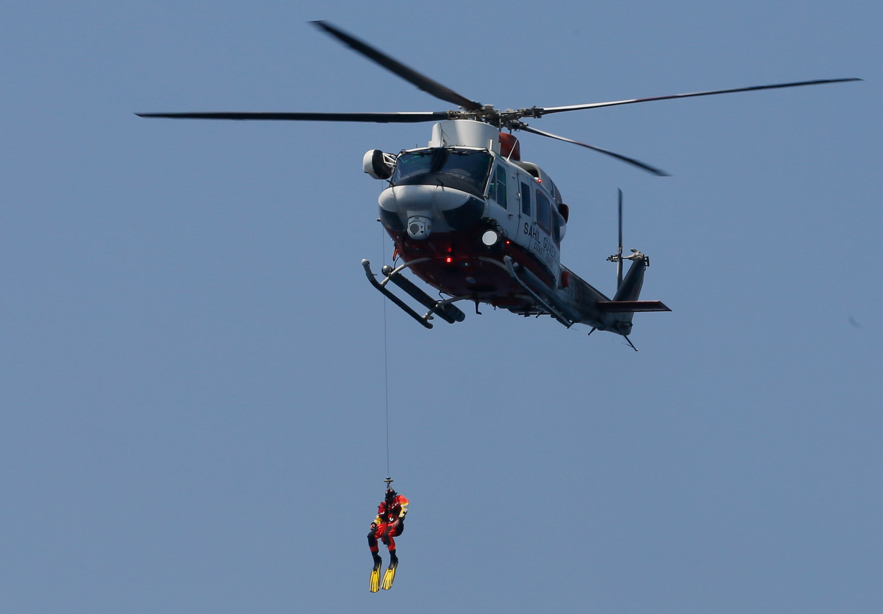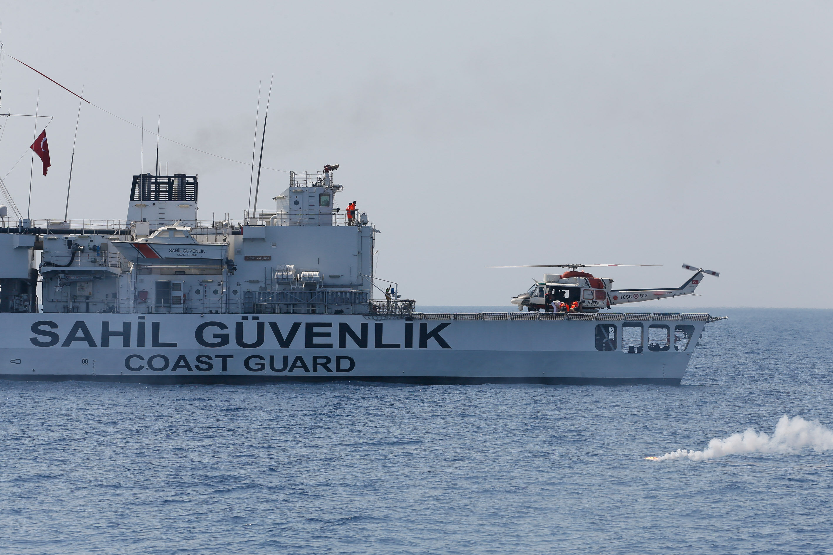 Sahil Güvenlik Komutanı Tuğamiral Bülent Olcay'ın da katılımıyla başlayan tatbikatın Sakız ve Midilli adaları arasında icra edilen safhasında, senaryo gereği batmakta ve yanmakta olan ticari gemideki kazazedeler kurtarıldı.