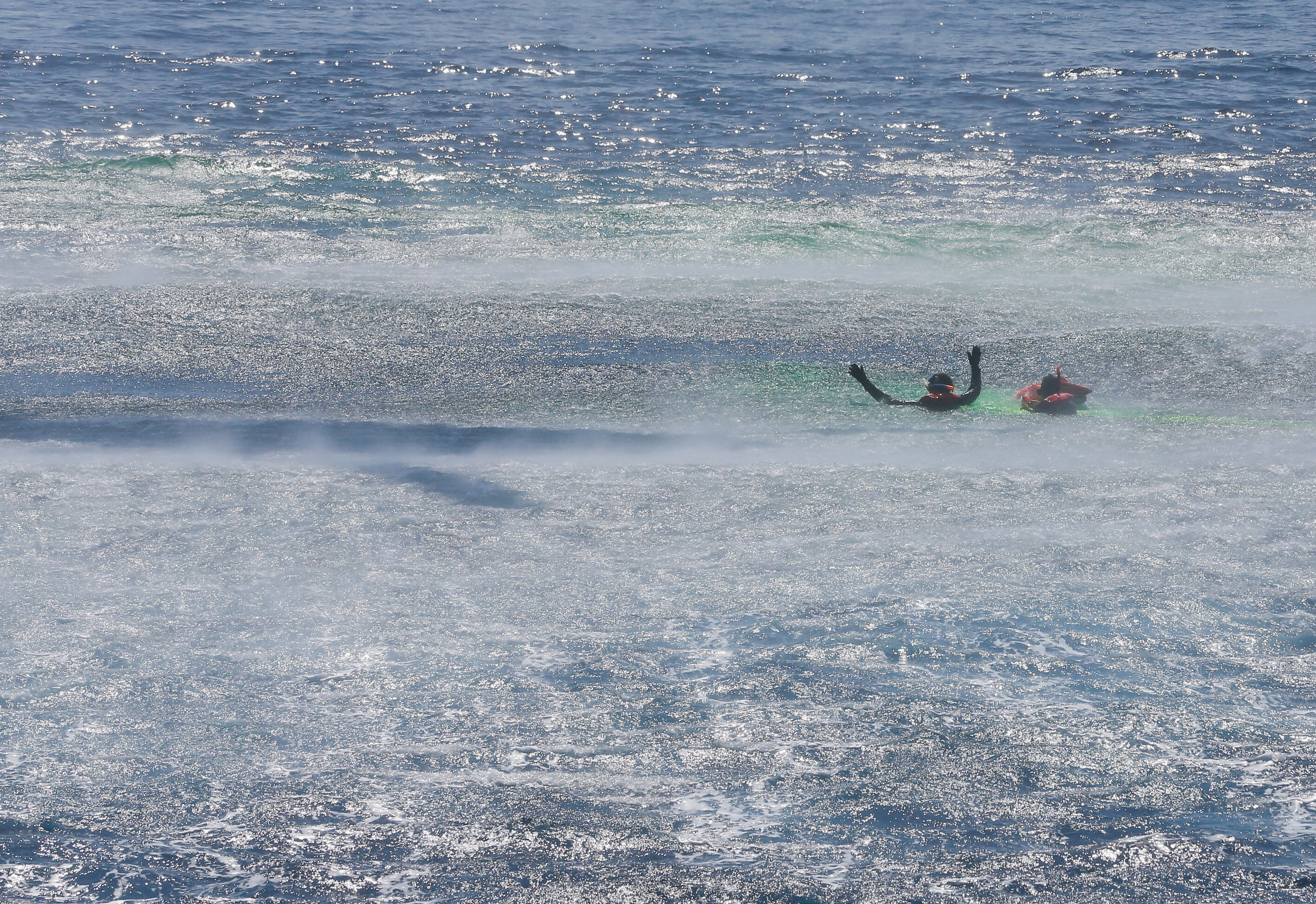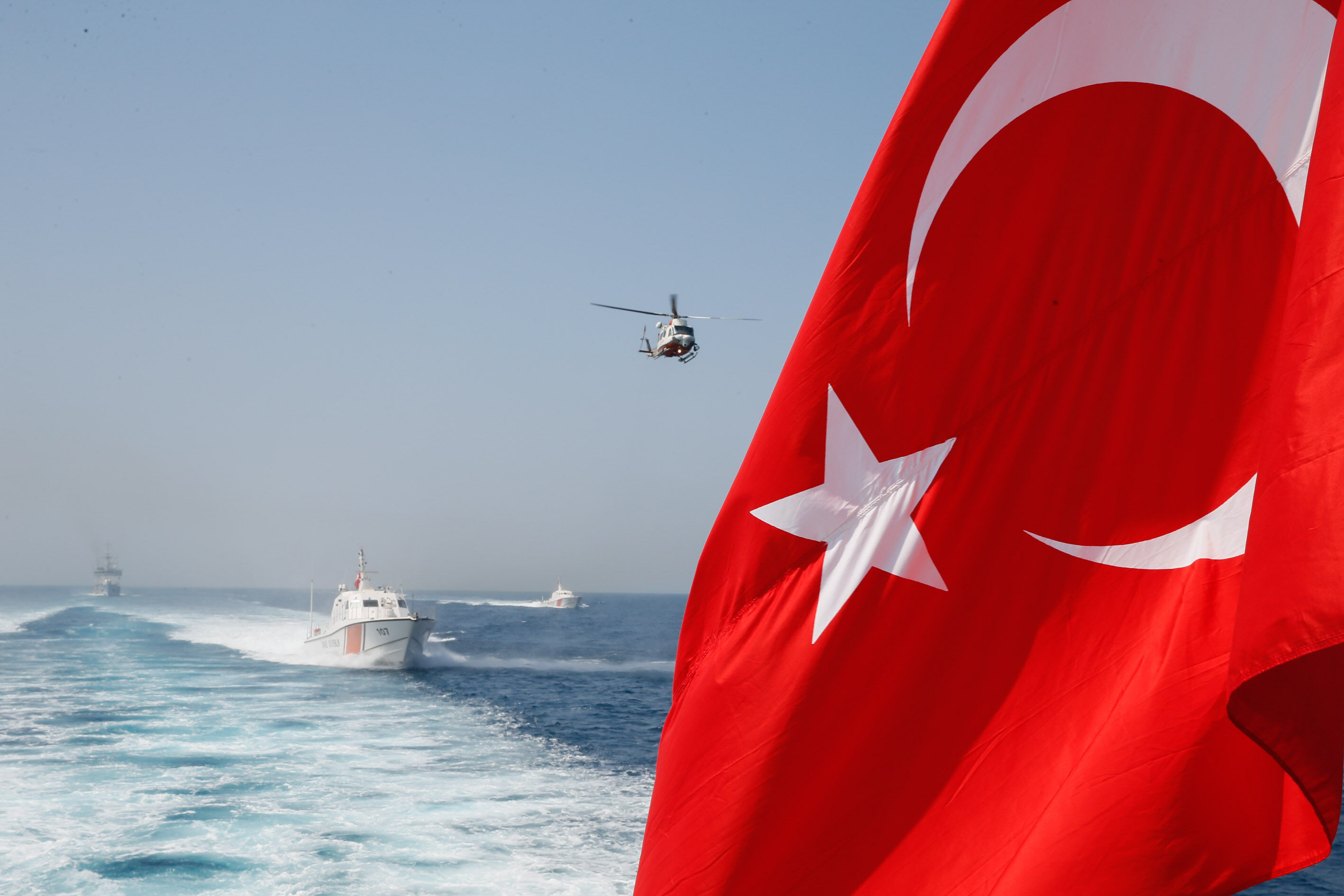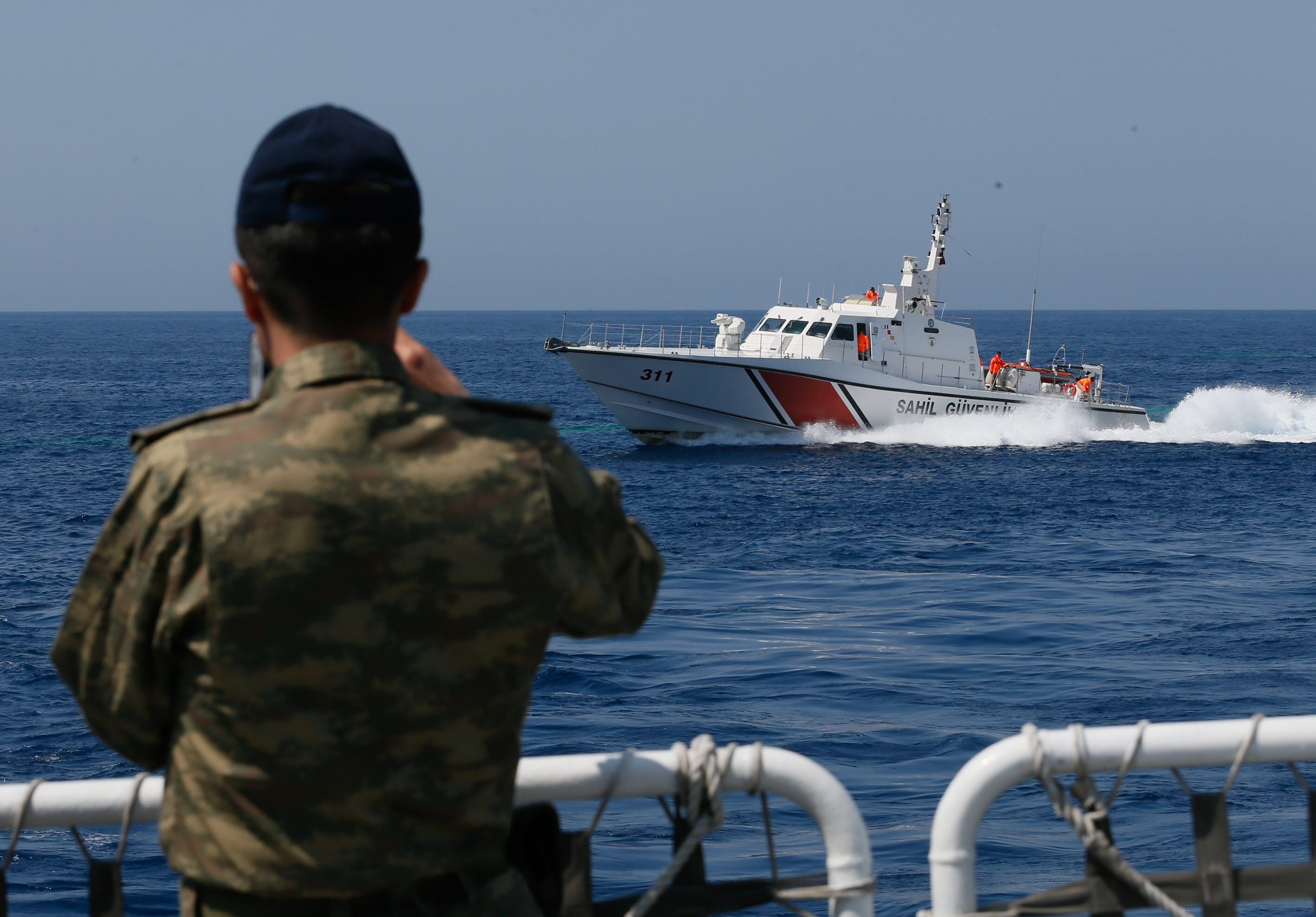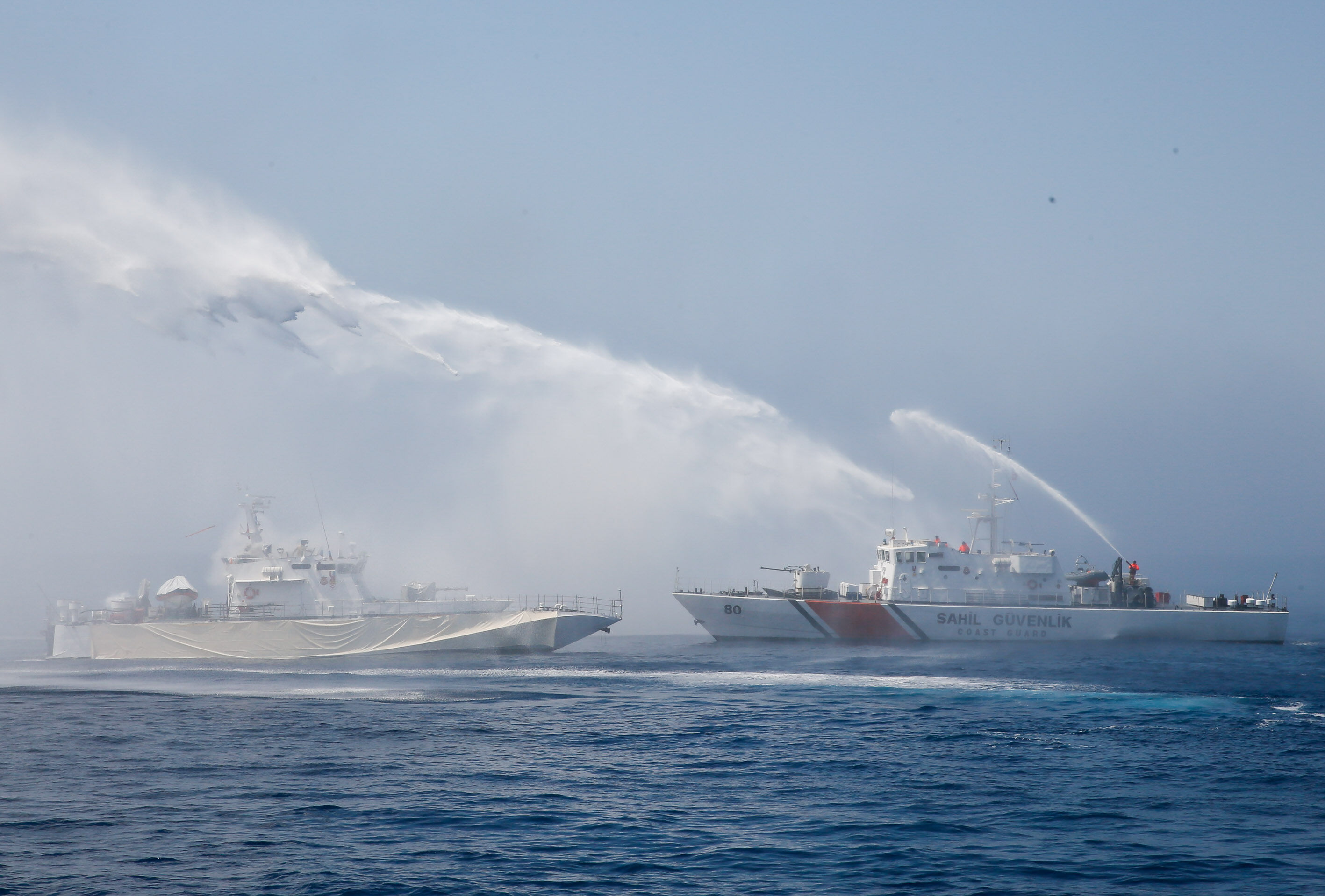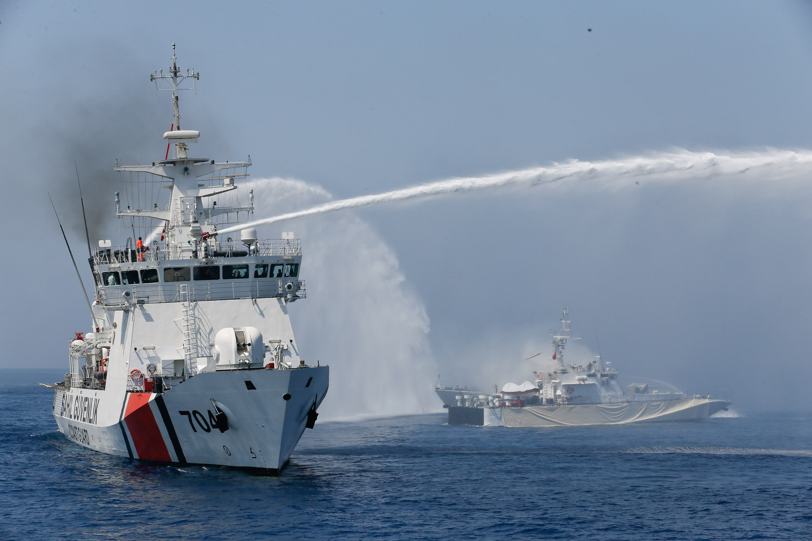 Sahil Güvenlik Komutanı Tuğamiral Bülent Olcay'ın da katılımıyla başlayan tatbikatın Sakız ve Midilli adaları arasında icra edilen safhasında, senaryo gereği batmakta ve yanmakta olan ticari gemideki kazazedeler kurtarıldı.