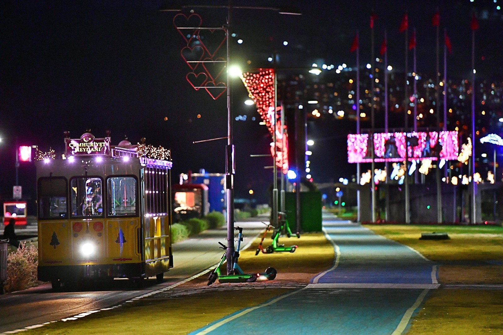 Ayrıca Birinci Kordon üzerinde çalışan Nostaljik Tramvaylar ışıklarla donatıldı.