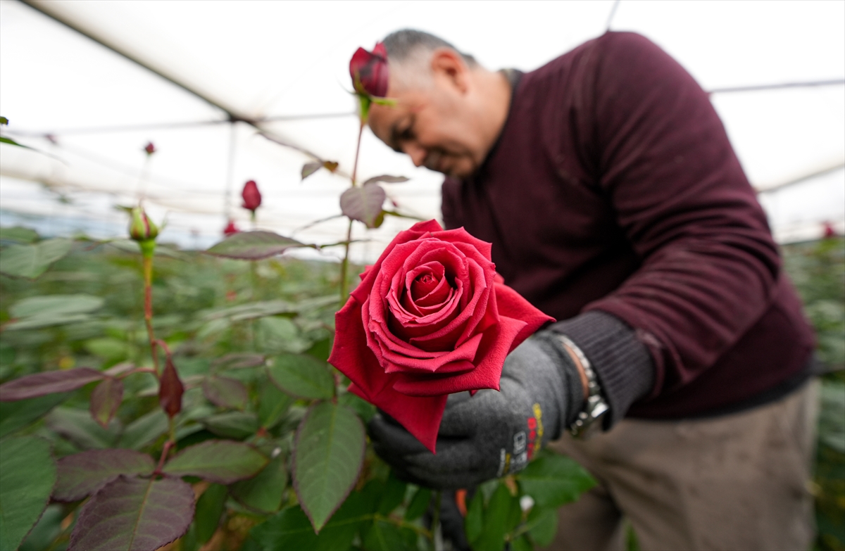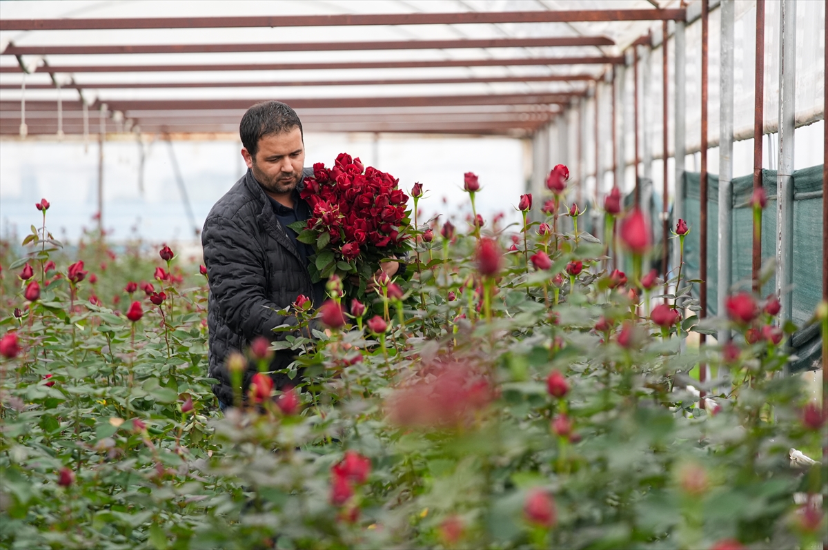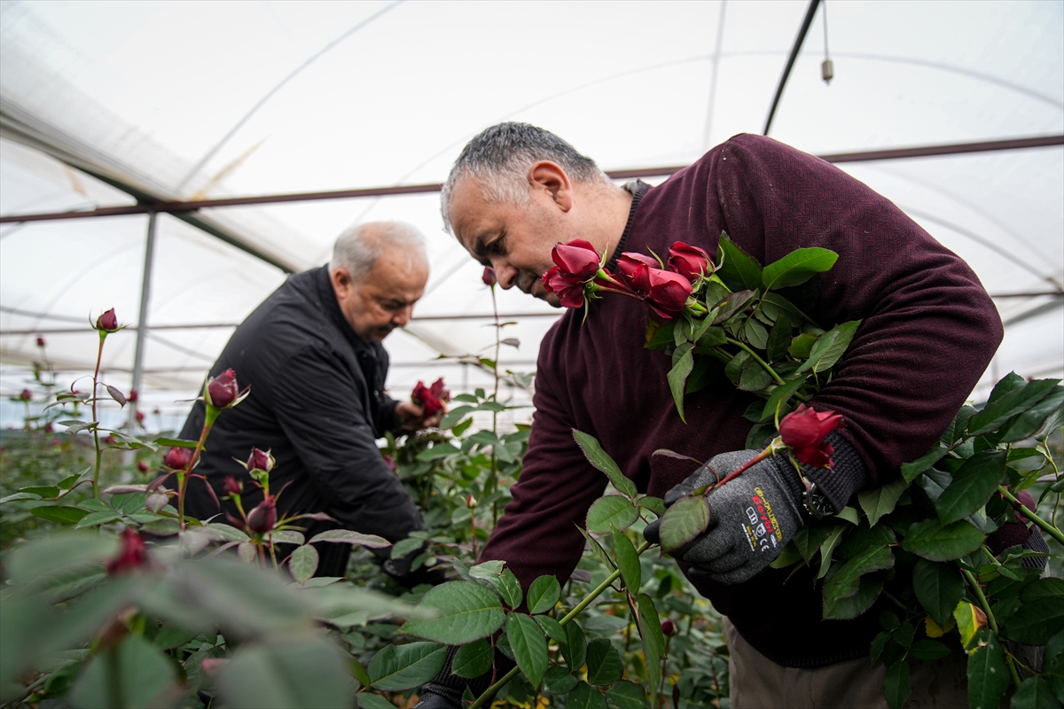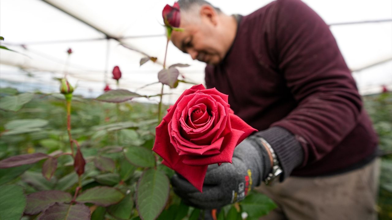 Türkiye'de kesme gül üretiminde ilk sırada yer alan İzmir'in Menderes ilçesindeki seralarda 14 Şubat Sevgililer Günü öncesinde hasat hız kazandı.