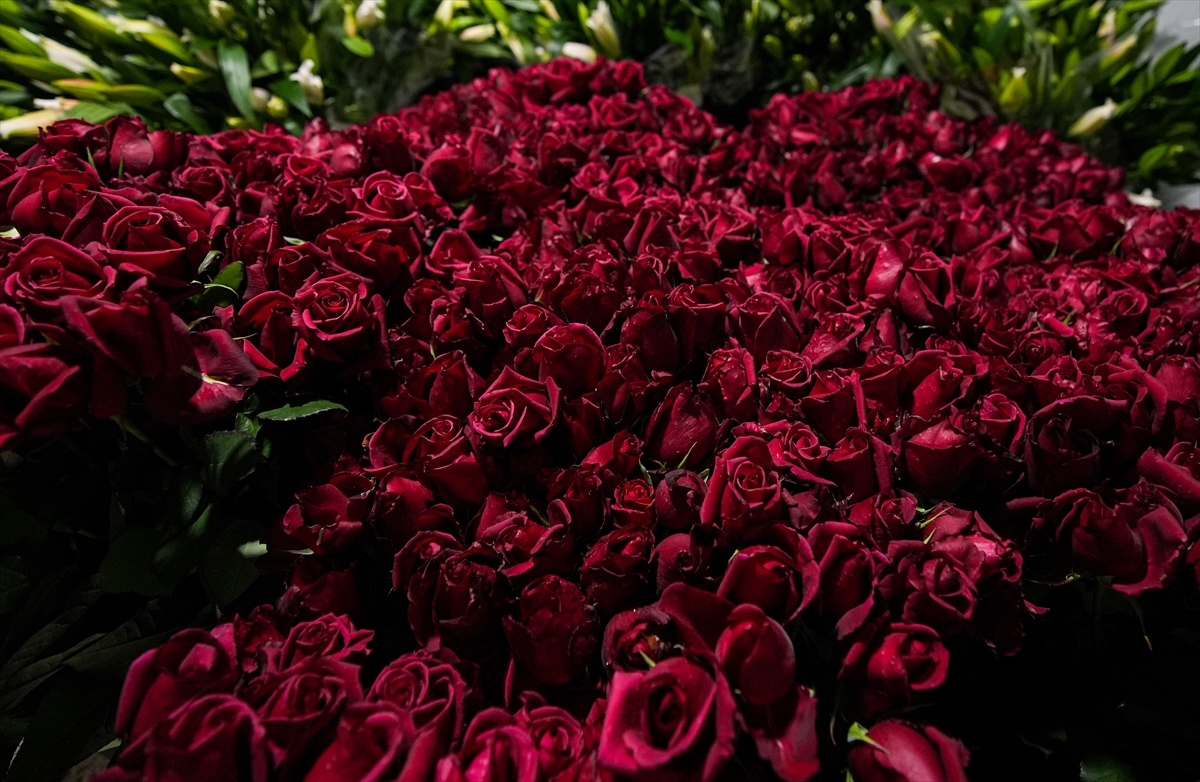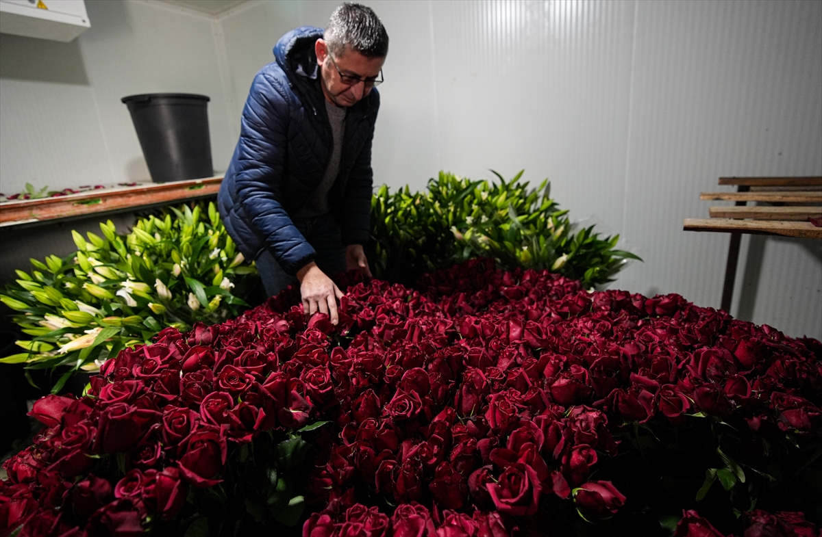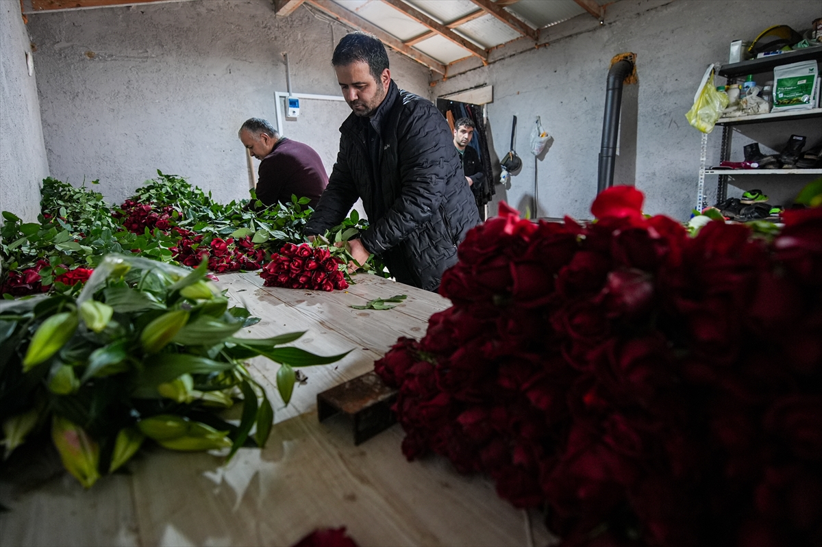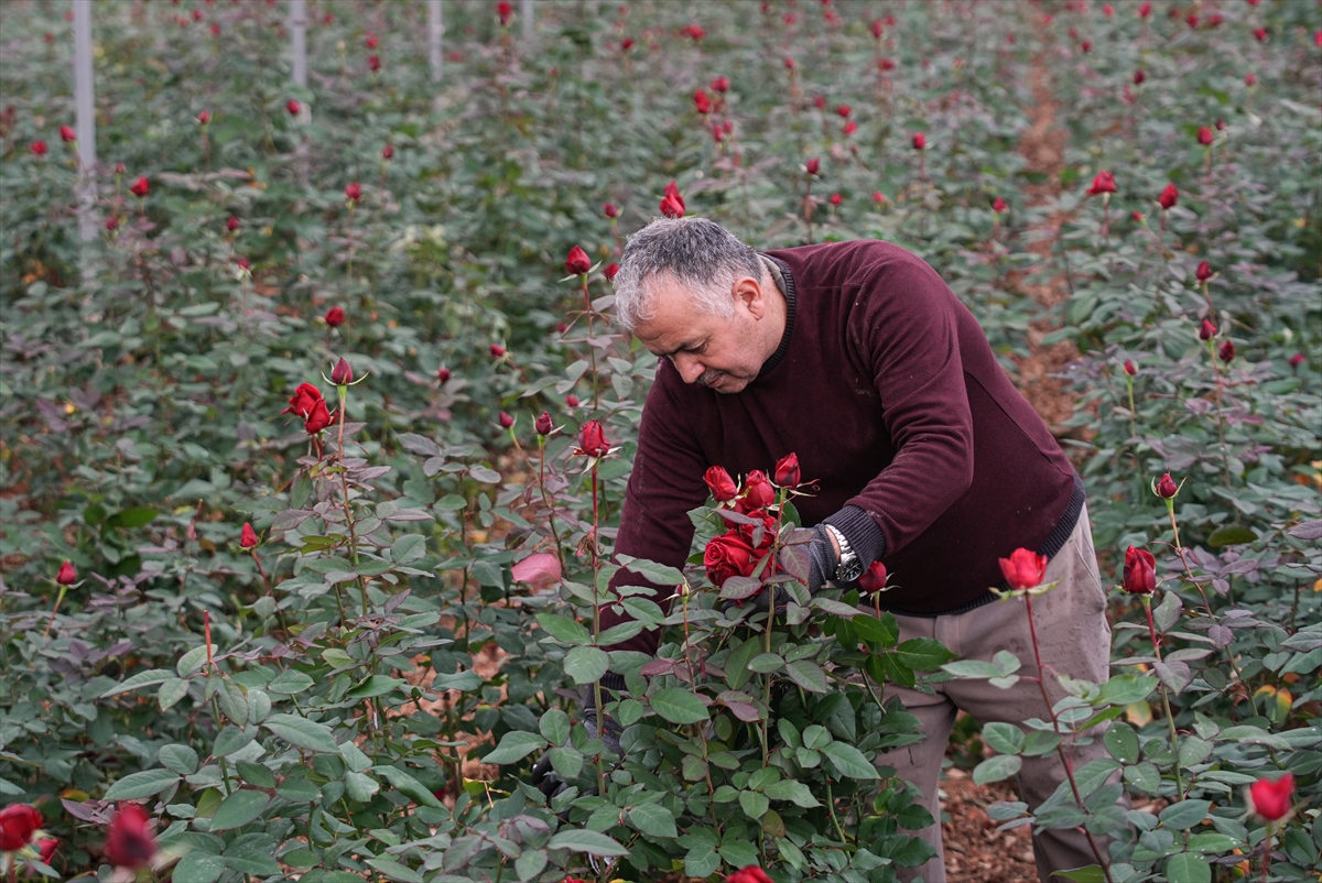 Türkiye'de kesme gül üretiminde ilk sırada yer alan İzmir'in Menderes ilçesindeki seralarda 14 Şubat Sevgililer Günü öncesinde hasat hız kazandı.