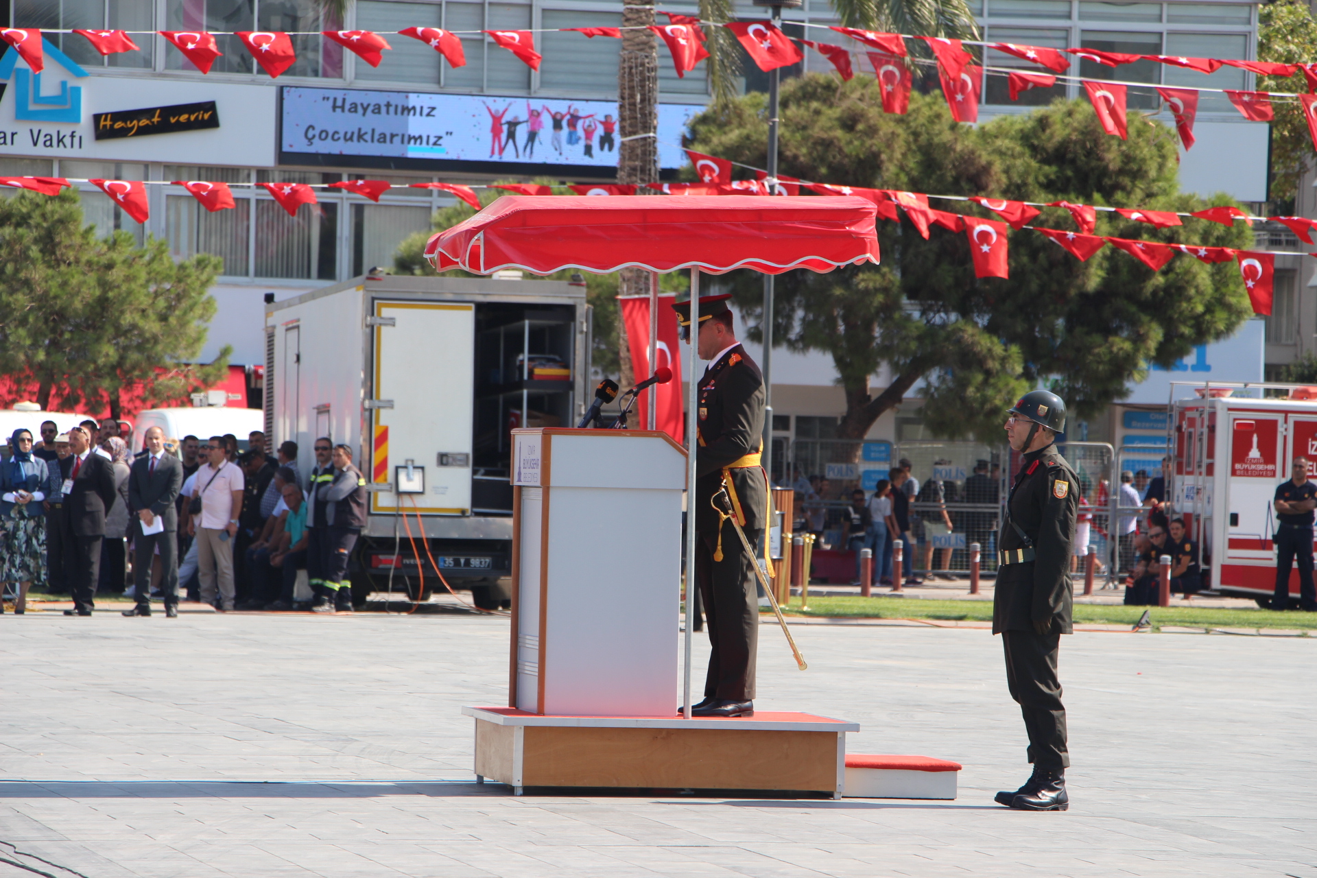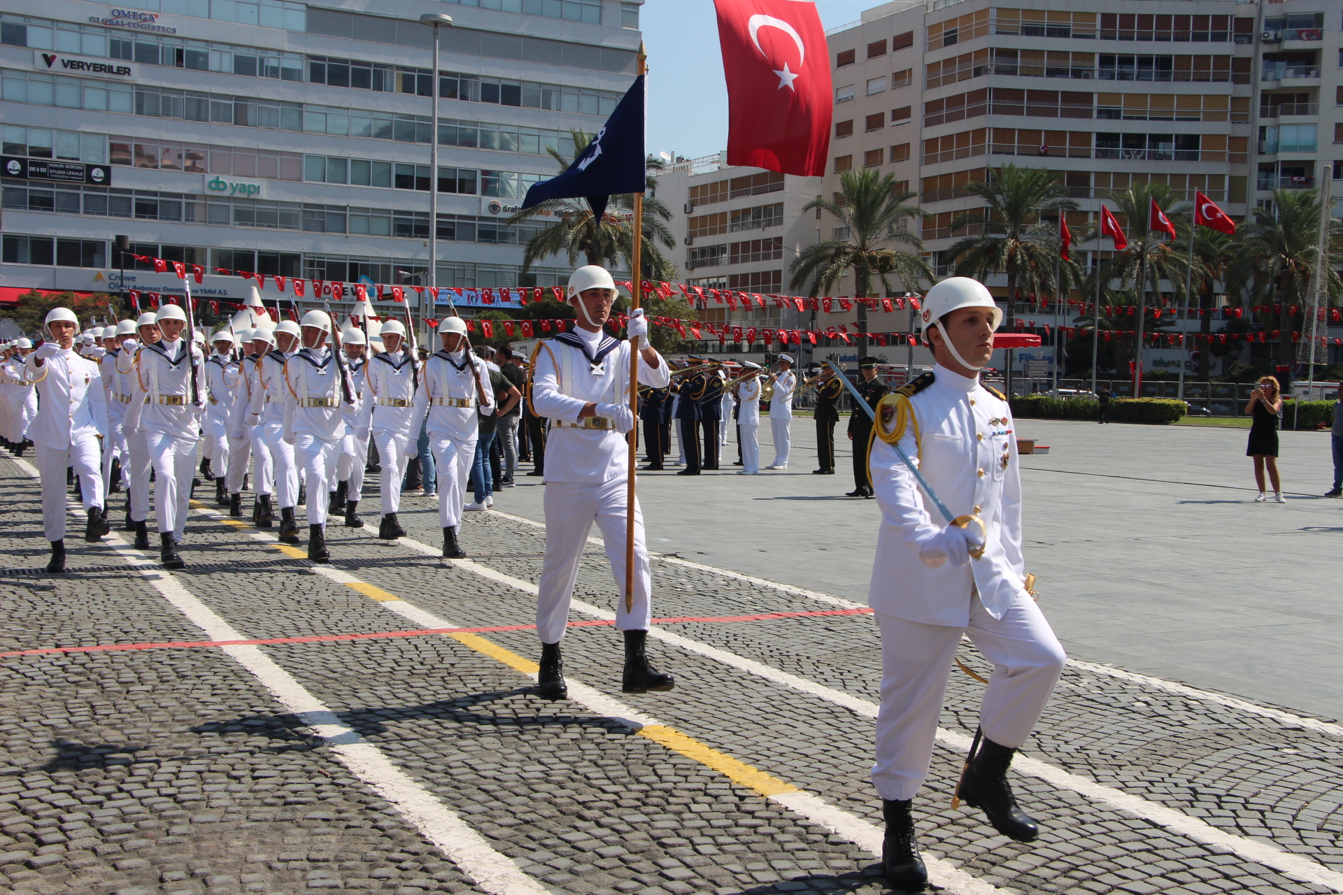 Günün anlam ve önemi için konuşmayı Topçu Yüzbaşı İsa Çoker yaptı. Yüzbaşı Çoker, “Sayın valim sayın komutanım, sayın büyükşehir belediye başkanım ve saygıdeğer İzmirliler, bugün Türk tarihinin dönüm noktası olan ve temellerini sağlamlaştıran 30 Ağustos’un gururu içindeyiz. Türk ulusu bugün eşine az rastlanır bir zafer kazanmıştır. Anadolu topraklarının Türk vatanı olduğunu düşmana ispatlamıştır. Mustafa Kemal Atatürk’ün Samsun’a çıkışıyla ilk adımı atılan Türk bağımsızlığının, kurtuluş destanın son aşaması olan 30 Ağustos, Yüce Türk Milleti’nin yokluğun hakim olduğu dönemde dahi mucizeler yarattığını tüm dünyaya göstermiştir. Aziz yurduna kast eden düşmanlara karşı elde edilen bu zaferin her safhası tek tek düşünülmüştür. Bu zafer yok edilmek istenen milletimizin tüm fertleriyle birlikte sarsılmaz azim mücadelesinin göstergesidir. Vatan sevgisinin yıkılmaz iradesini ortaya koyan bu zaferle sadece düşman mağlup edilmemiş cumhuriyetimizin temelleri atılmıştır. Canları pahasına bağımsız yaşamamızı sağlayan büyük kahramanlara karşı en büyük sorumluluğumuz milletimizin birlik ve bütünlüğünü sağlamaktır. Gücünü Türk Milleti’nden alan Türk Silahlı Kuvvetleri (TSK) her türlü tehdidi ortadan kaldırma azim ve kararlılığı içindedir. Bize bu zaferi bize kazandıran başta Mustafa Kemal Atatürk olmak üzere hayatını feda eden tüm aziz şehitlerimize, kahraman gazilerimize şükranlarımızı sunarız. Zafer bayramının 96’ncı yıl dönümü kutlu olsun” açıklamasında bulundu.