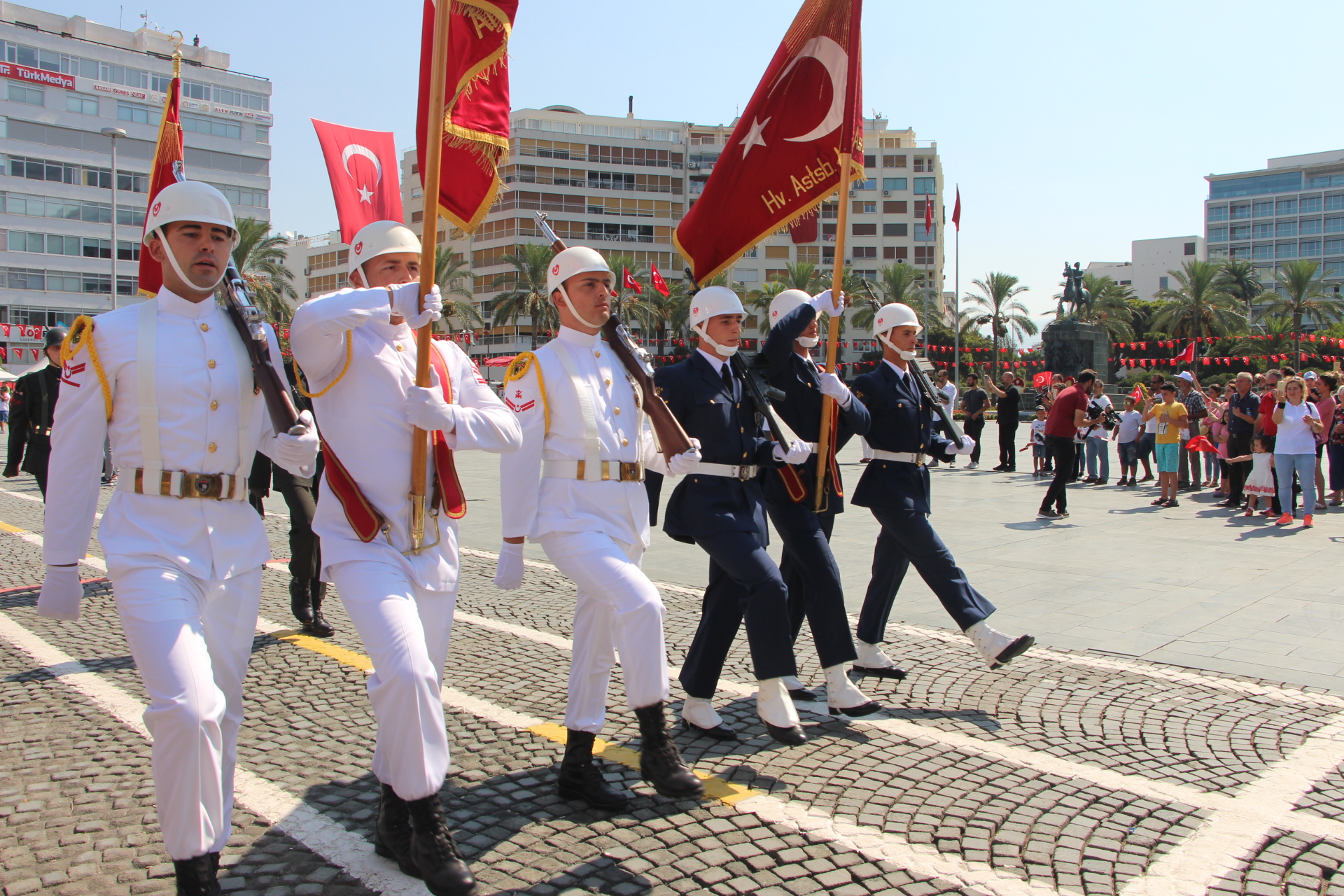 30 Ağustos Zafer Bayramı her yıl olduğu gibi yine Cumhuriyet Meydanı’nda büyük bir coşkuyla kutlandı. Törene Vali Ayyıldız, Ege Ordusu ve Garnizon Komutanı Recep, Büyükşehir Belediye Başkanı Kocaoğlu, siyasi parti temsilcileri, milletvekilleri ve binlerce İzmirli katıldı.