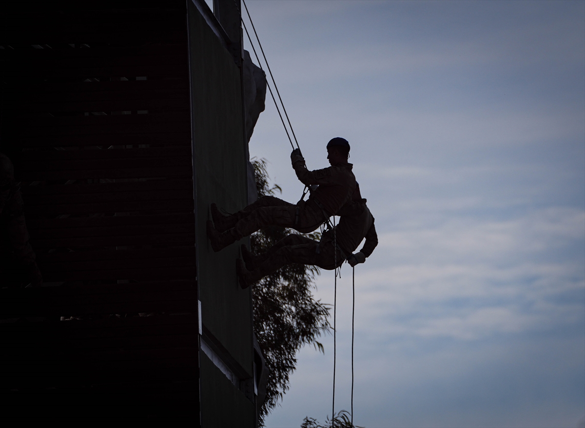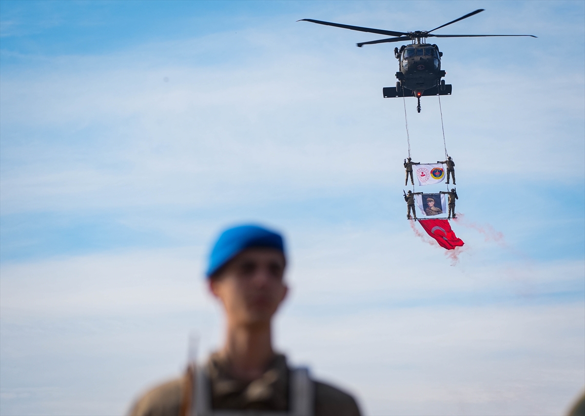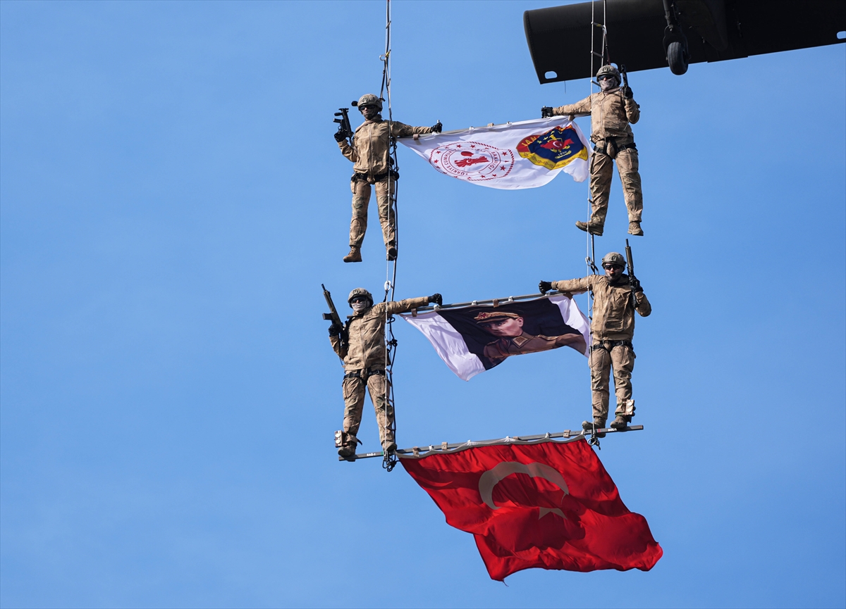 Törende komutanlıktaki öğretmen ve kursiyerler, silahlı hareketler, perde kule inişi ve helikopter gösterisi sundu. Türk bayrağı açan komandolar, izleyicilerden alkış aldı.
