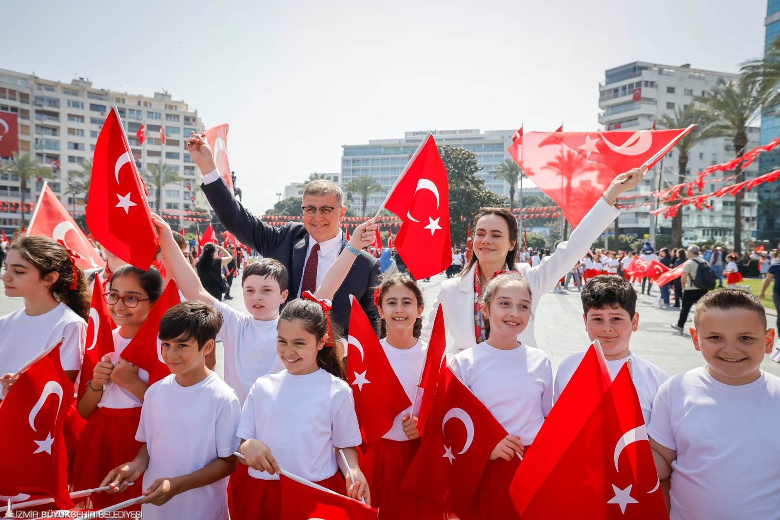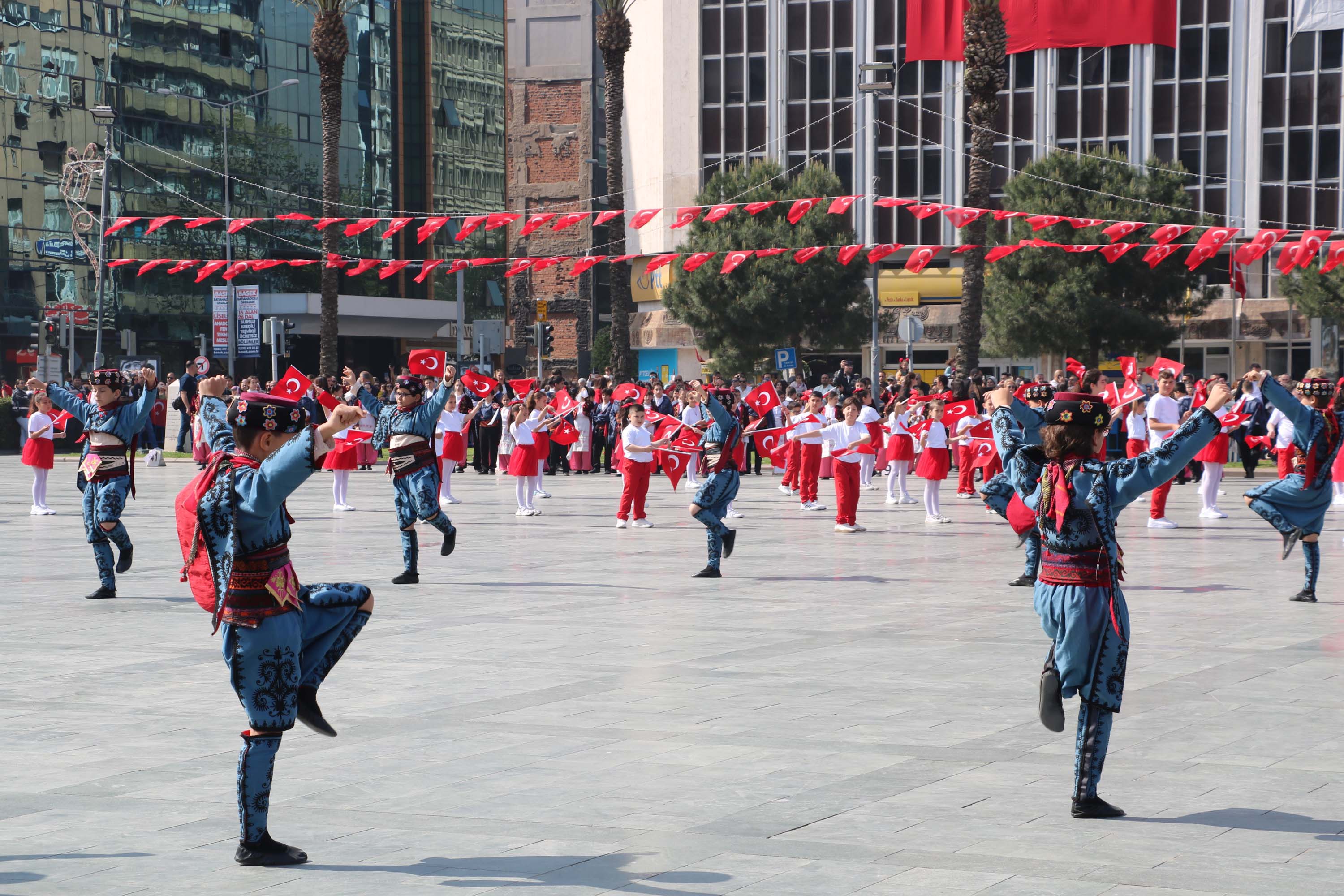 23 Nisan Ulusal Egemenlik ve Çocuk Bayramı İzmir'in Konak ilçesindeki Cumhuriyet Meydanı'nda düzenlenen etkinliklerle kutlandı.