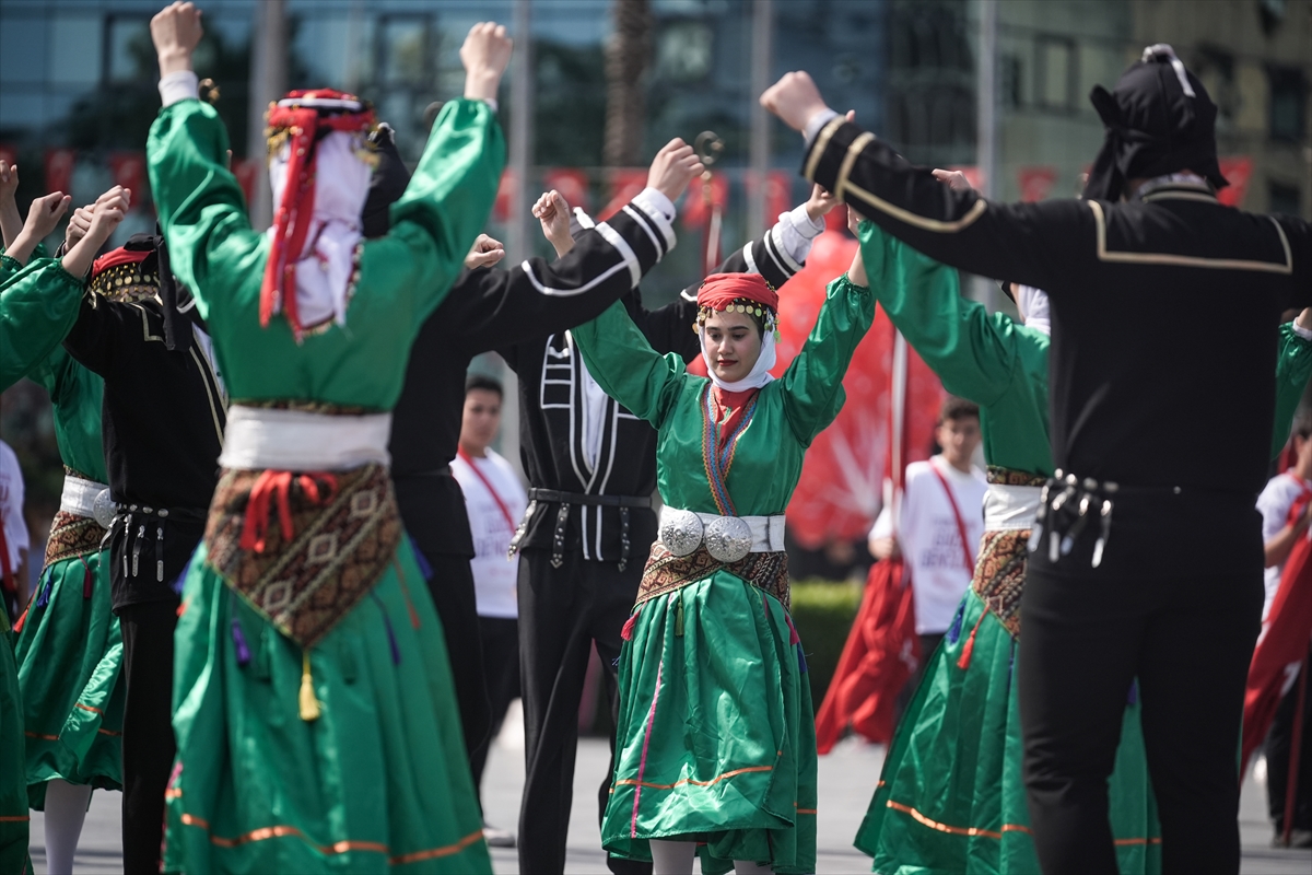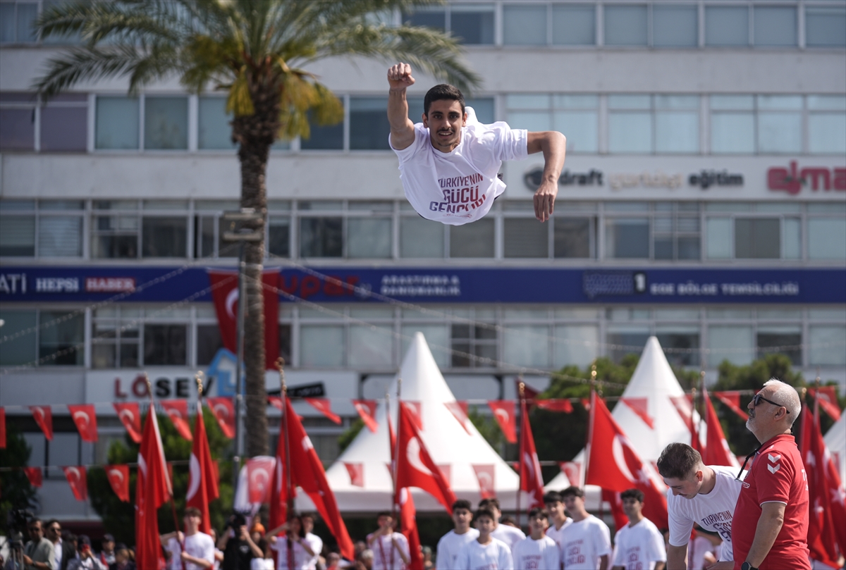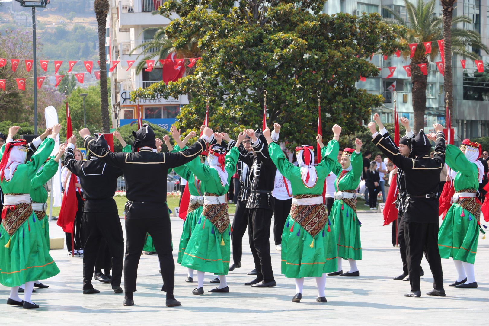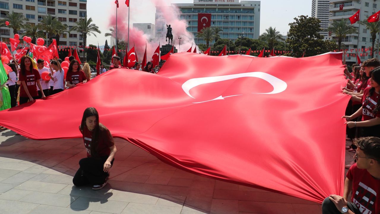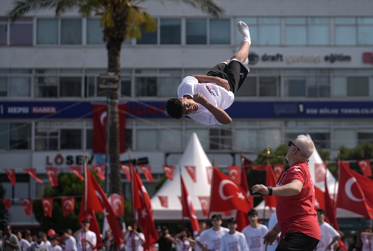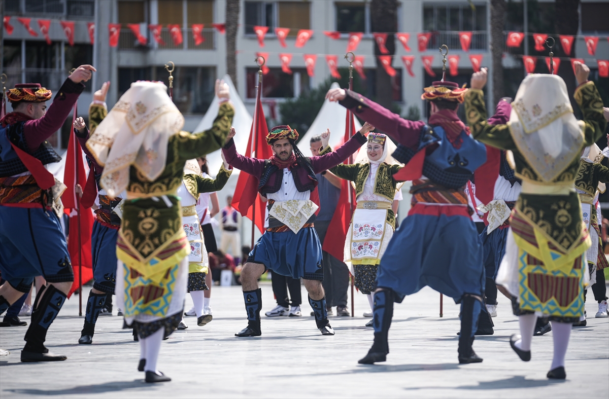 Konuşmaların ardından Gençlik ve Spor Bakanı Osman Aşkın Bak'ın mesajı ve şiirler okundu ve Atatürk'ün Gençliğe Hitabesi seslendirildi. 'Gençliğin Ata'ya Cevabı'nın Atatürk ve bayrak posteri gösterisi ile okunmasının ardından Gençlik ve Spor İl Müdürlüğü, Dokuz Eylül Üniversitesi, İzmir Yüksek Teknoloji Üniversitesi tarafından hazırlanan halk oyunları ve spor gösterileri sunuldu. Meydandaki gösterileri izleyenler, ellerinde Türk bayraklarıyla bayram coşkusuna ortak oldu. Dev Türk bayrağı ile Atatürk posteri açılmasının ardından tören sona erdi. (DHA)