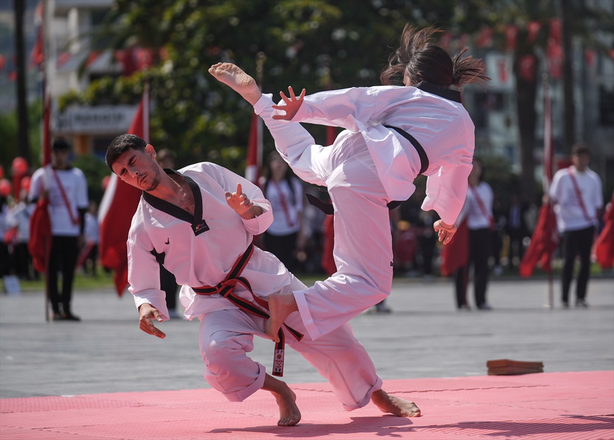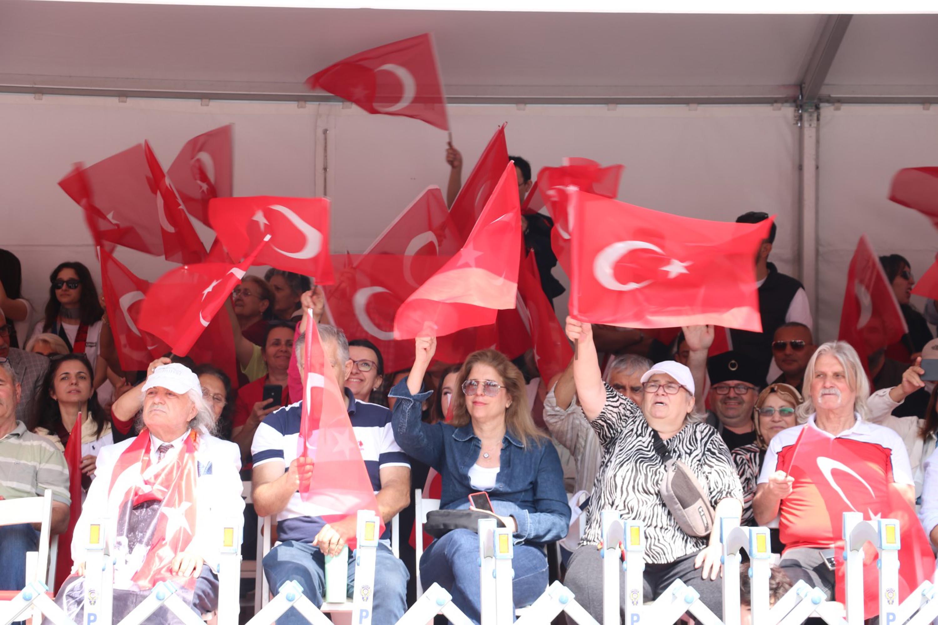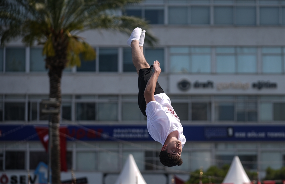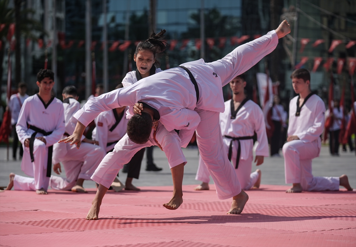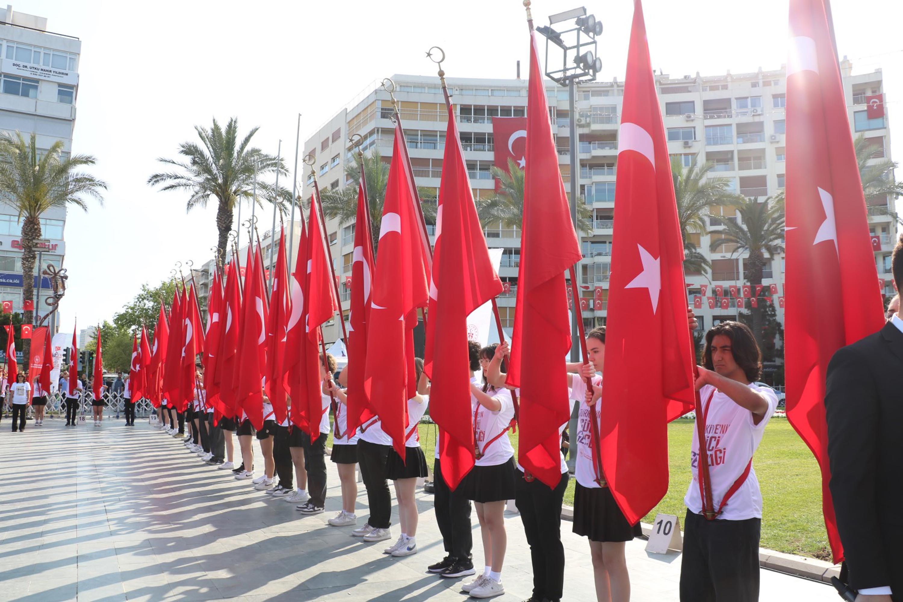 Konuşmaların ardından Gençlik ve Spor Bakanı Osman Aşkın Bak'ın mesajı ve şiirler okundu ve Atatürk'ün Gençliğe Hitabesi seslendirildi. 'Gençliğin Ata'ya Cevabı'nın Atatürk ve bayrak posteri gösterisi ile okunmasının ardından Gençlik ve Spor İl Müdürlüğü, Dokuz Eylül Üniversitesi, İzmir Yüksek Teknoloji Üniversitesi tarafından hazırlanan halk oyunları ve spor gösterileri sunuldu. Meydandaki gösterileri izleyenler, ellerinde Türk bayraklarıyla bayram coşkusuna ortak oldu. Dev Türk bayrağı ile Atatürk posteri açılmasının ardından tören sona erdi. (DHA)