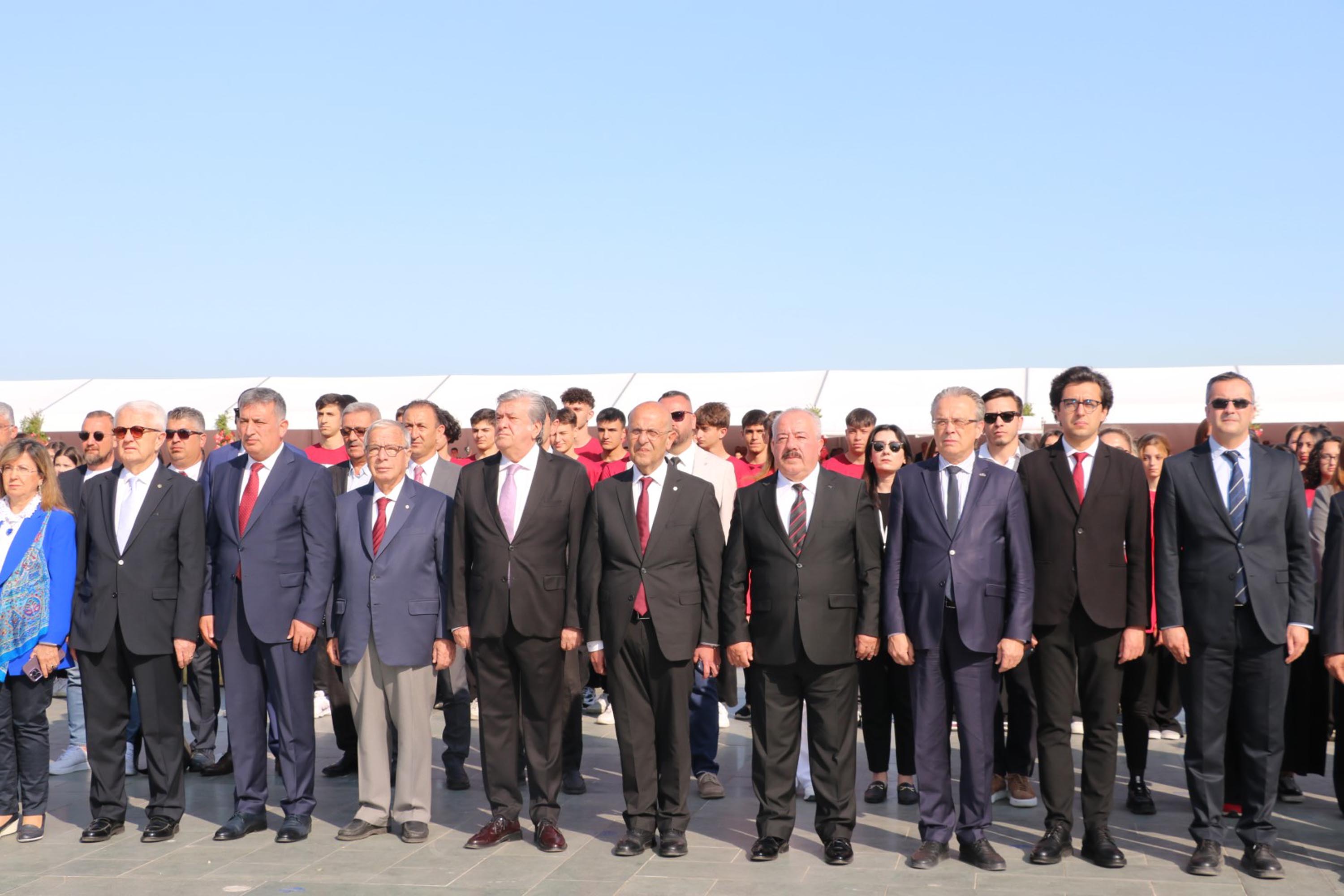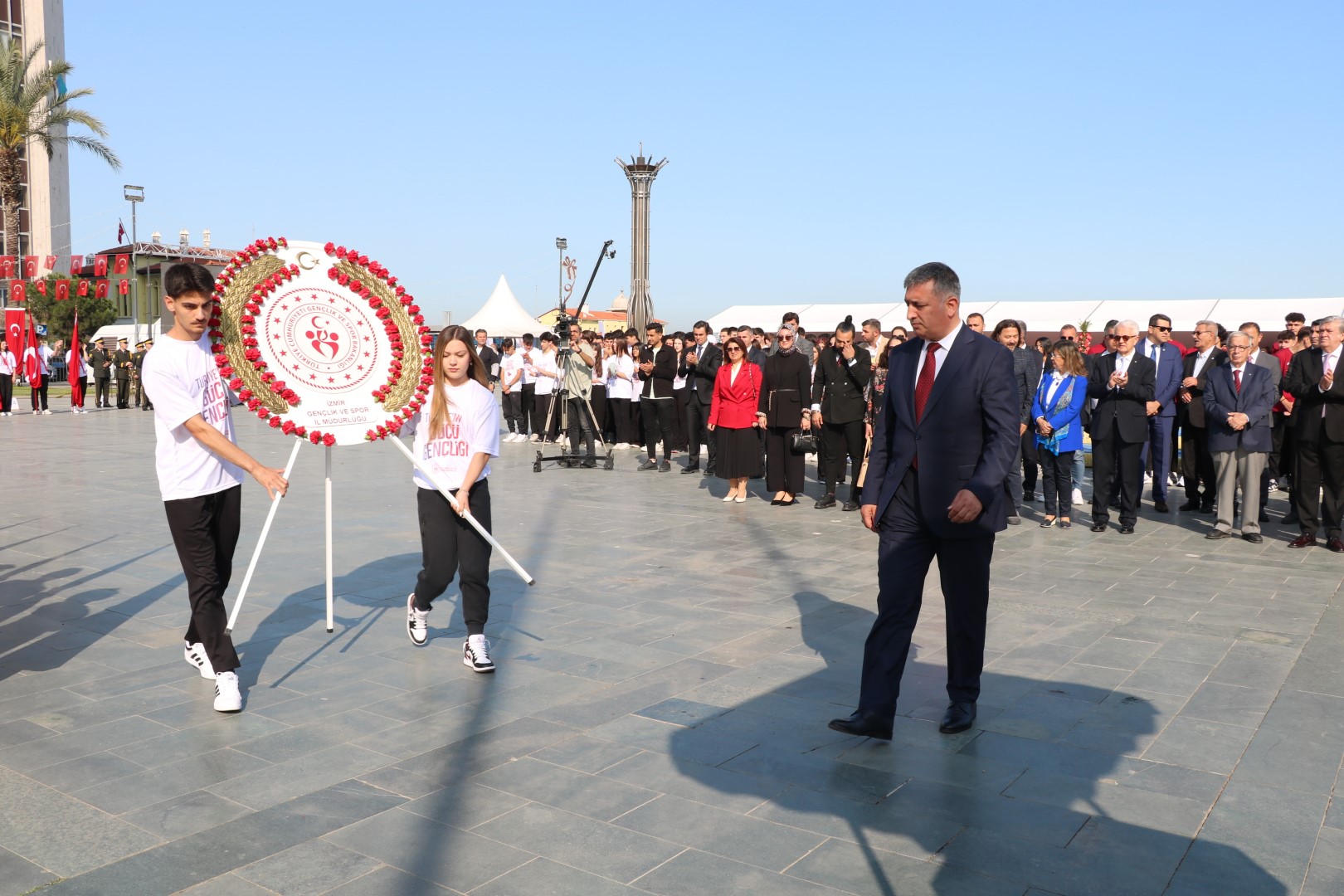 19 Mayıs Atatürk'ü Anma, Gençlik ve Spor Bayramı kapsamında Cumhuriyet Meydanı'nda resmi tören düzenlendi. Törene, İzmir Valisi Süleyman Elban, Gençlik ve Spor İl Müdürü Murat Eskici, İzmir Büyükşehir Belediye Başkanı Cemil Tugay, Ege Ordusu ve Garnizon Komutanı Orgeneral İrfan Özsert, AK Parti İzmir Milletvekili Ceyda Bölünmez Çankırı, AK Parti Genel Sekreteri ve İzmir Milletvekili Eyyüp Kadir İnan, siyasi partilerin il ve ilçe başkanları, belediye başkanları ve sivil toplum kuruluşlarının temsilcileri, öğrenci ve öğretmenler ile çok sayıda kişi katıldı. Bando eşliğinde saygı duruşunda bulunulmasının ardından İstiklal Marşı okundu.
