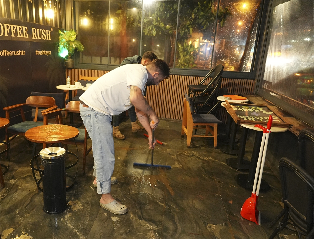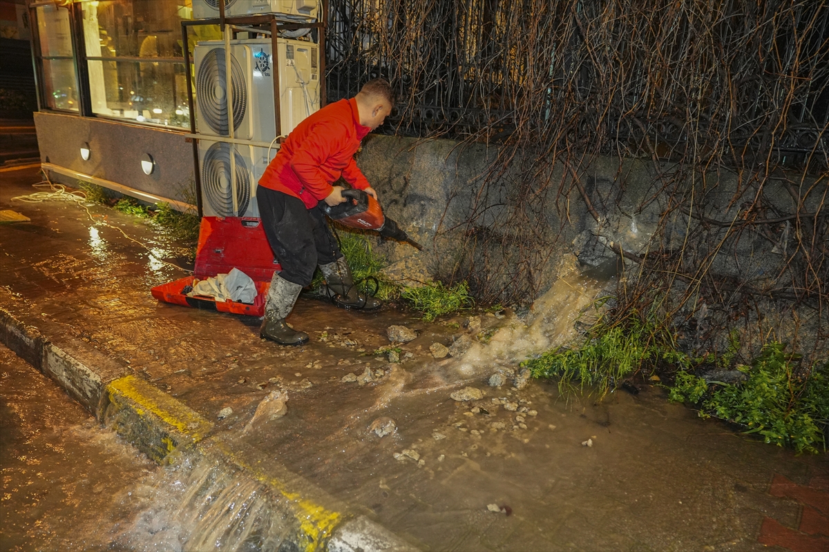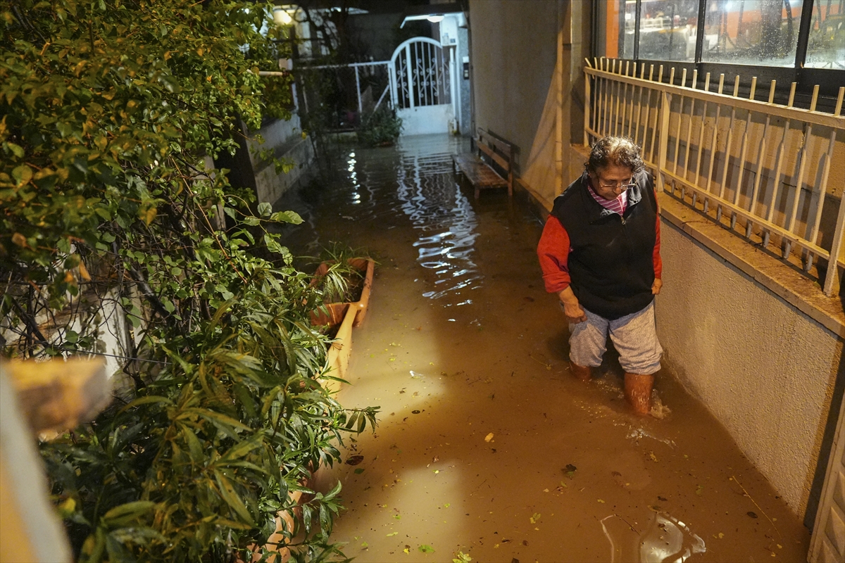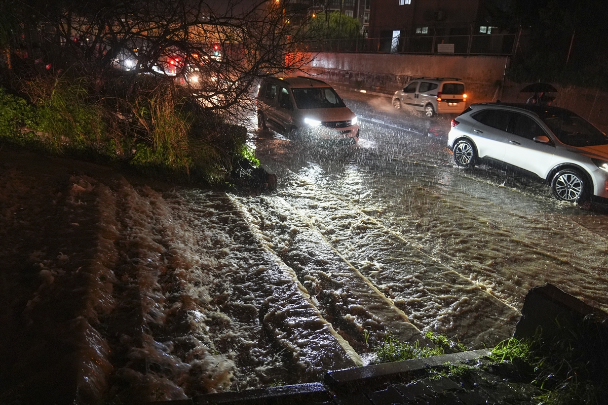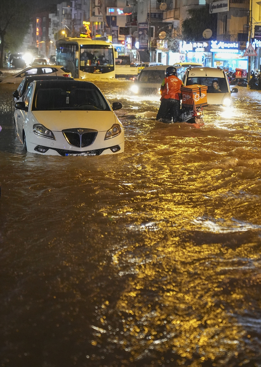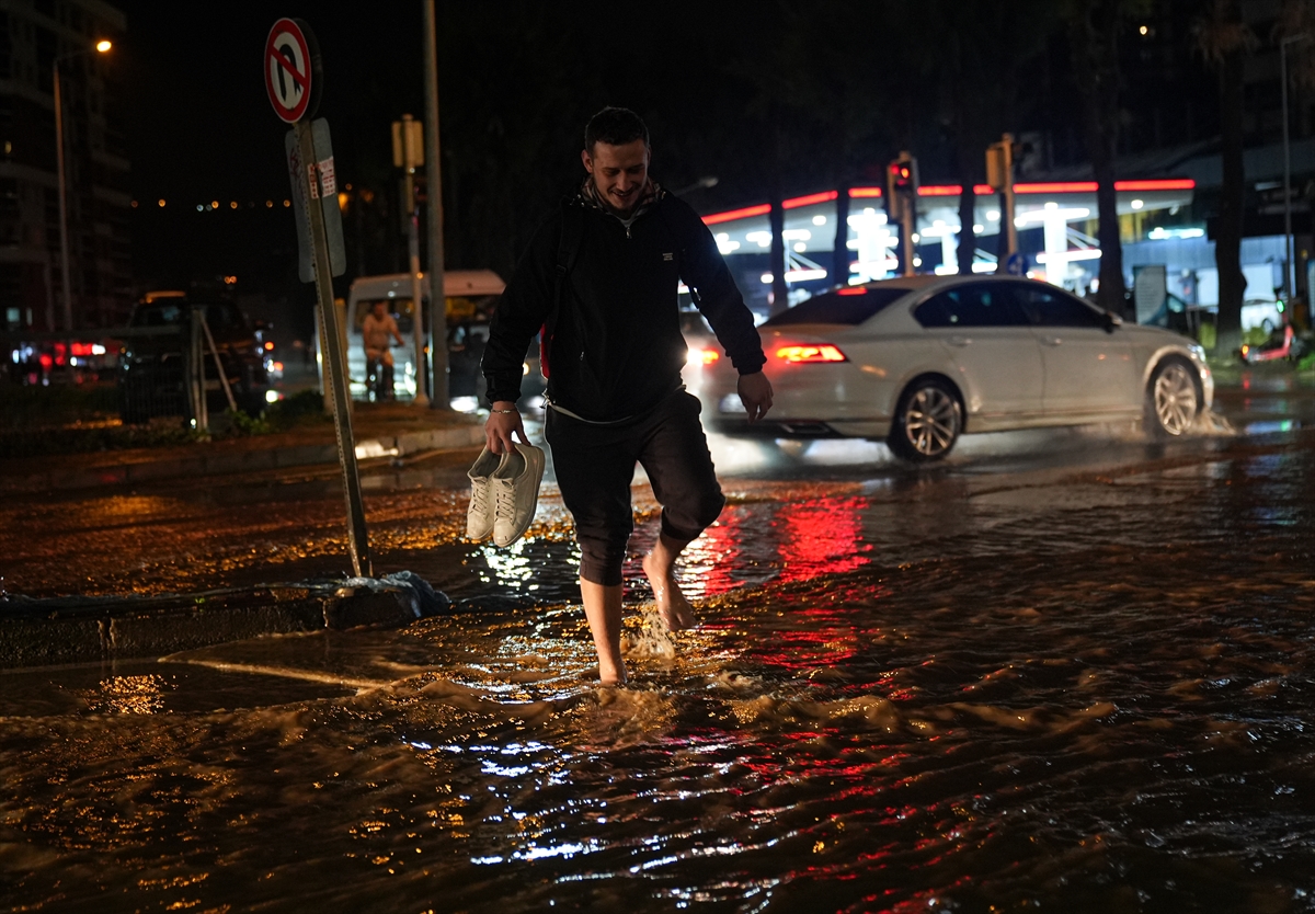 İzmir'in merkez ilçelerinde etkili olan kuvvetli sağanak ve fırtına yaşamı olumsuz etkiledi.