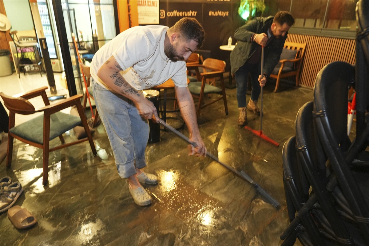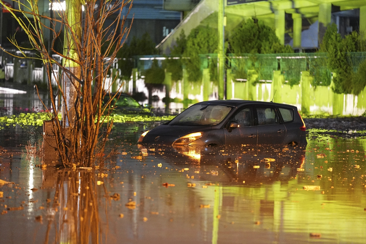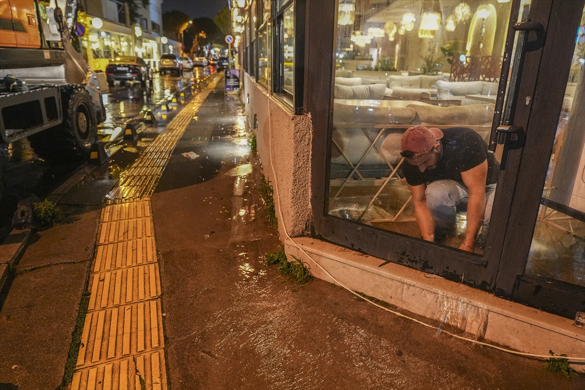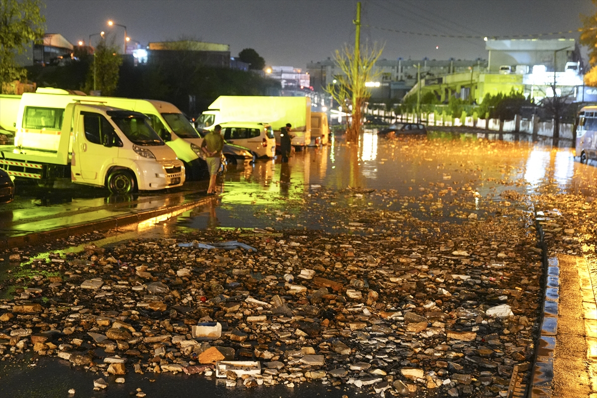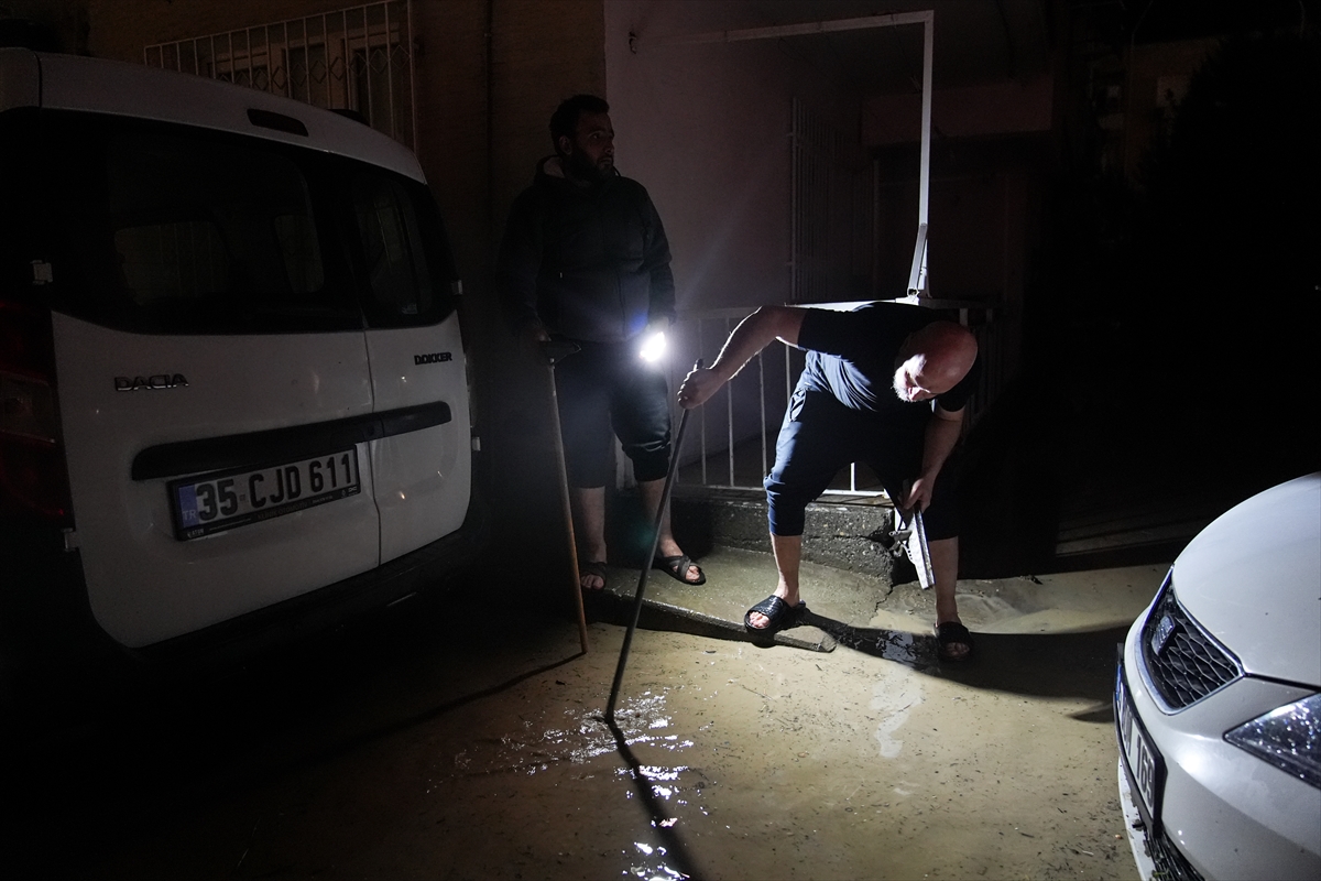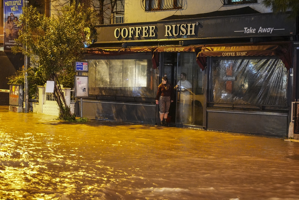 İzmir'in merkez ilçelerinde etkili olan kuvvetli sağanak ve fırtına yaşamı olumsuz etkiledi.