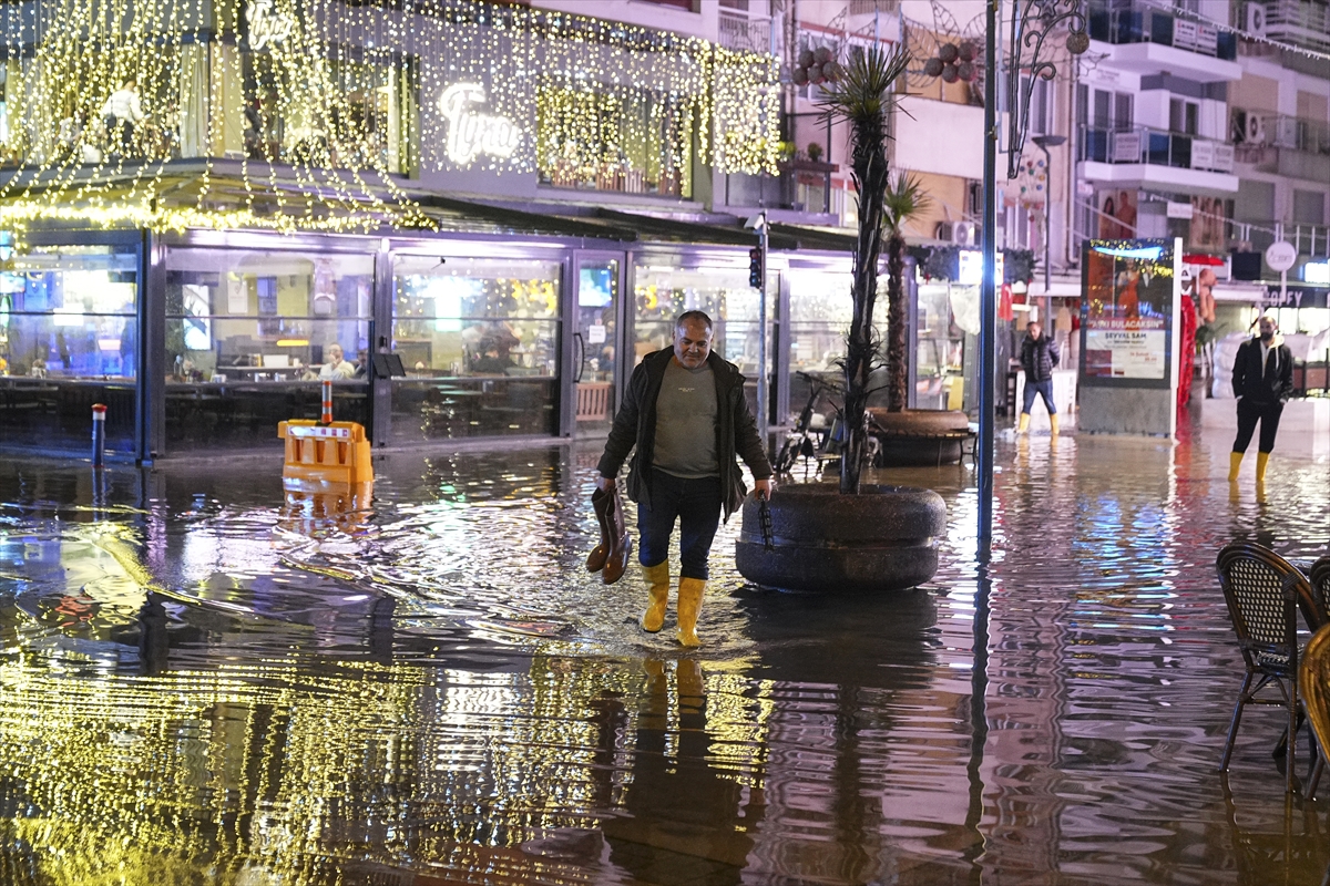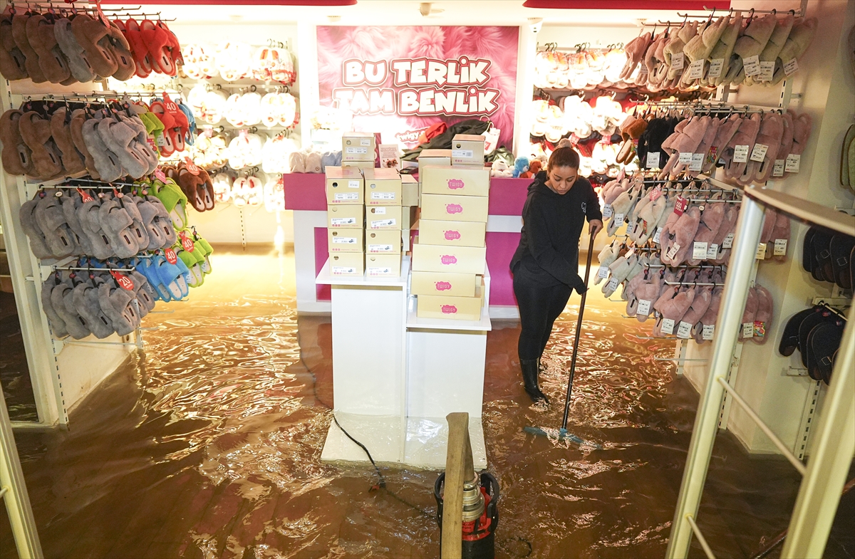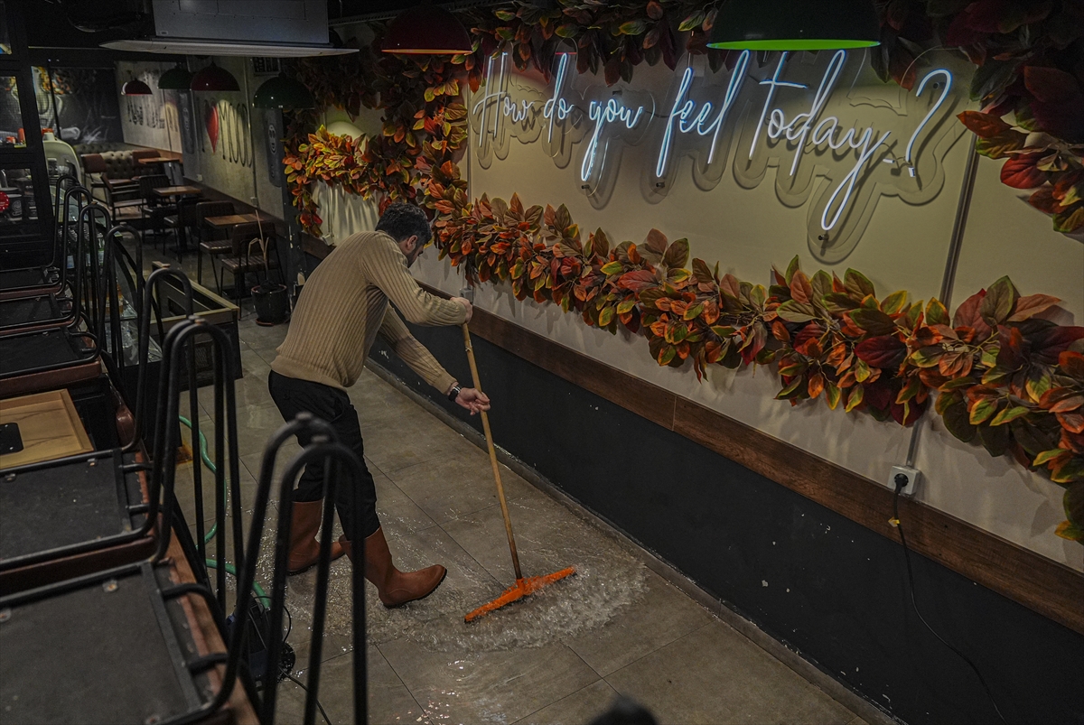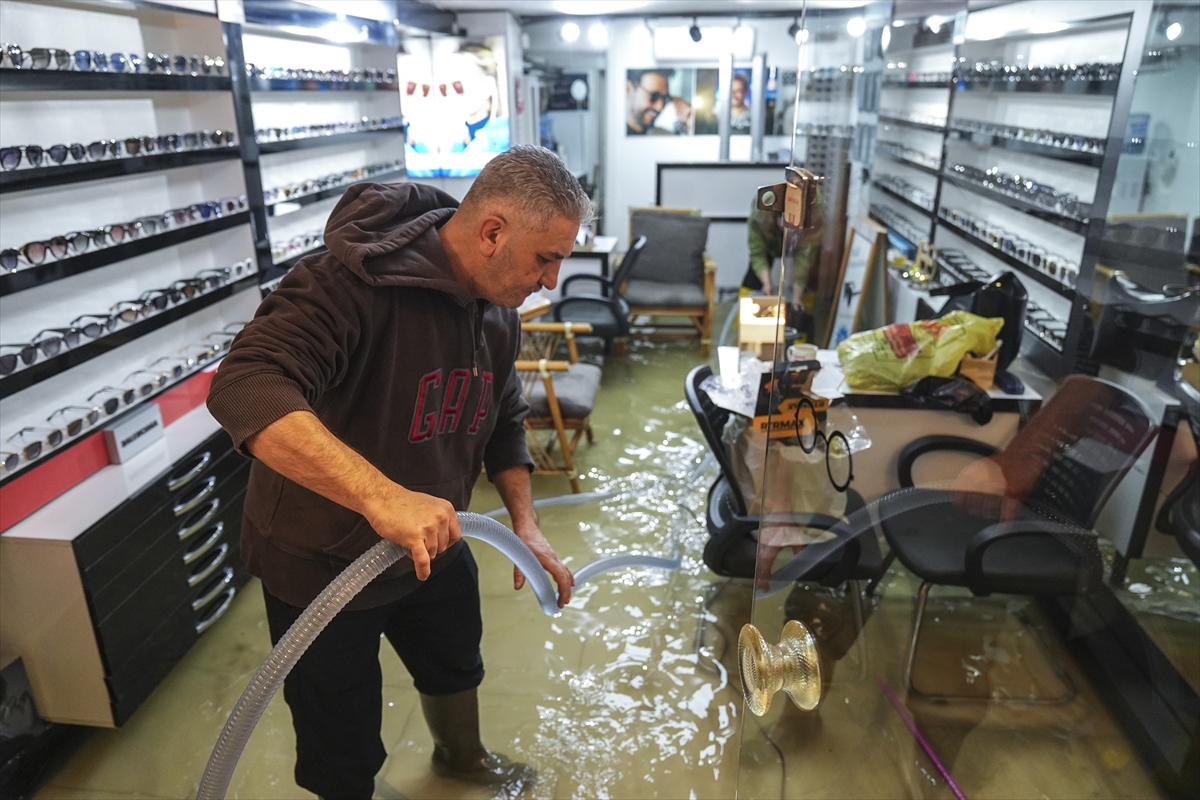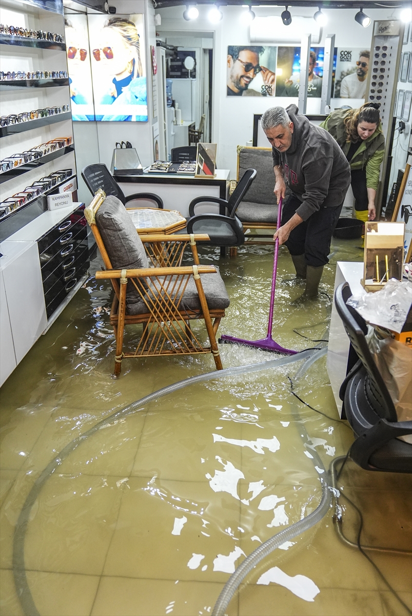 Hem vatandaşlar hem de belediye ekipleri, suların tahliyesi ve tıkanan rögarların açılması için çalışmalarını sürdürüyor. (DHA)