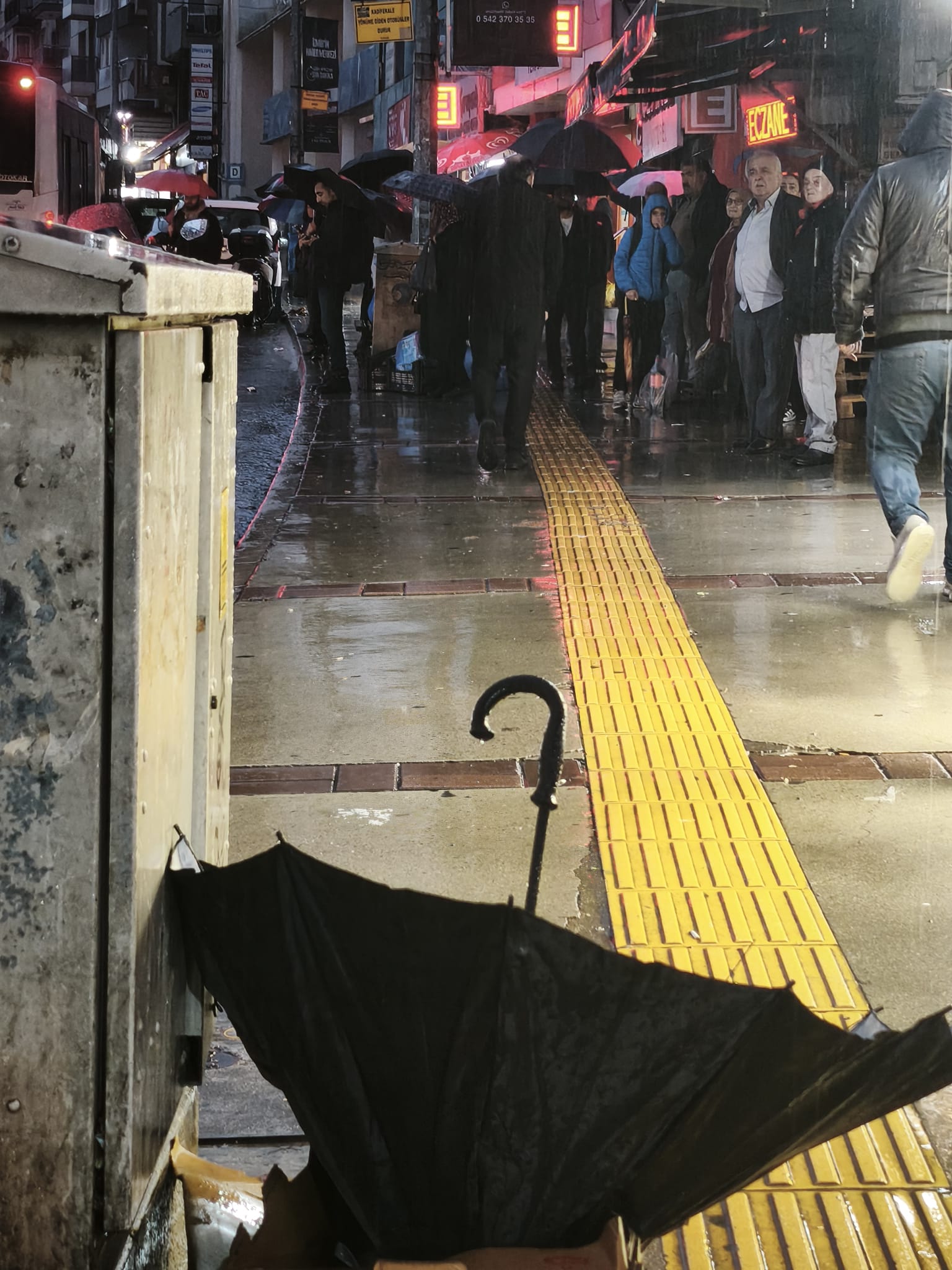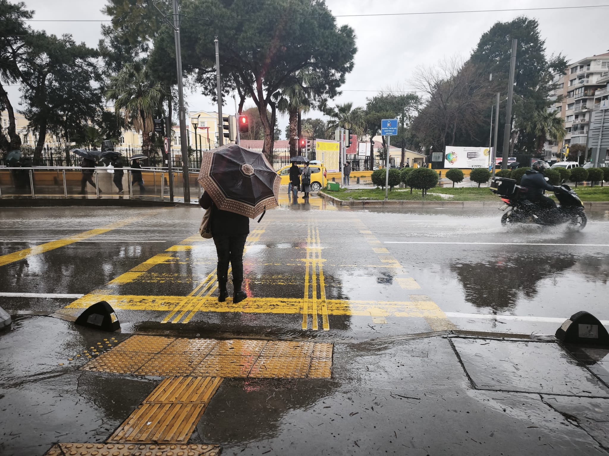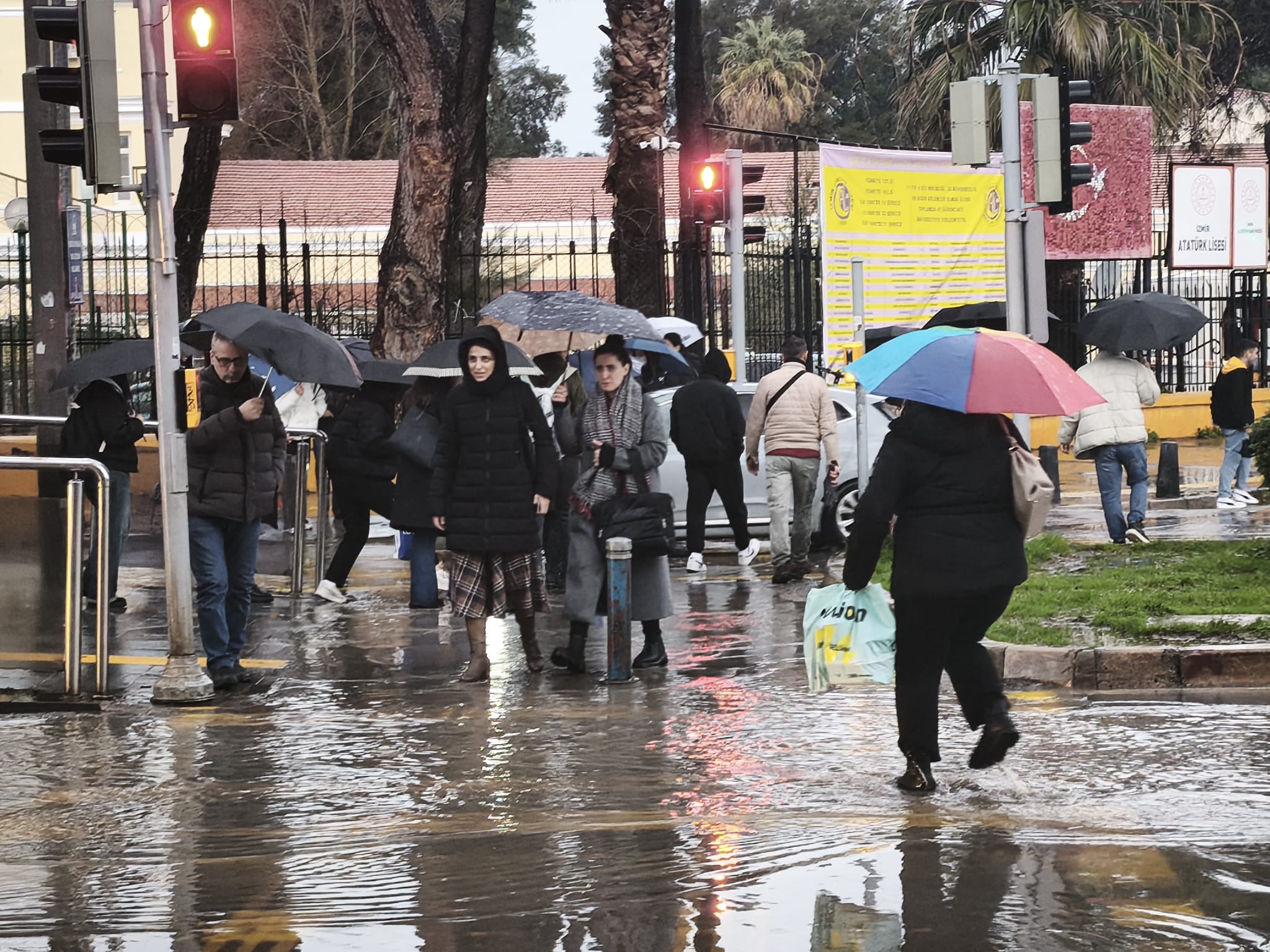 Kentte gün boyu devam eden sağanak sebebiyle günlük yaşam olumsuz etkilendi. Cadde ve sokaklarda su birikintileri oluştu, yağmur suları kaldırımlarla birleşti.