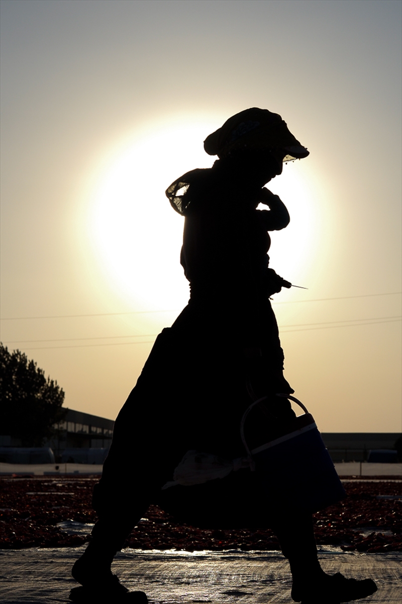 Gün doğumuyla kaldıkları çadırlardan çıkarak çalışmaya başlayan işçiler, toprak zemin üstüne serilmiş beyaz örtüyle kaplı alana giriş yapıyor. Kavurucu güneşin altında zamanla yarışan işçilerden her biri günlük yaklaşık 150 kasalık domates kesiyor.