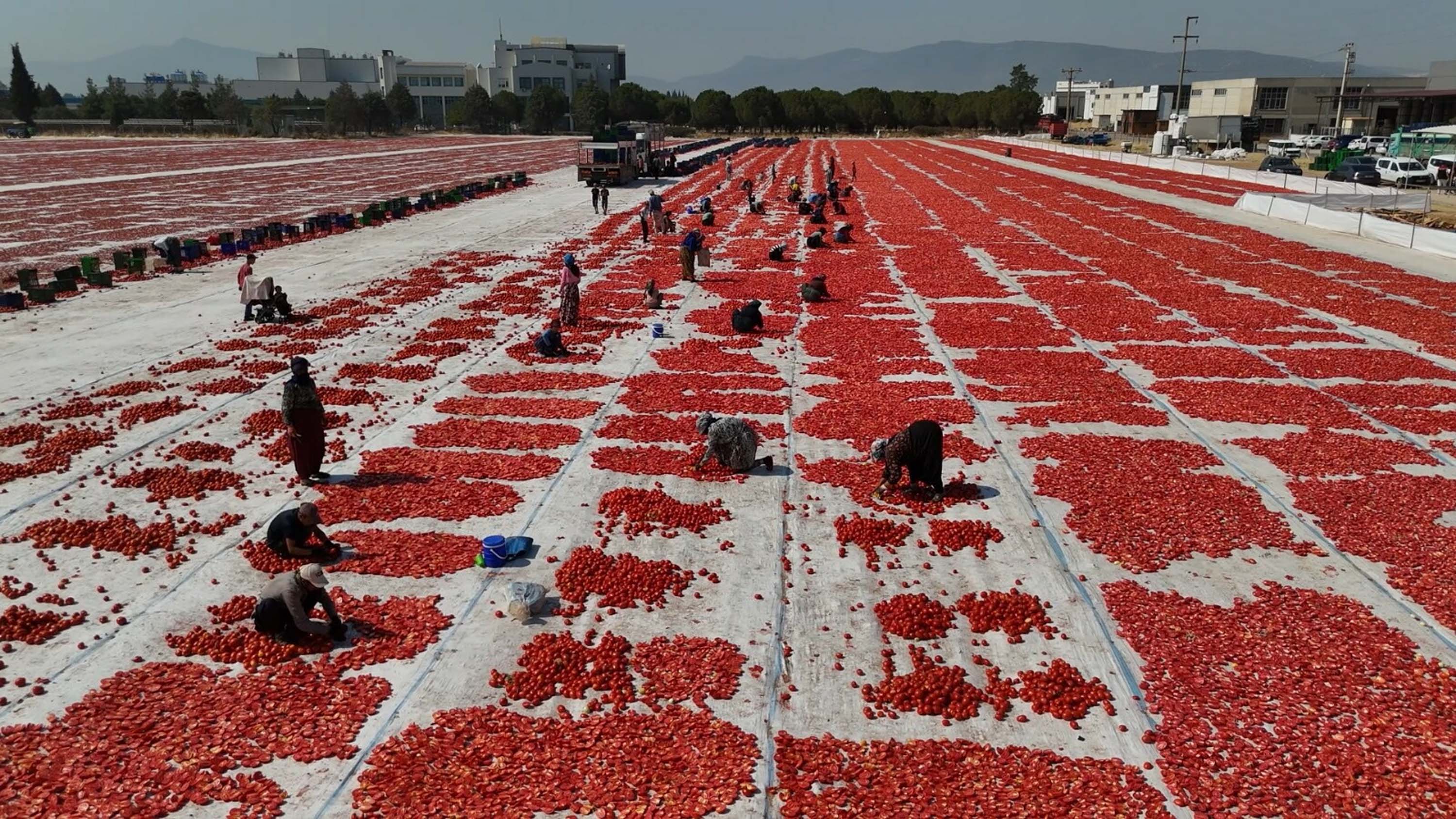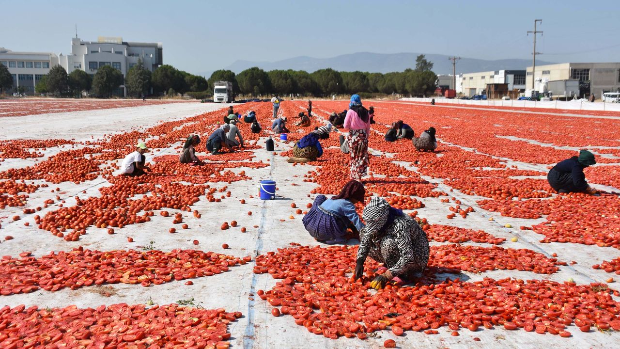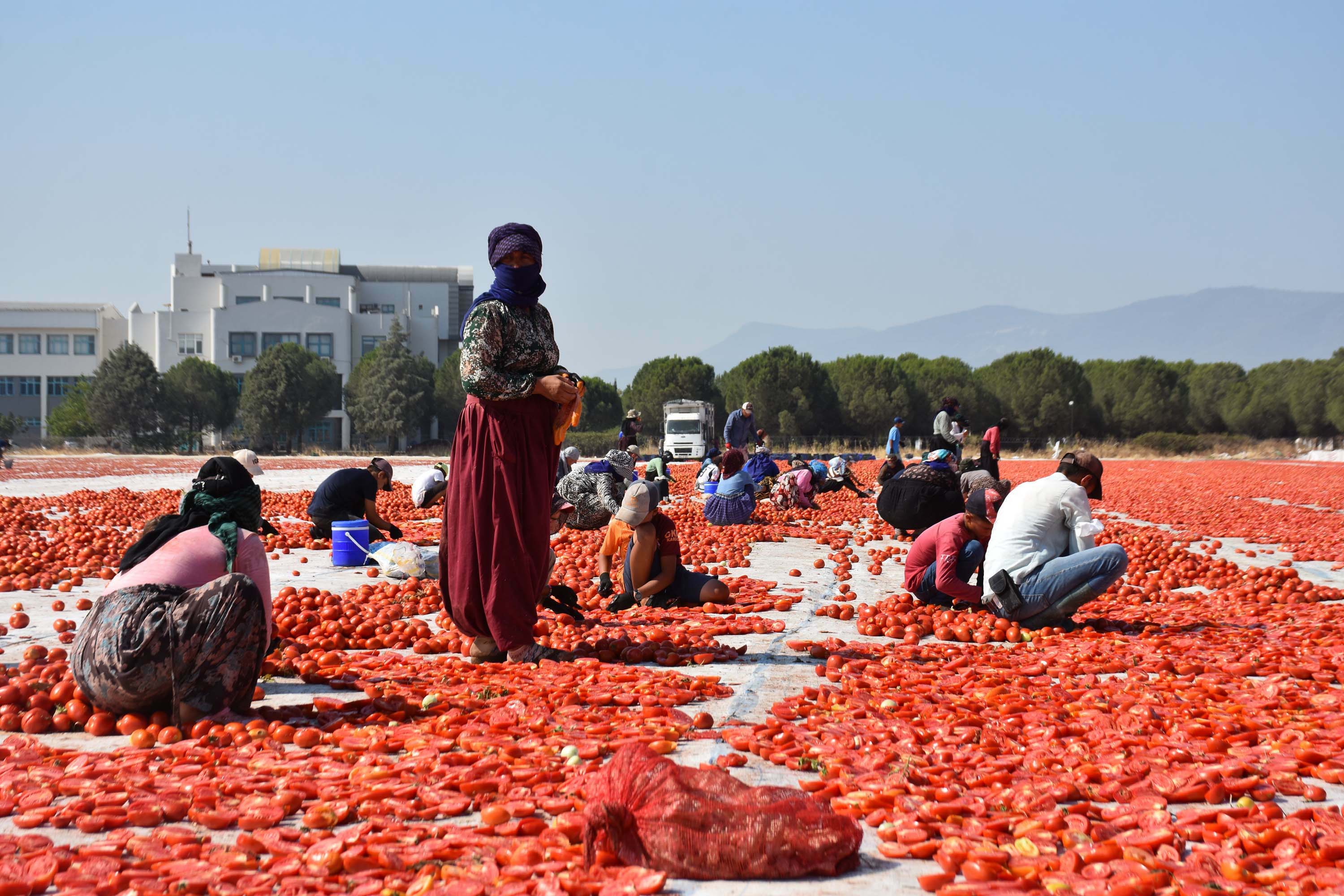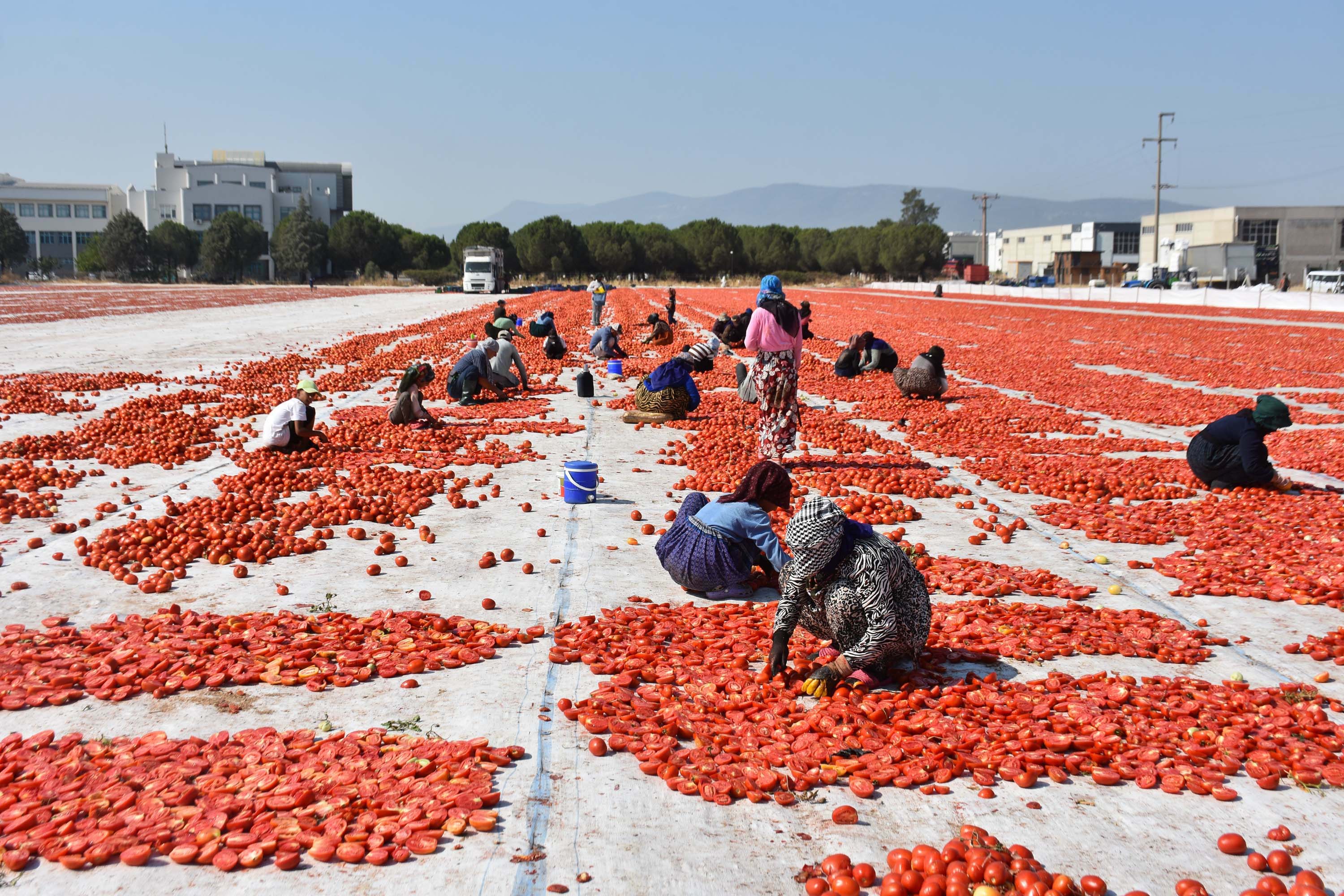 İzmir'in Torbalı ilçesinde kuru domates mesaisi devam ediyor. Temmuzda başlayan, ağustos ayının ortalarına kadar sürecek olan kuru domates mesaisi boyunca her sabah günün ilk ışıklarında toplanan domatesler kamyonlarla sergi alanlarına getirilip kurutulmaya bırakılıyor. Kurutulduktan sonra toplanıp soğuk hava depolarına taşınan domatesler, talebe göre ambalajlanıp yurt içi ve yurt dışı pazarlara sunuluyor. Torbalı kuru domatesinin coğrafi işarete sahip olması da ürünün pazarlanmasında avantaj sağlıyor. İzmir'in, Türkiye'deki en önemli kuru domates üretim merkezlerinden biri olduğunu dile getiren İl Tarım ve Orman Müdürü Mustafa Şahin, "Bölgede hem sanayi tipi hem kurutmalık hem de salçalık domates üretimi yapılıyor. İklimin artıları hem üretime hem de kurutmaya yansıyor" ifadelerini kullandı.