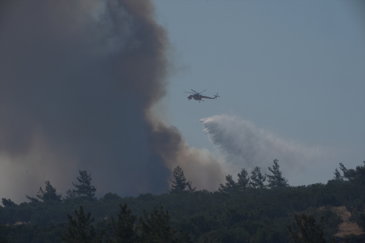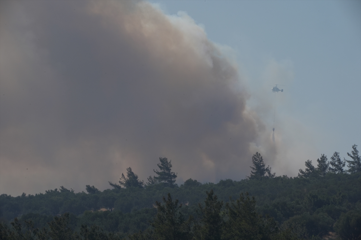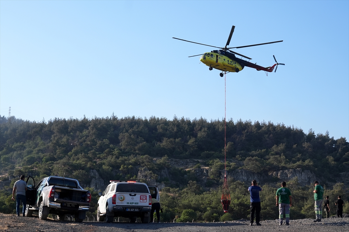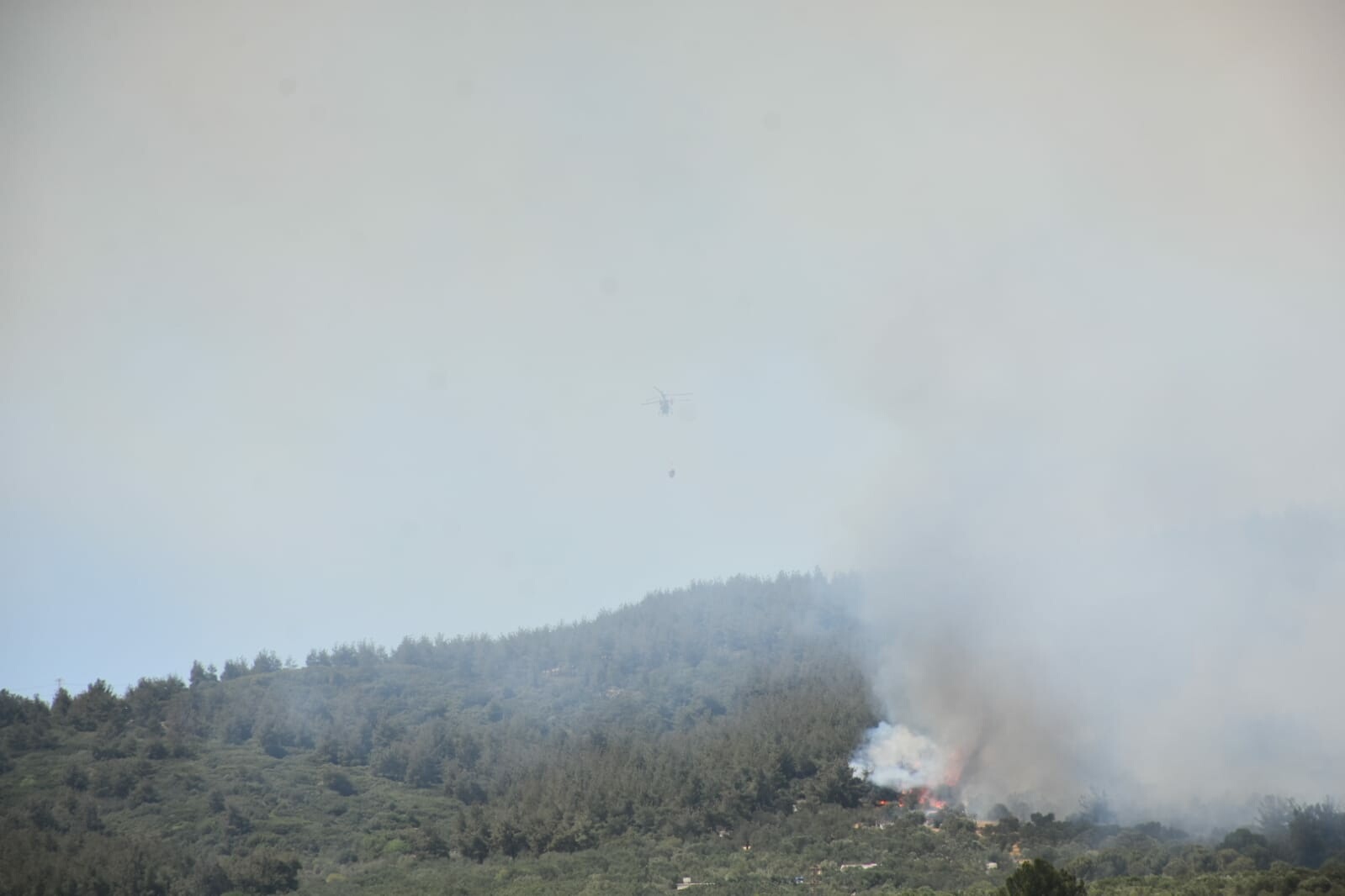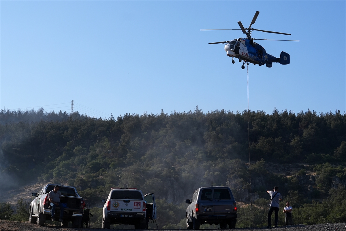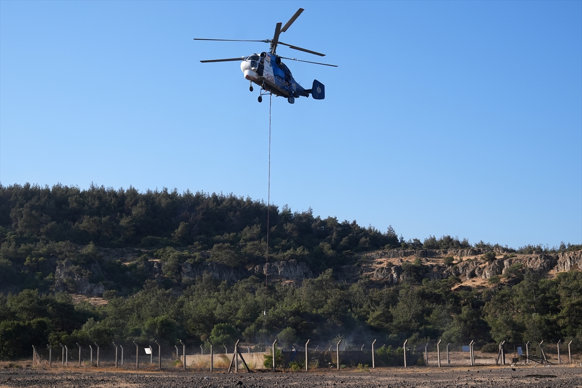 İzmir'in Aliağa ilçesinde ormanlık alanda başlayan yangına, orman bölge müdürlüğü ve itfaiye ekiplerinin havadan ve karadan müdahalesi devam ediyor.