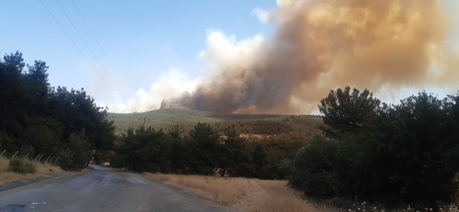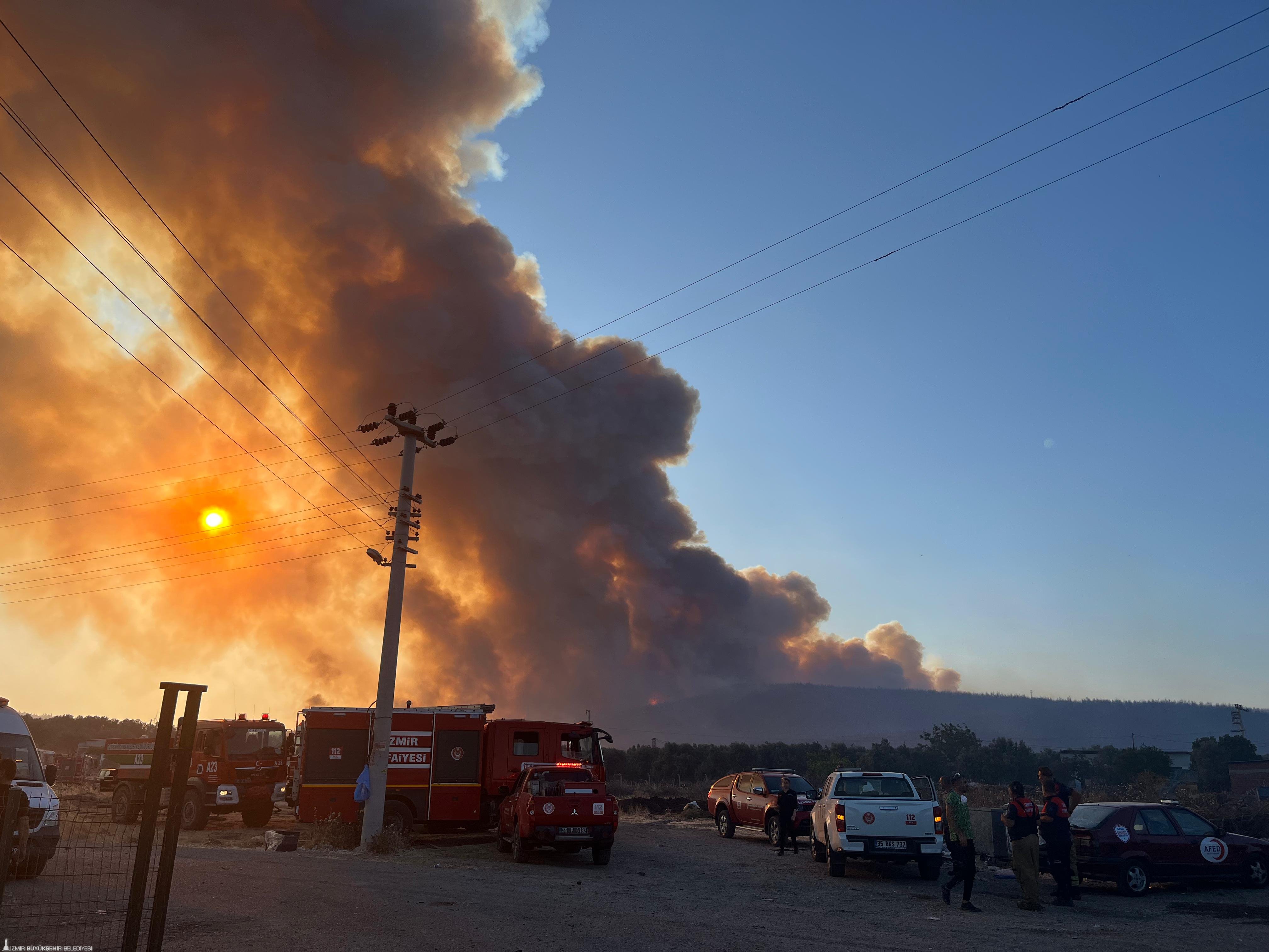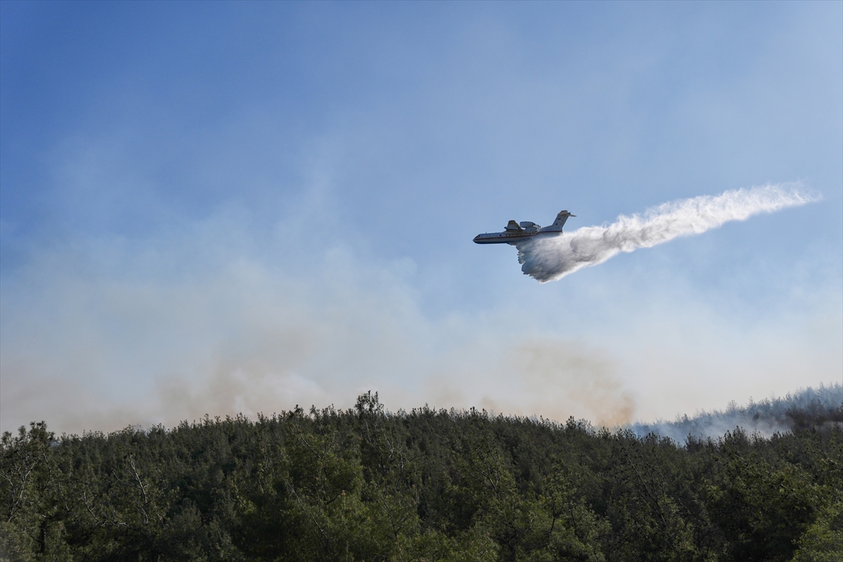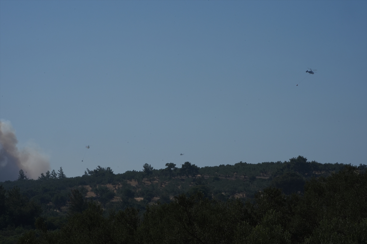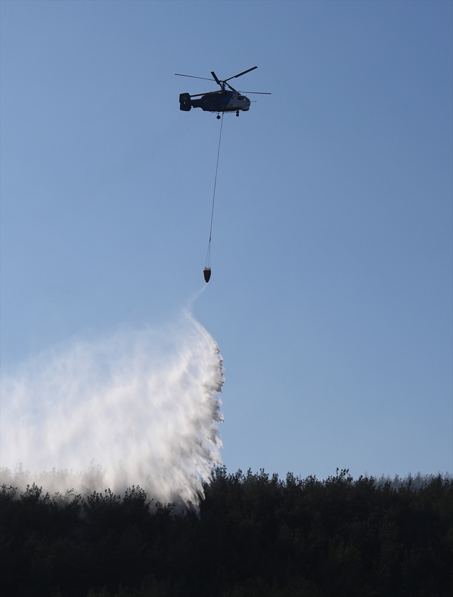 İzmir'in Aliağa ilçesinde ormanlık alanda başlayan yangına, orman bölge müdürlüğü ve itfaiye ekiplerinin havadan ve karadan müdahalesi devam ediyor.