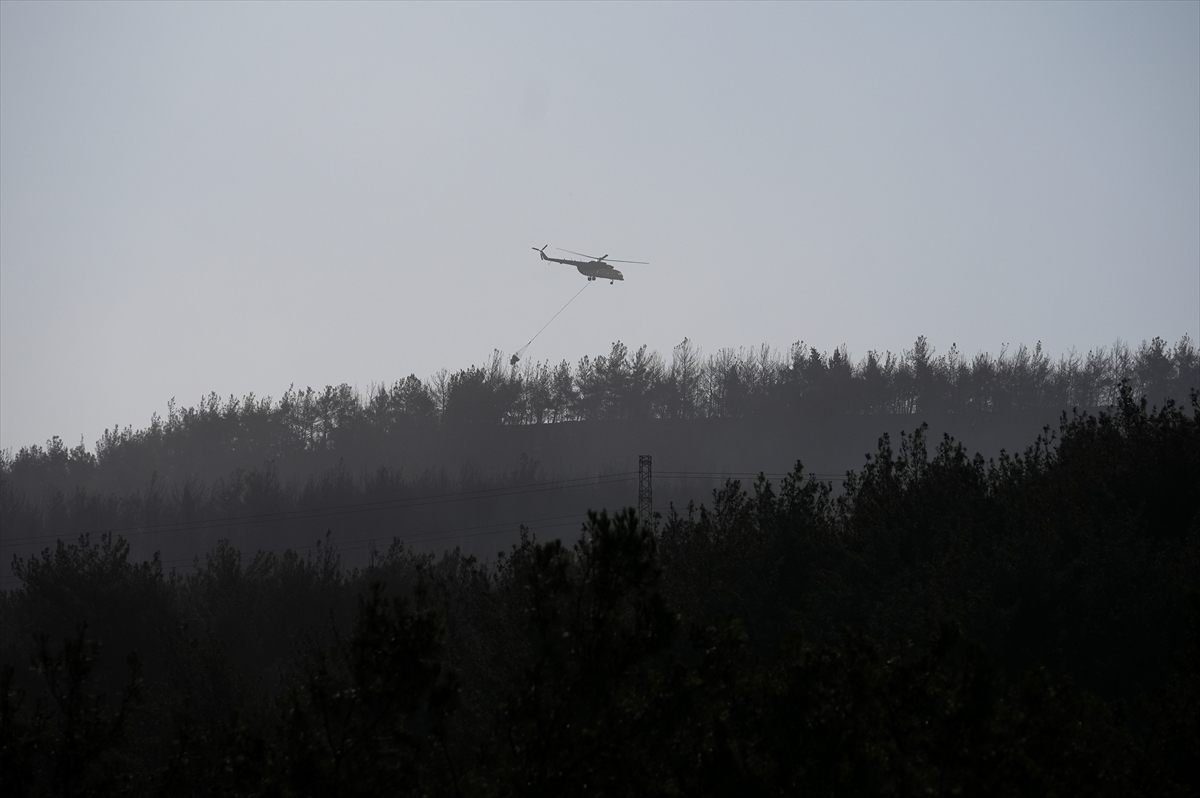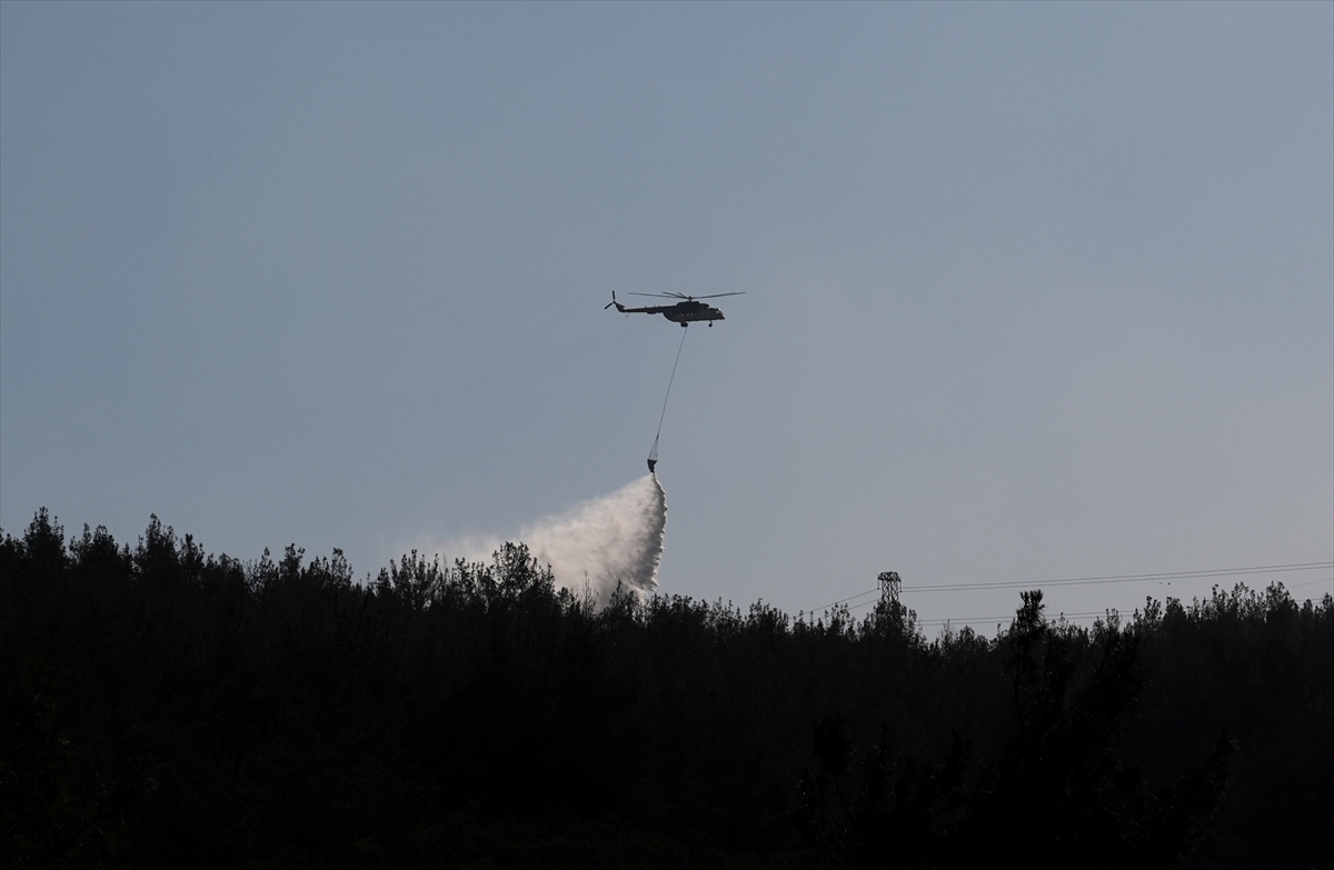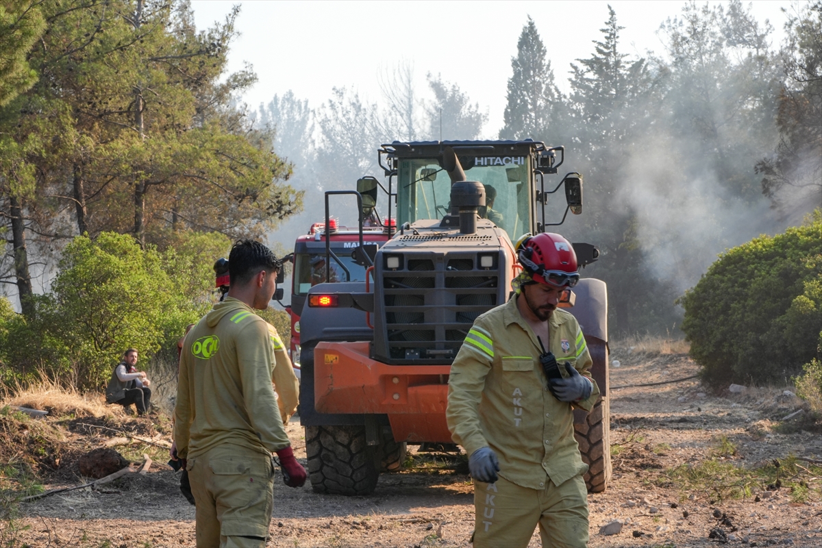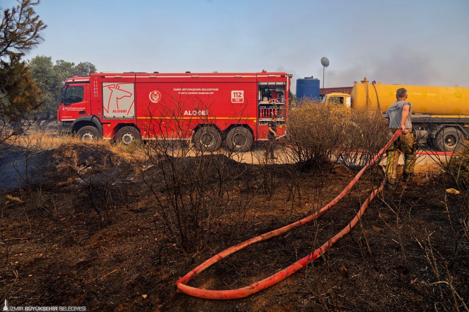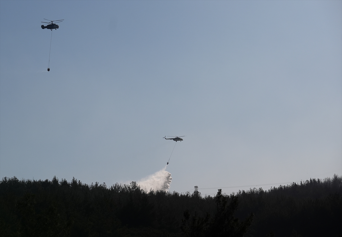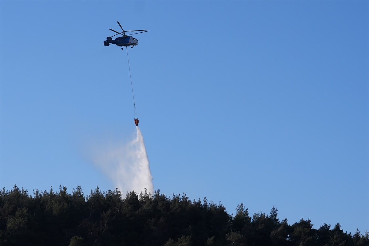 İzmir'in Aliağa ilçesinde ormanlık alanda başlayan yangına, orman bölge müdürlüğü ve itfaiye ekiplerinin havadan ve karadan müdahalesi devam ediyor.