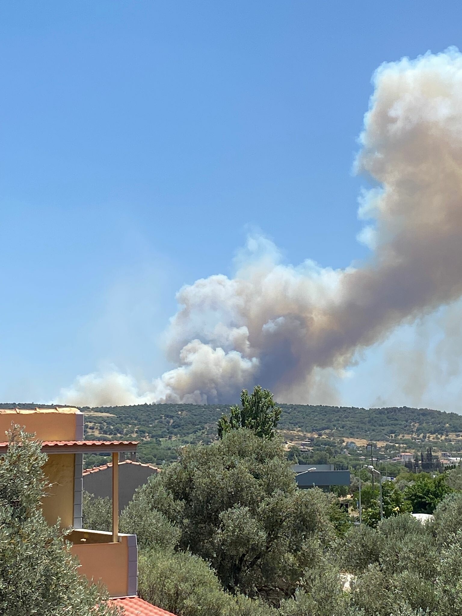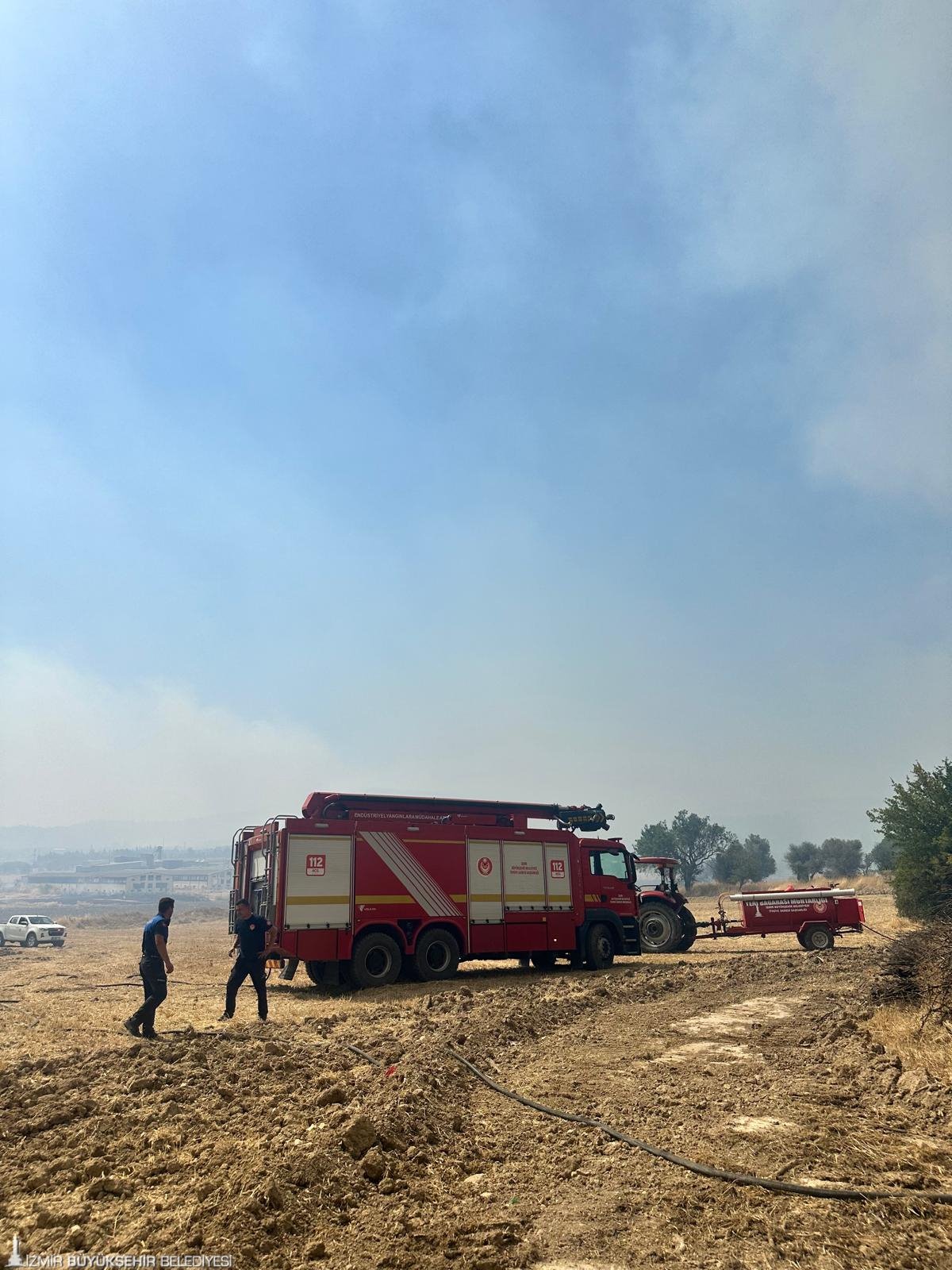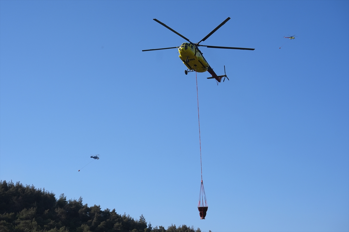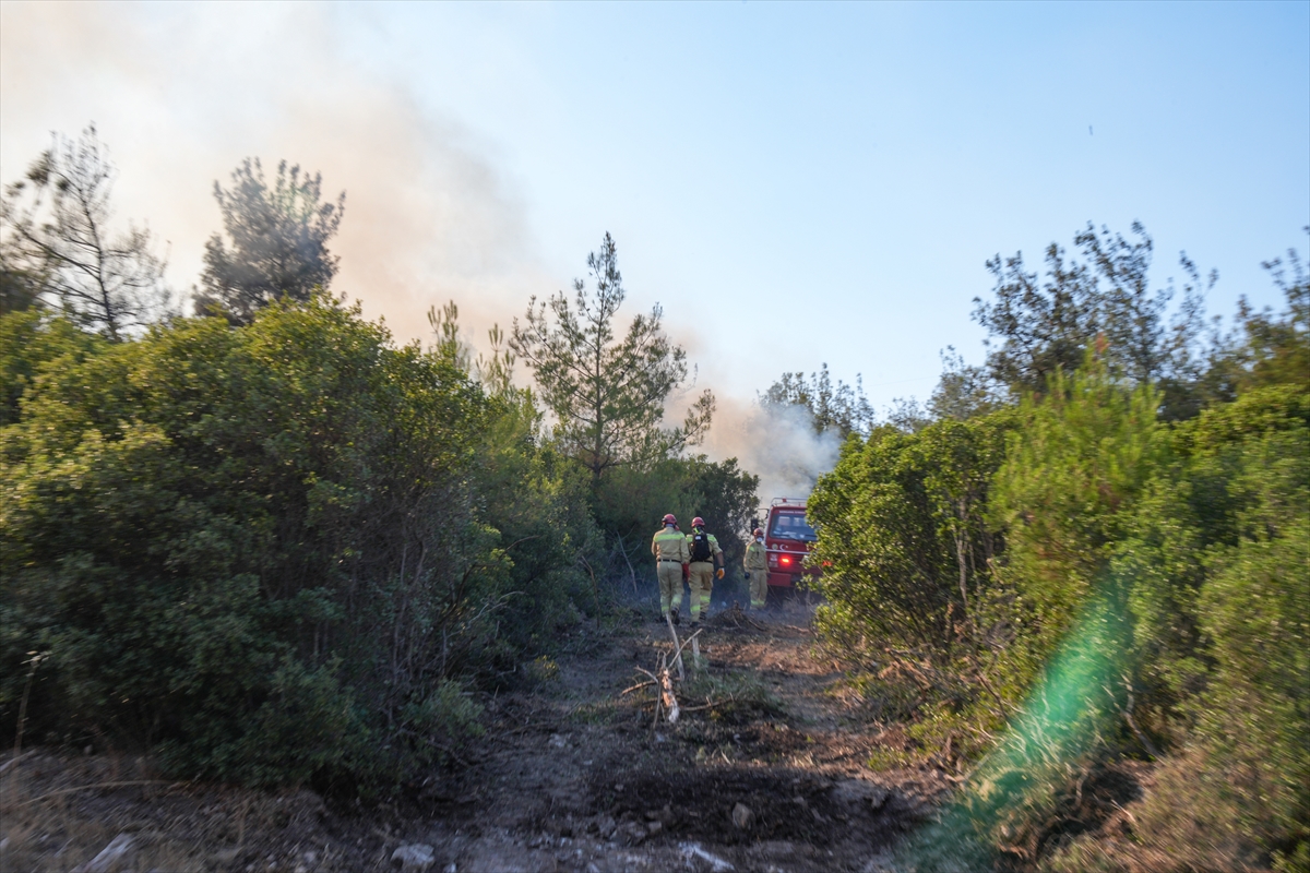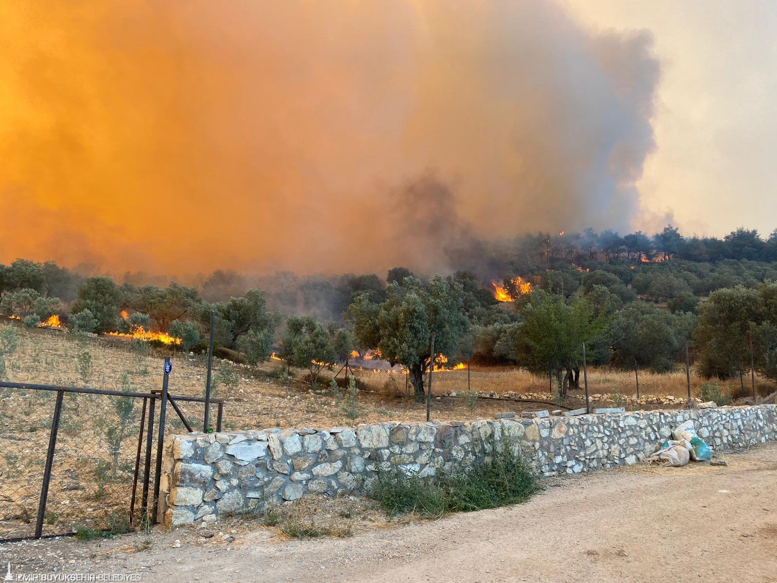 İzmir'in Aliağa ilçesinde ormanlık alanda başlayan yangına, orman bölge müdürlüğü ve itfaiye ekiplerinin havadan ve karadan müdahalesi devam ediyor.