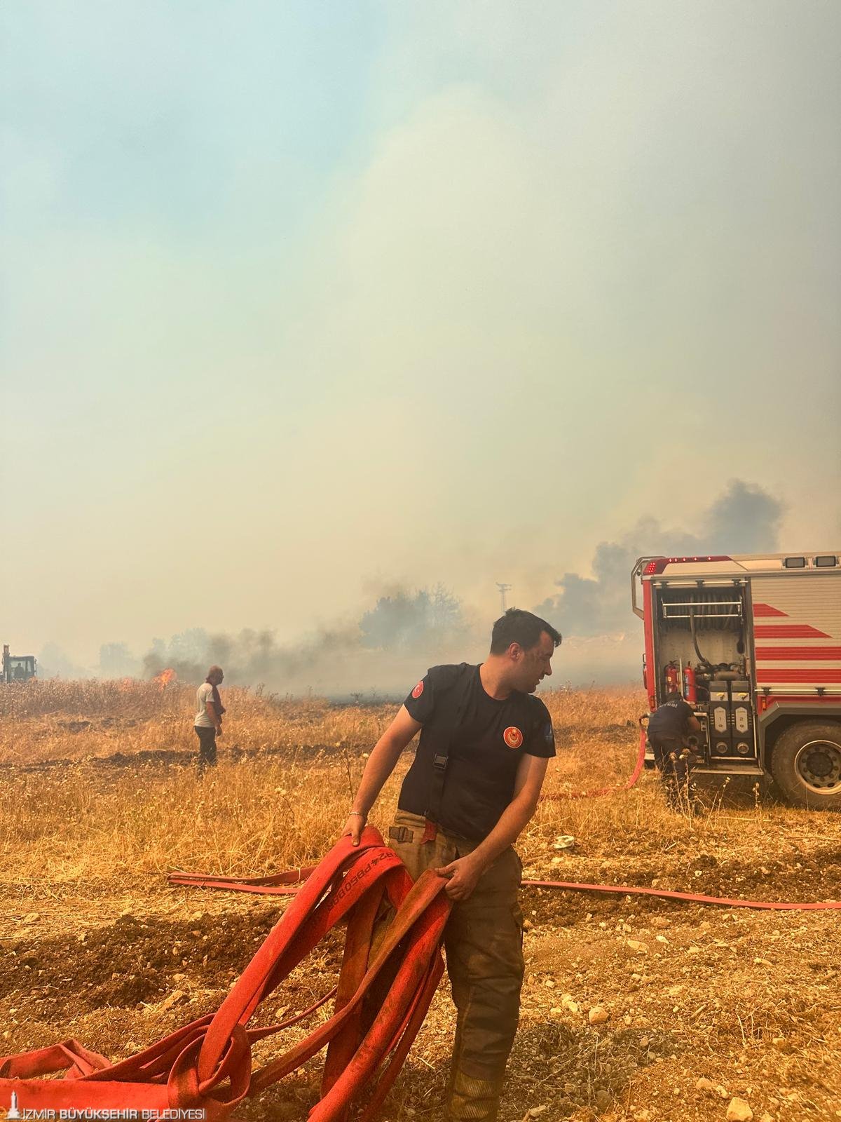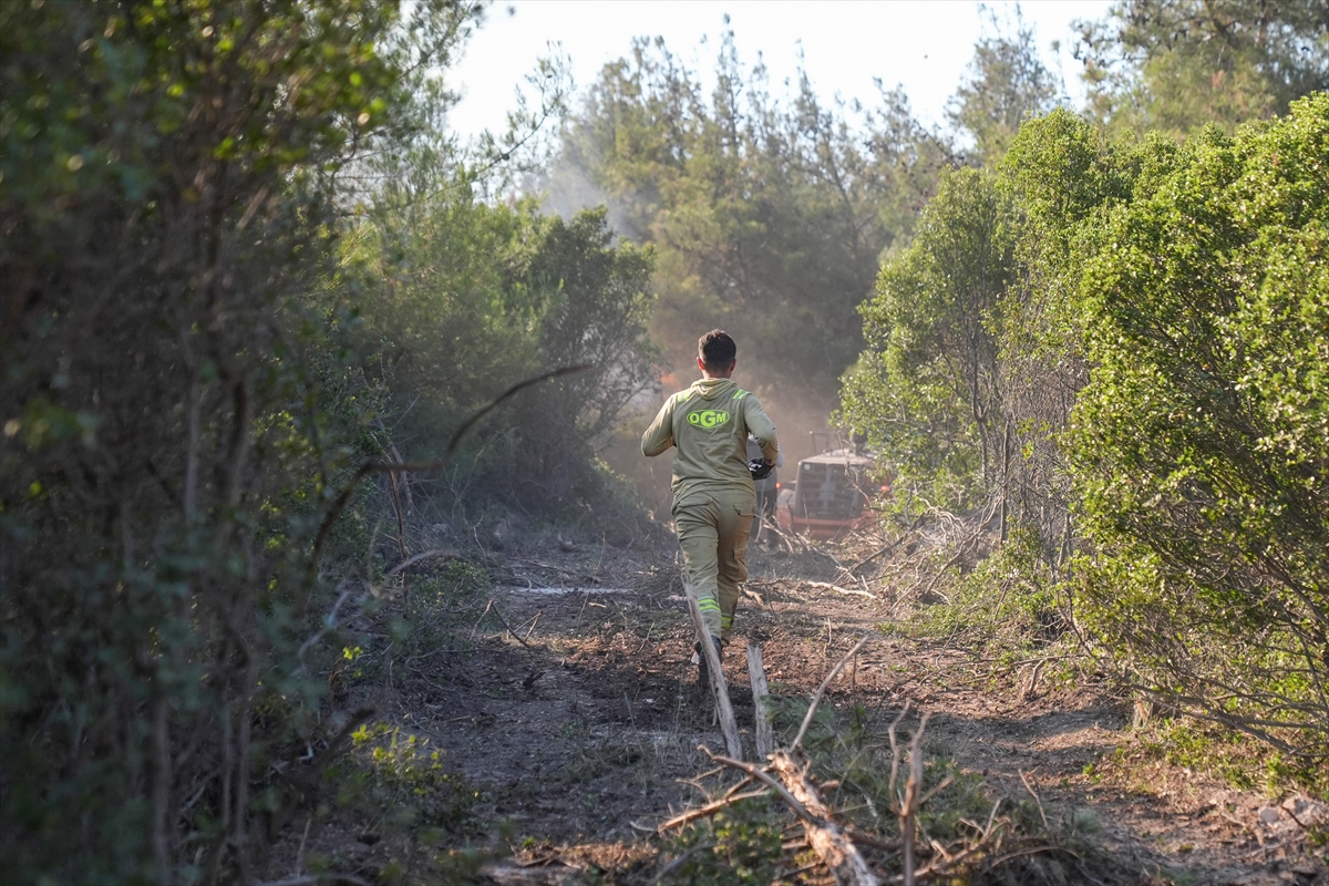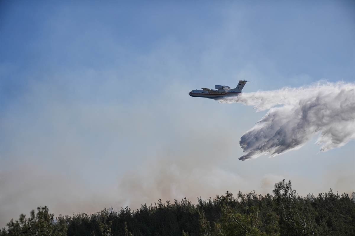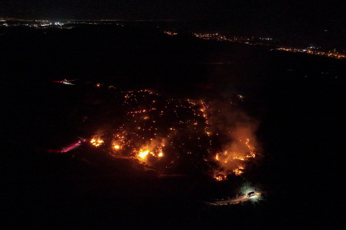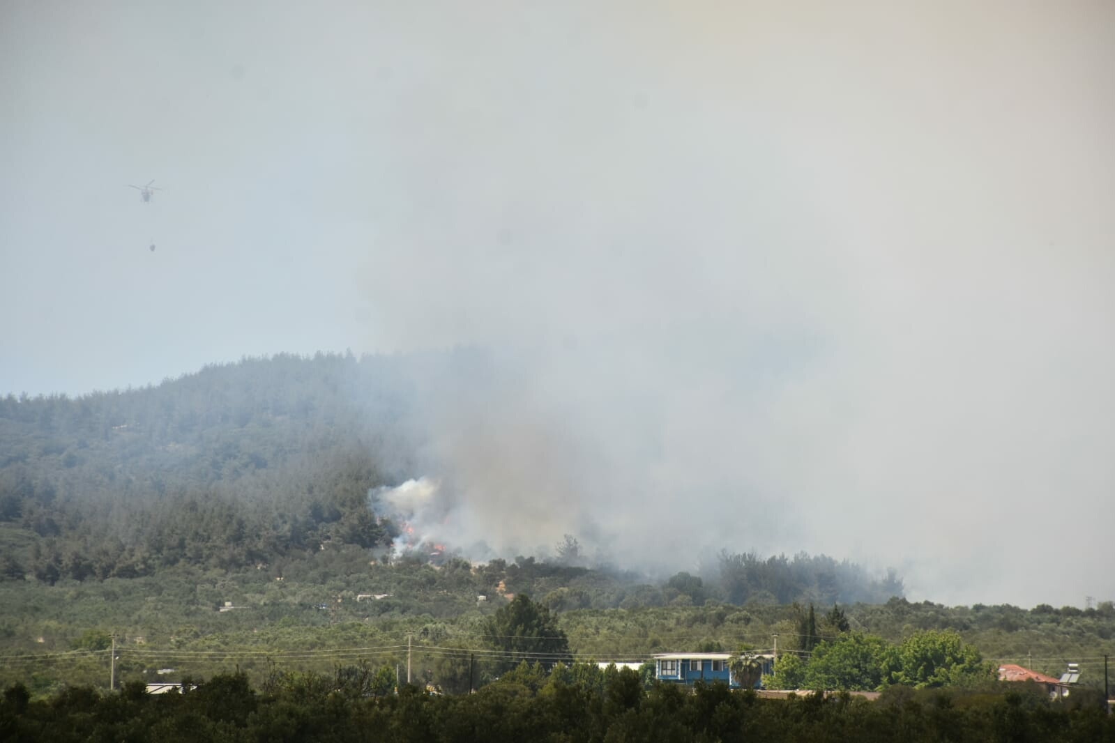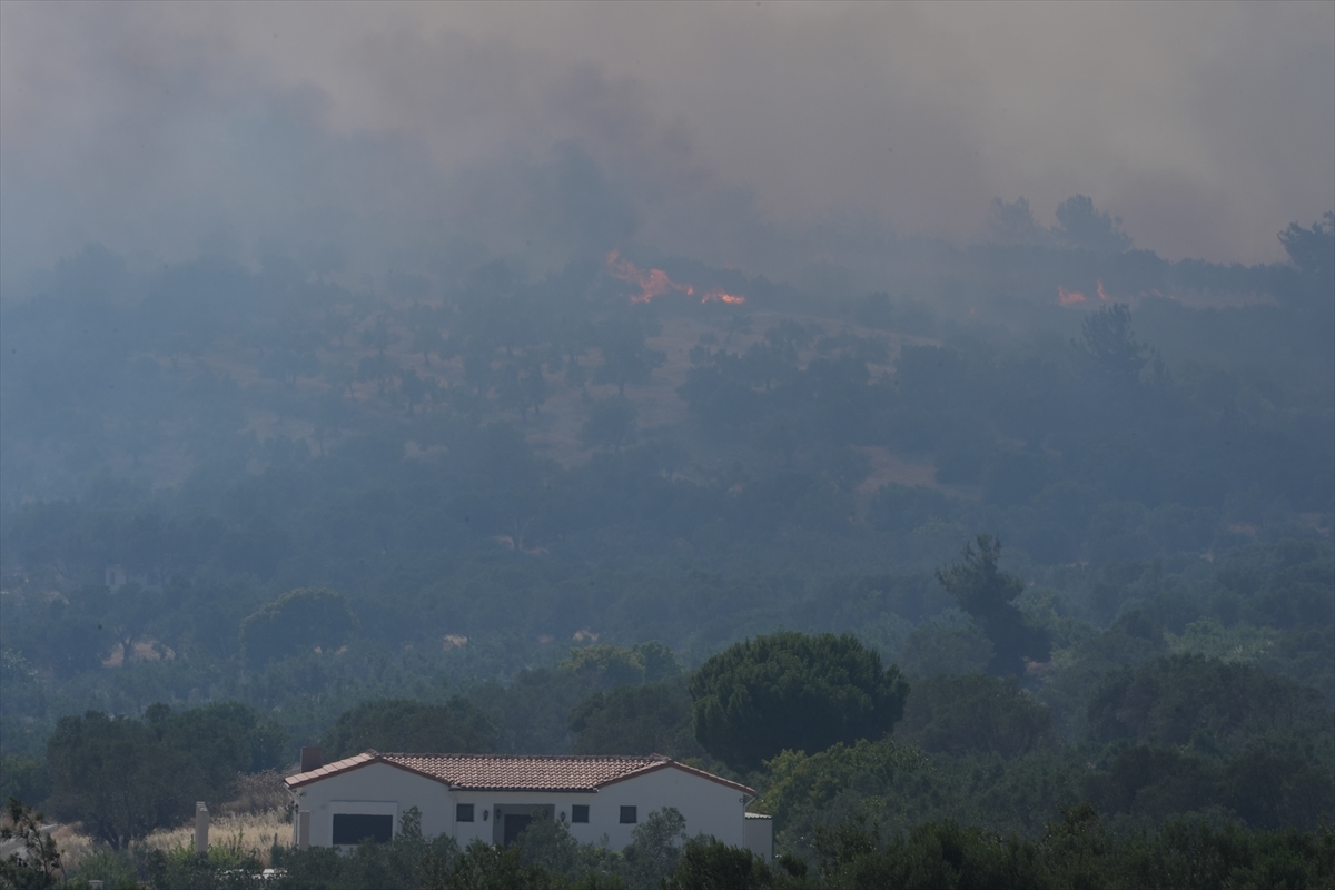İzmir'in Aliağa ilçesinde ormanlık alanda başlayan yangına, orman bölge müdürlüğü ve itfaiye ekiplerinin havadan ve karadan müdahalesi devam ediyor.